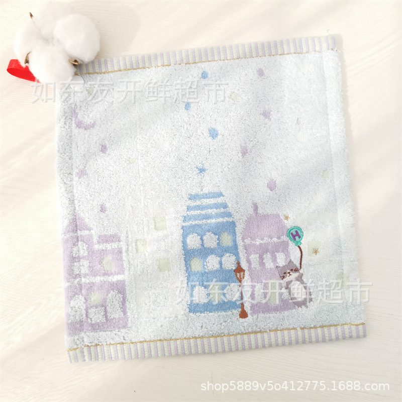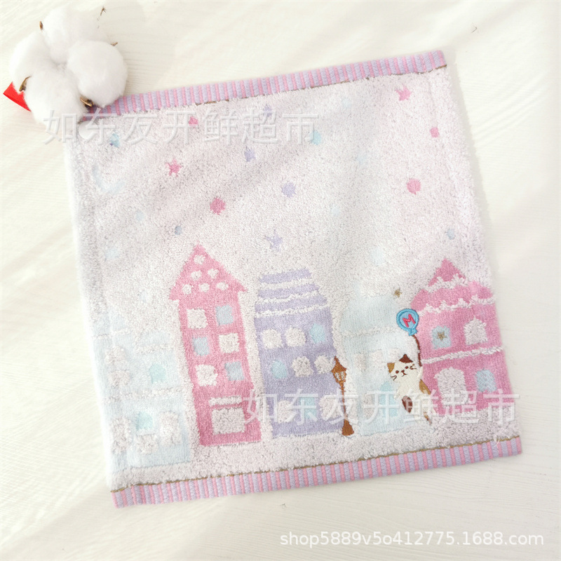 일본 대외 무역 수건 도매 면화 자수 만화 고양이 끈 손 수건 작은 사각형 손수건스토어 가기