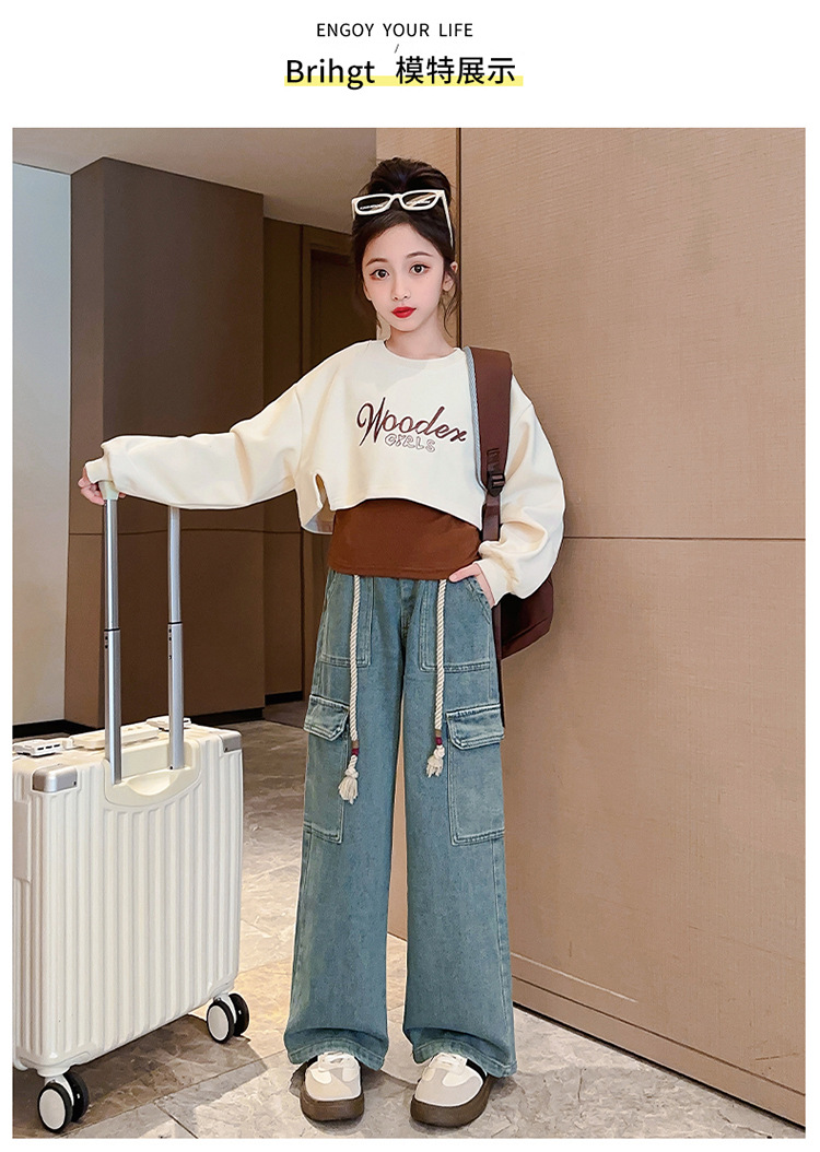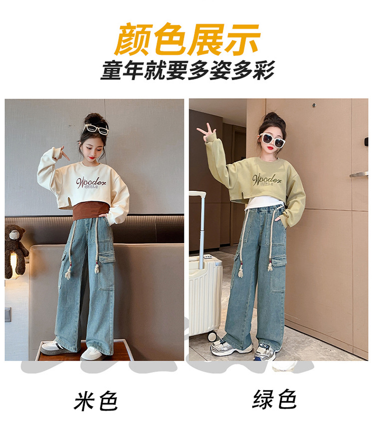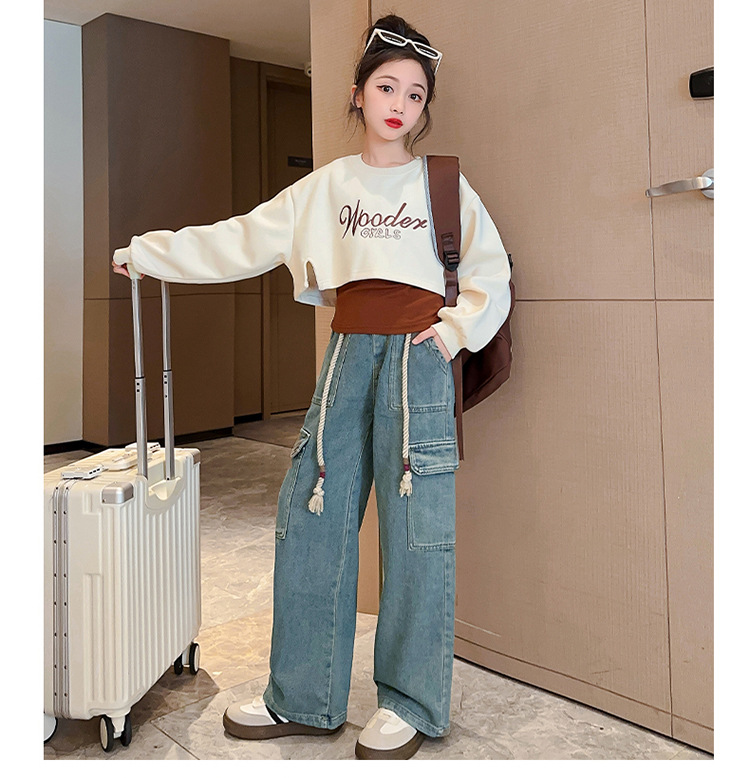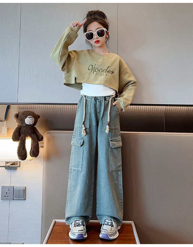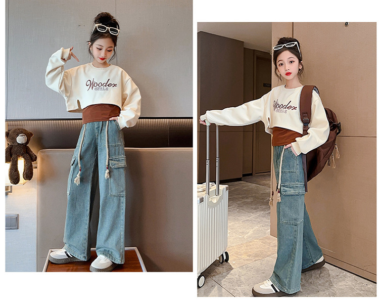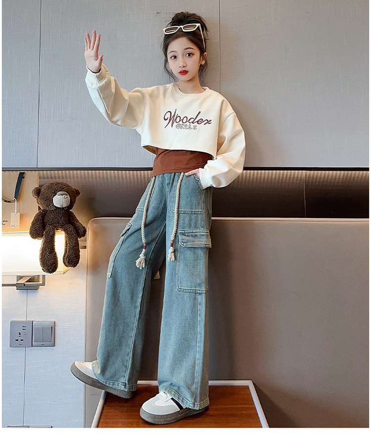 2024 여자 가을 3 피스 세트 새로운 한국어 스타일 여자 유행 조끼 운동복 작업복 청바지 인터넷 연예인 정장스토어 가기