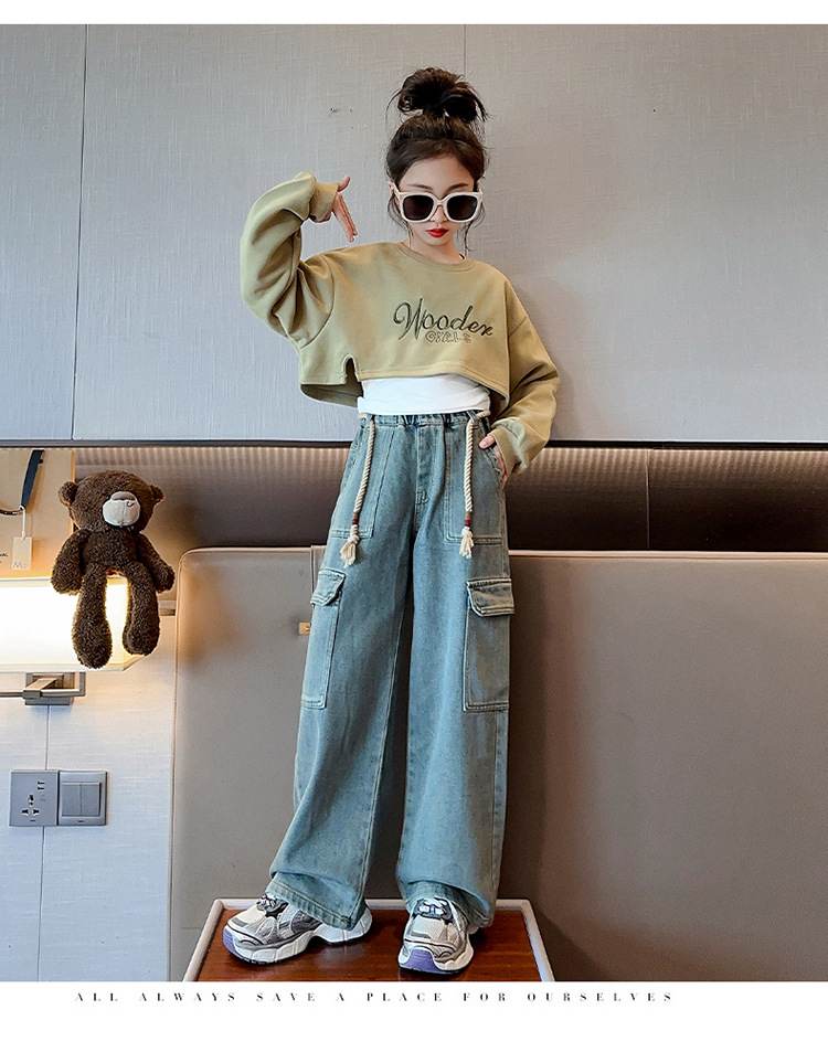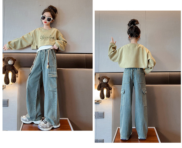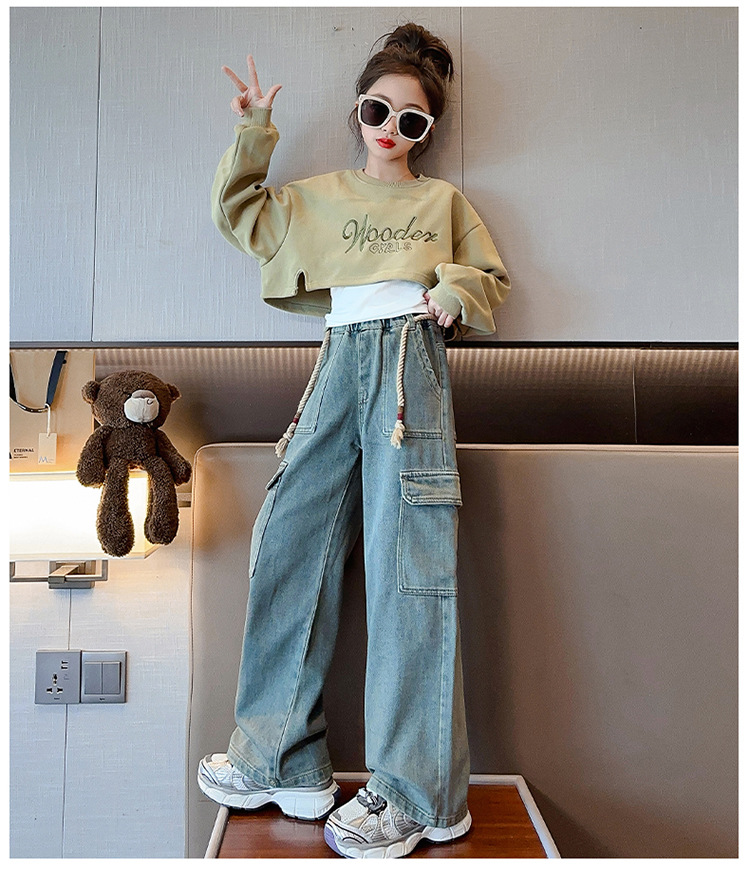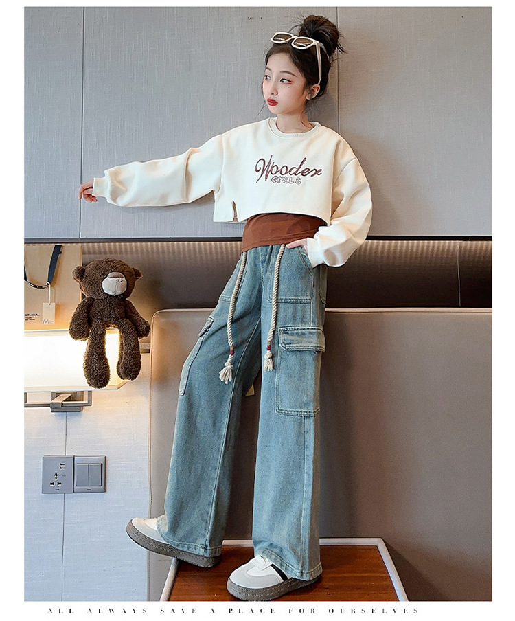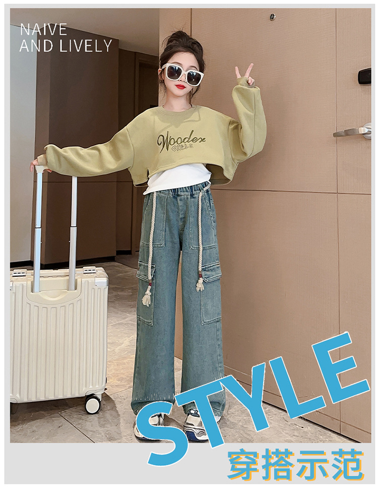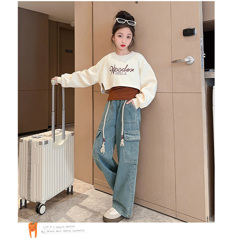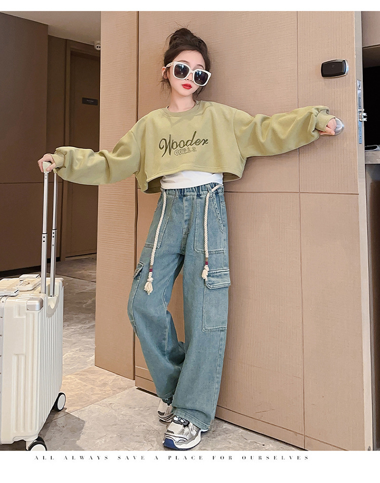 2024 여자 가을 3 피스 세트 새로운 한국어 스타일 여자 유행 조끼 운동복 작업복 청바지 인터넷 연예인 정장스토어 가기