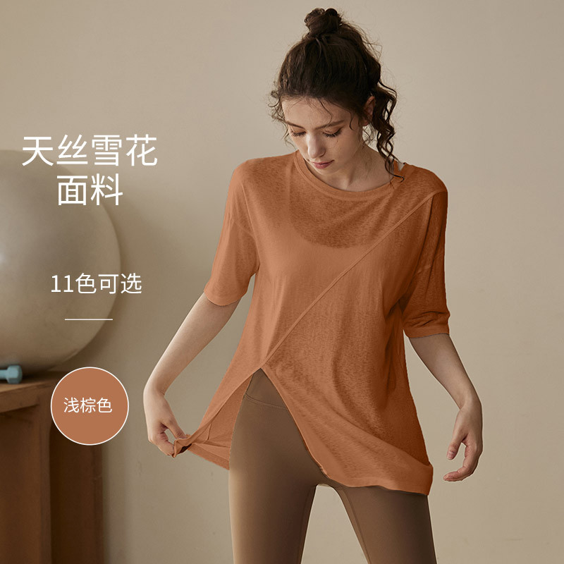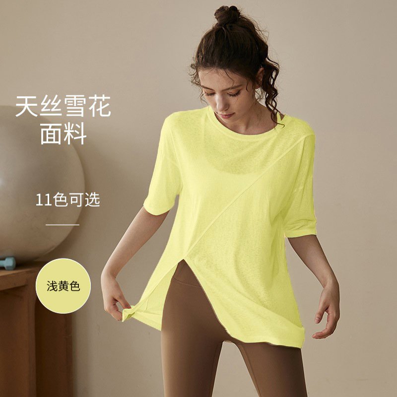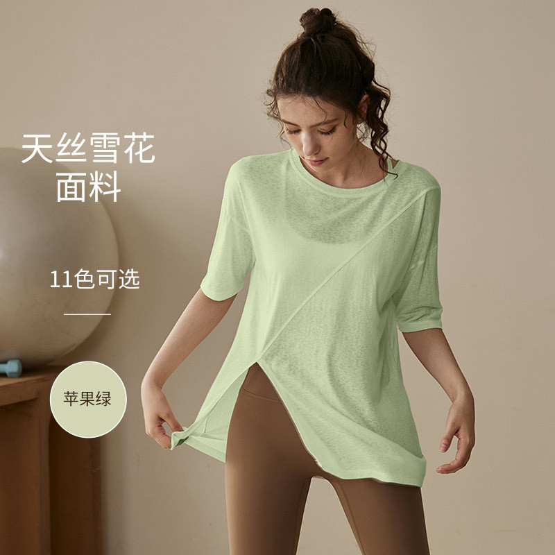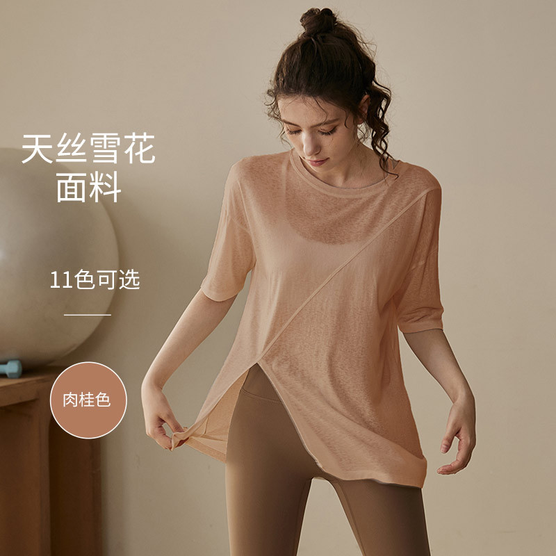요가 옷 여성 여름 반팔 필라테스 전문 훈련 피트니스 탑 블라우스 느슨한 달리기 프로 스포츠 티셔츠스토어 가기