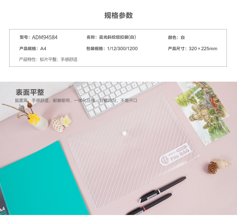 아침 빛 파일 가방 A4 능직 버튼 파일 가방 보관 가방 흰색 사무실 투명 정보 가방 학생 시험지