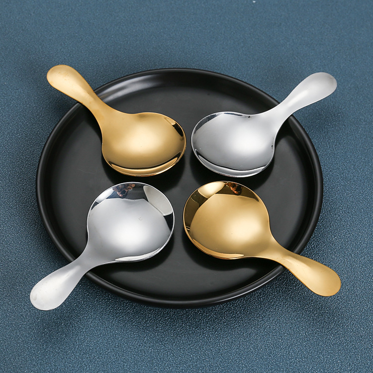 높은 모양의 스테인레스 스틸 짧은 손잡이 수프 숟가락 작은 둥근 숟가락 우유 가루 숟가락 어린이 식기 아이스크림 조미료 디저트 작은 숟가락