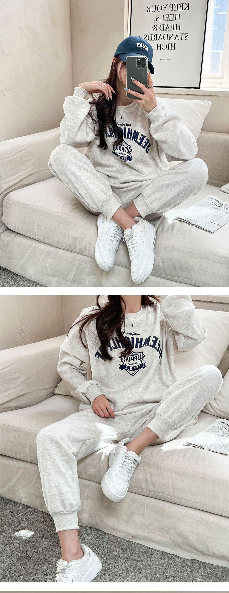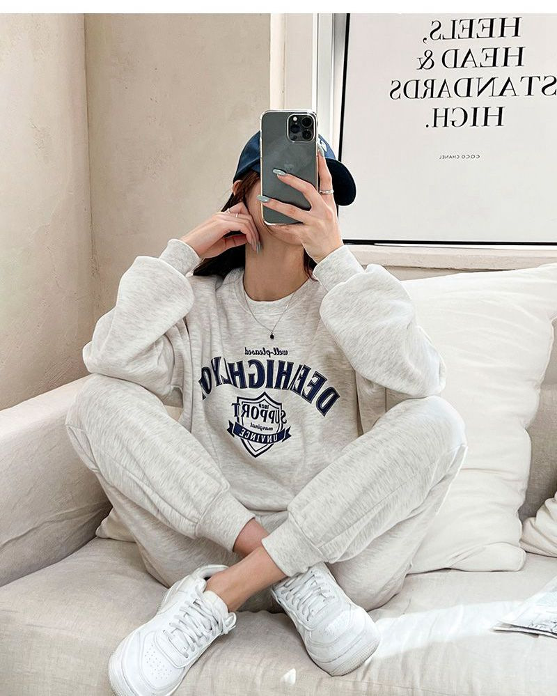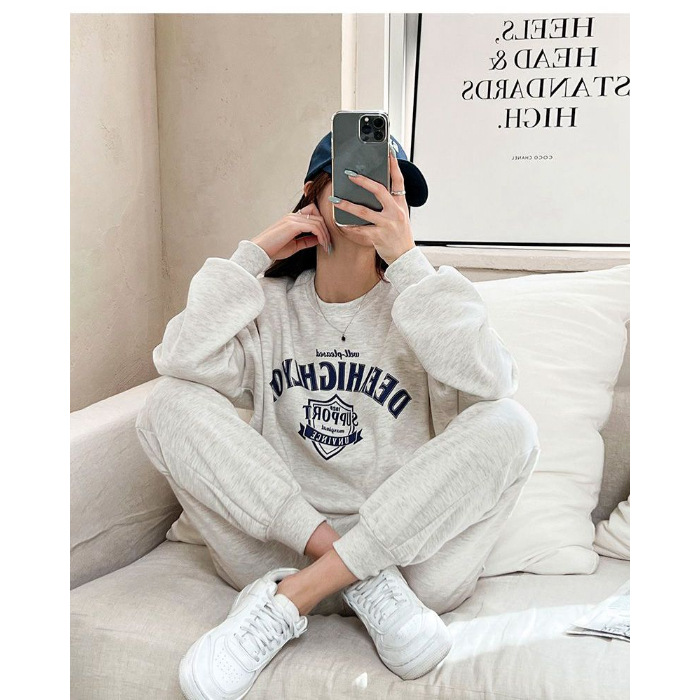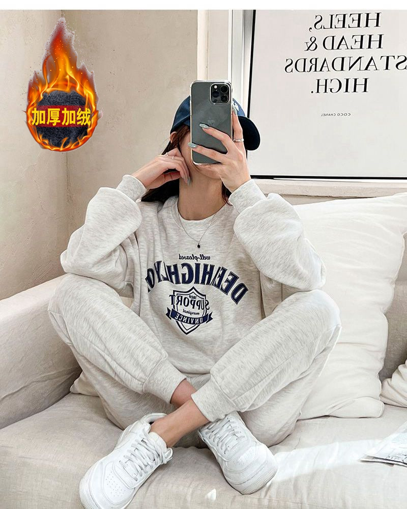2023 가을 겨울 두꺼운 한국 스포츠 레저 세트 여성 패션 서양식 슬리밍 스웨트 와이드 레그 바지 투피스 세트스토어 가기