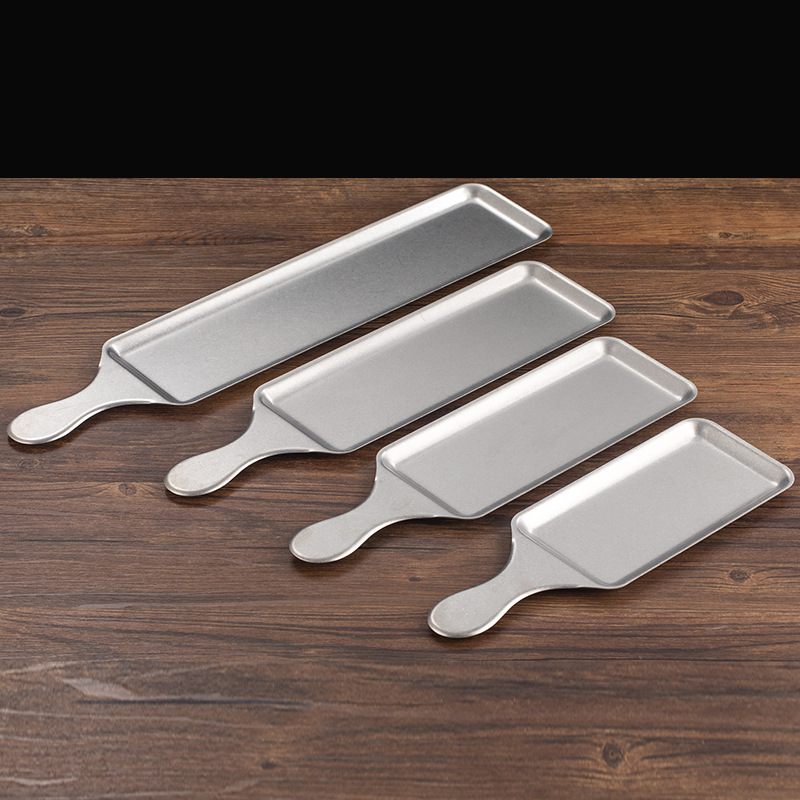 복고풍 스테인레스 스틸 직사각형 플레이트 핸들 눈송이 패턴 플레이트 서양 스테이크 스시 플레이트 커피 숍 트레이