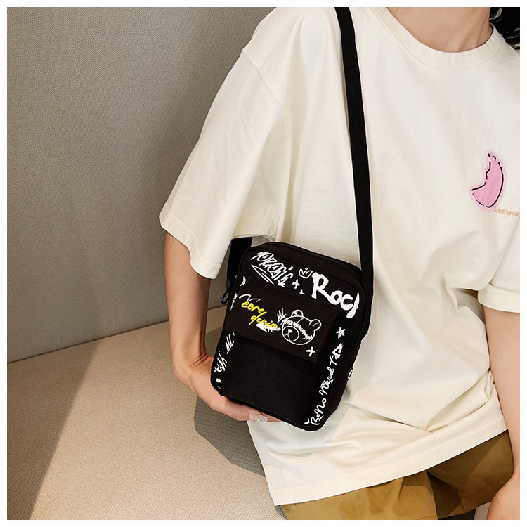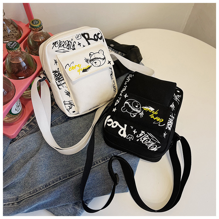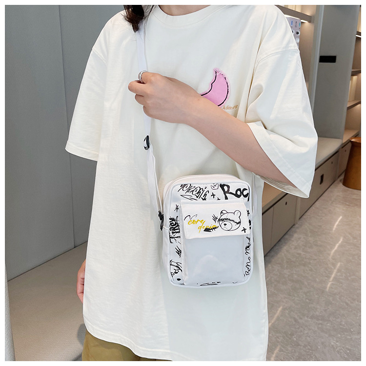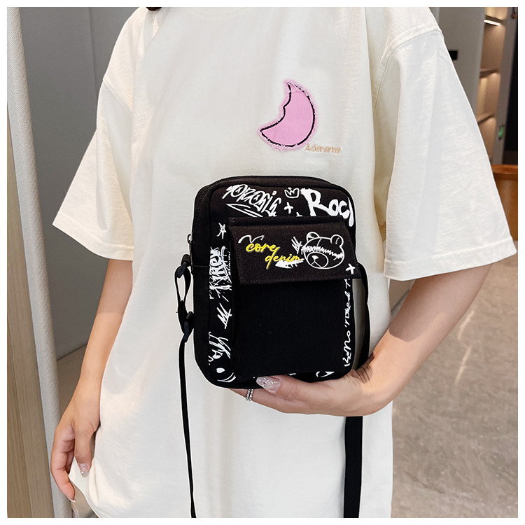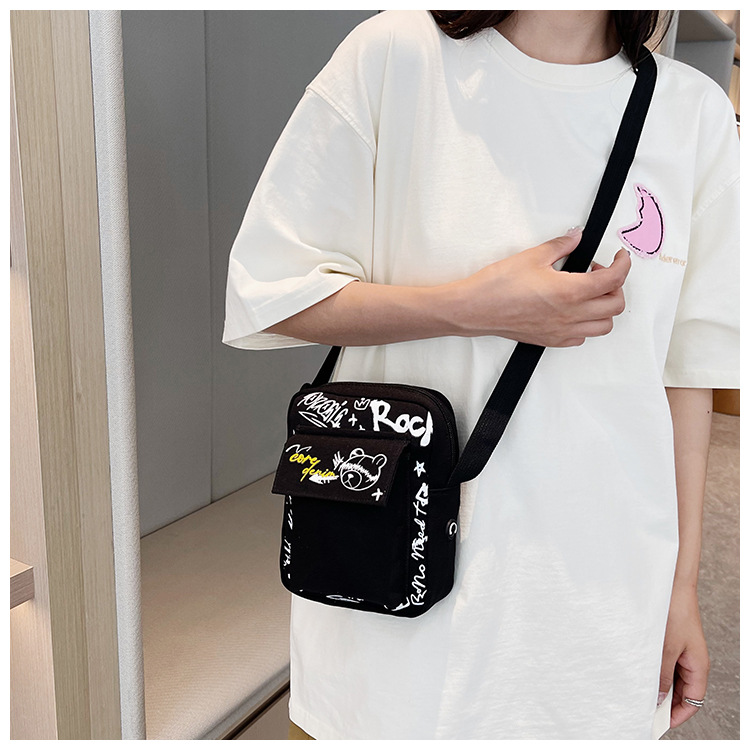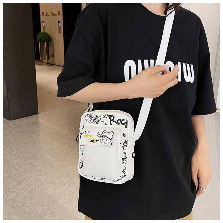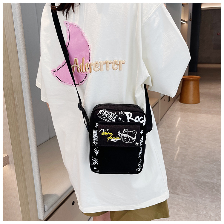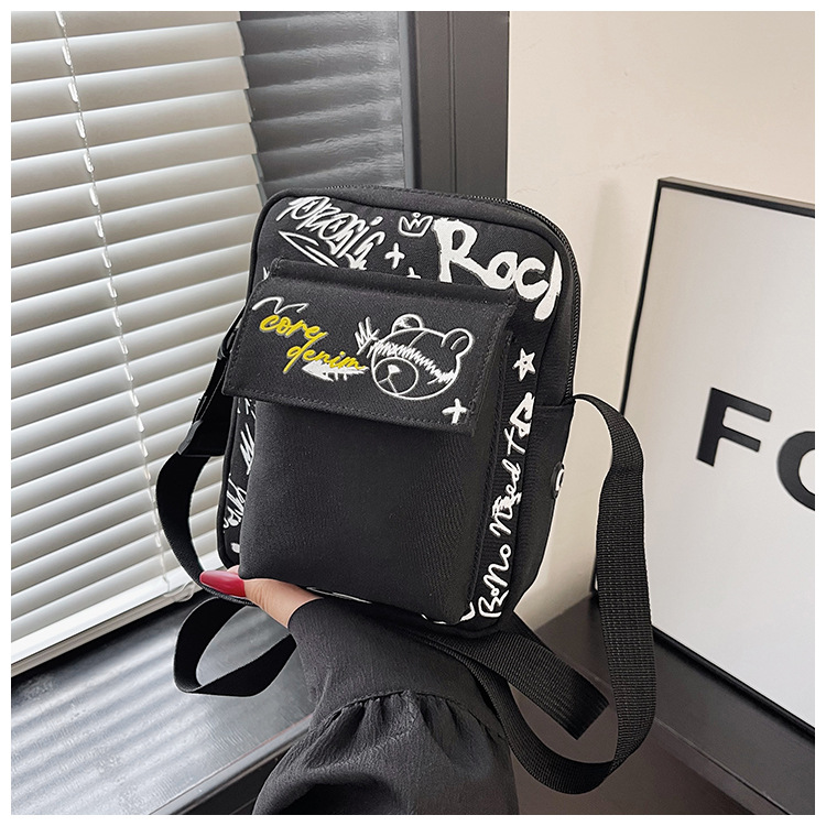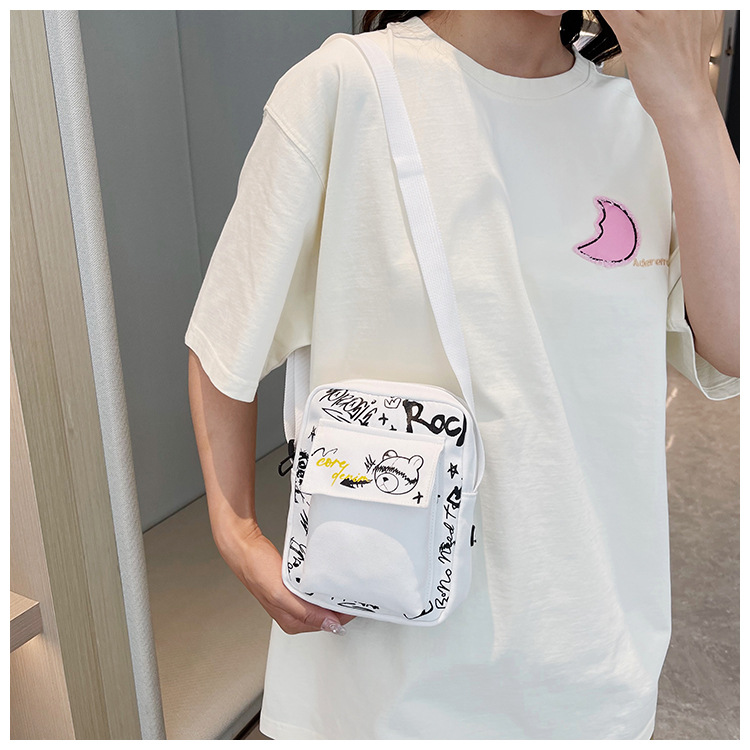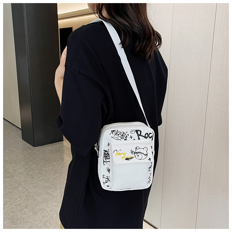 만화 숄더백 여성용 2026 겨울 신상 학생 크로스백 귀여운 그래피티 곰 캐주얼 동전 지갑 작은 사각 가방스토어 가기