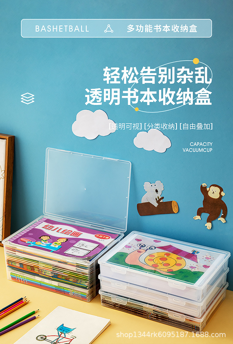 책 저장 상자 투명 저장 상자 저장 상자 장난감 어린이 고등학교 교실 테이블 톱 책 그림책 바구니스토어 가기