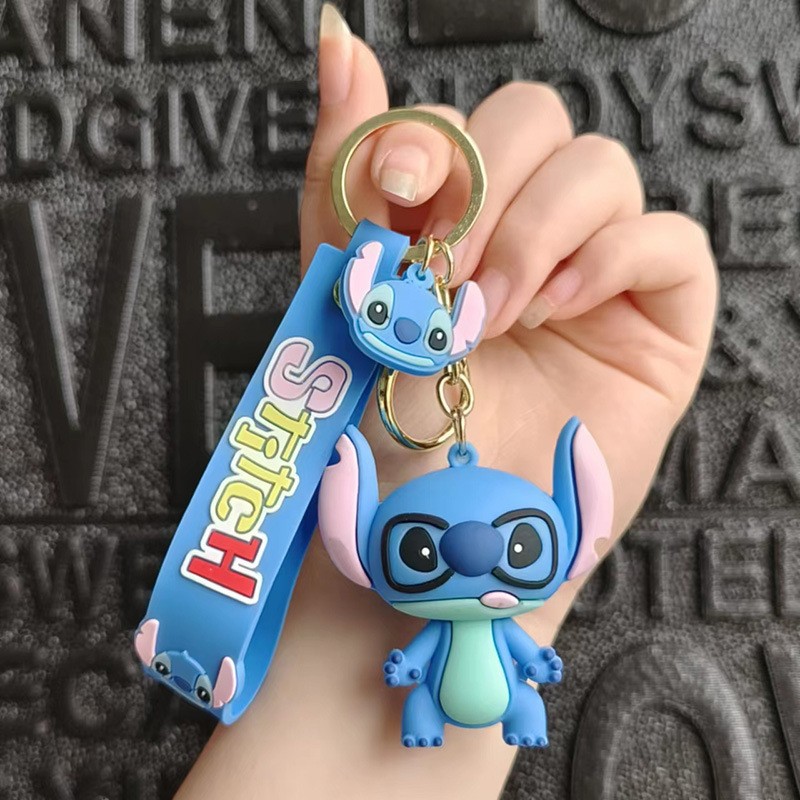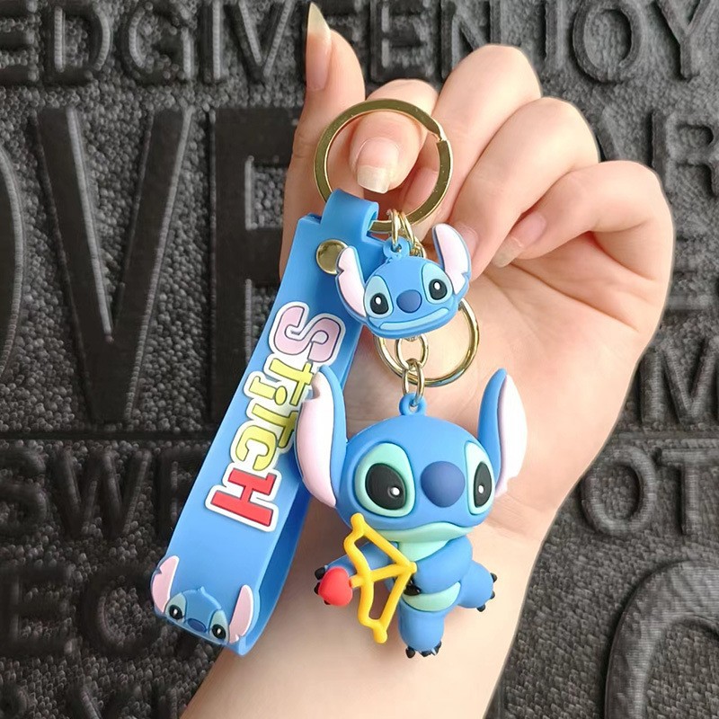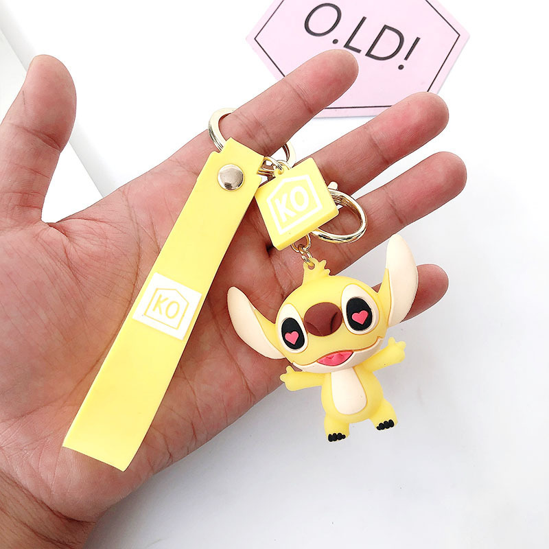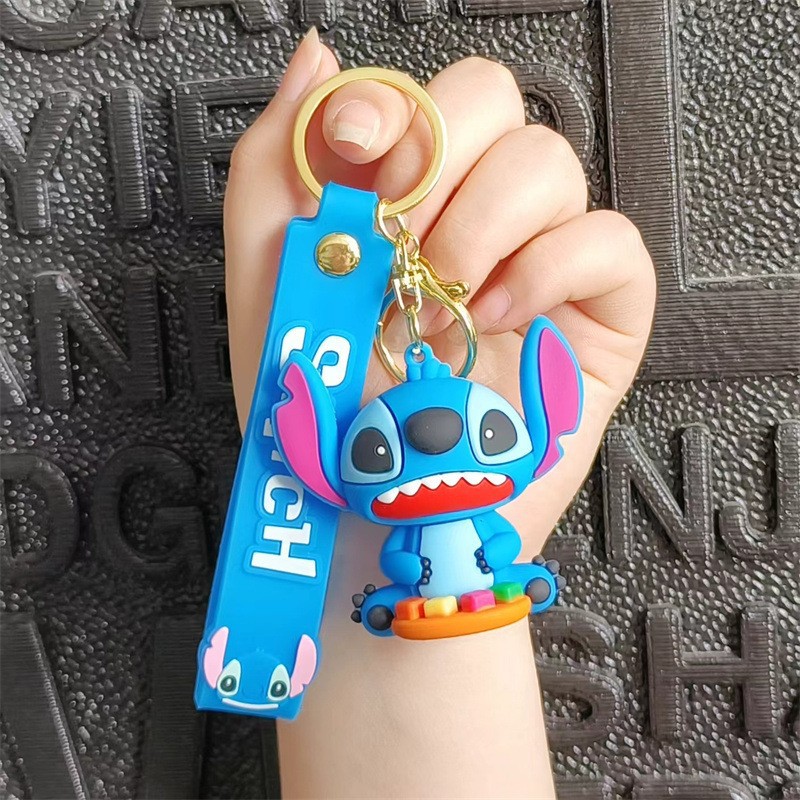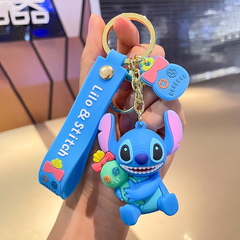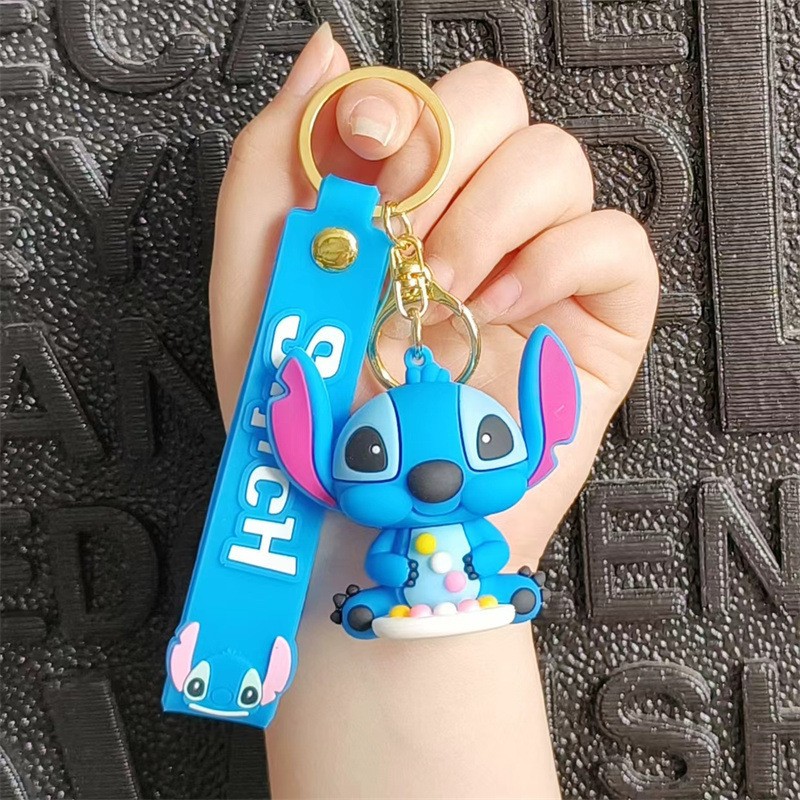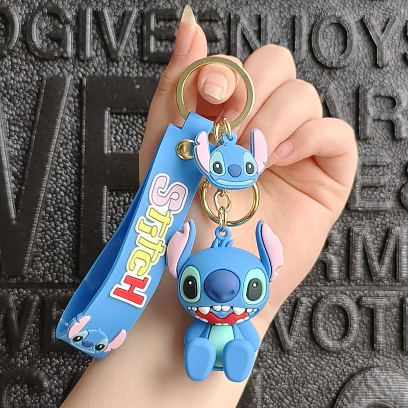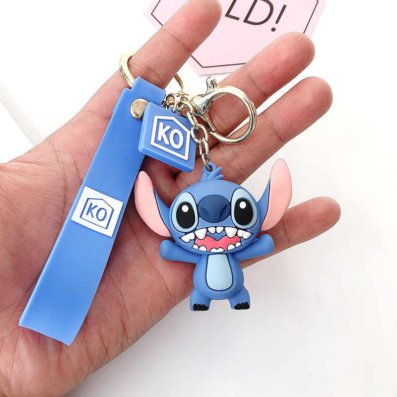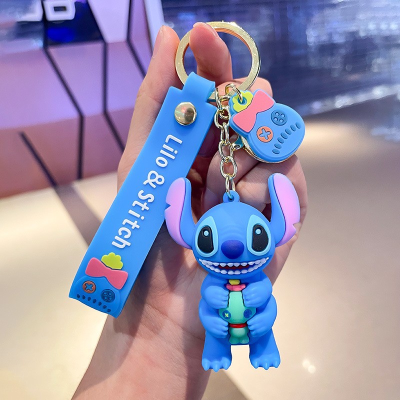 귀여운 만화 스티치 책가방 자동차 키 체인 작은 펜던트 학교 가방 키 체인 장식품 발톱 기계 인형 도매스토어 가기
