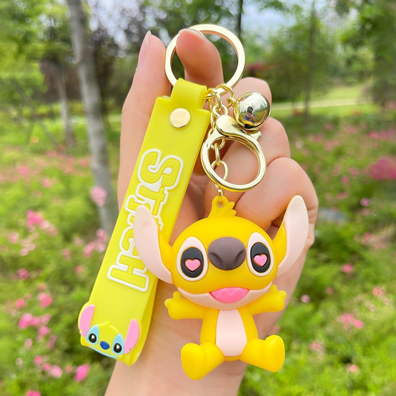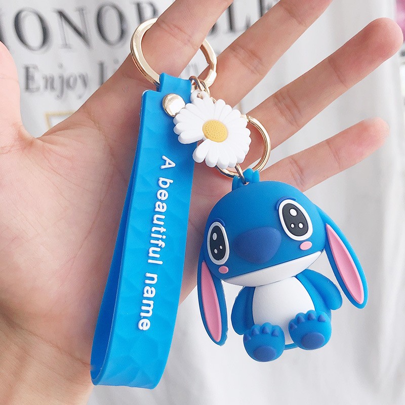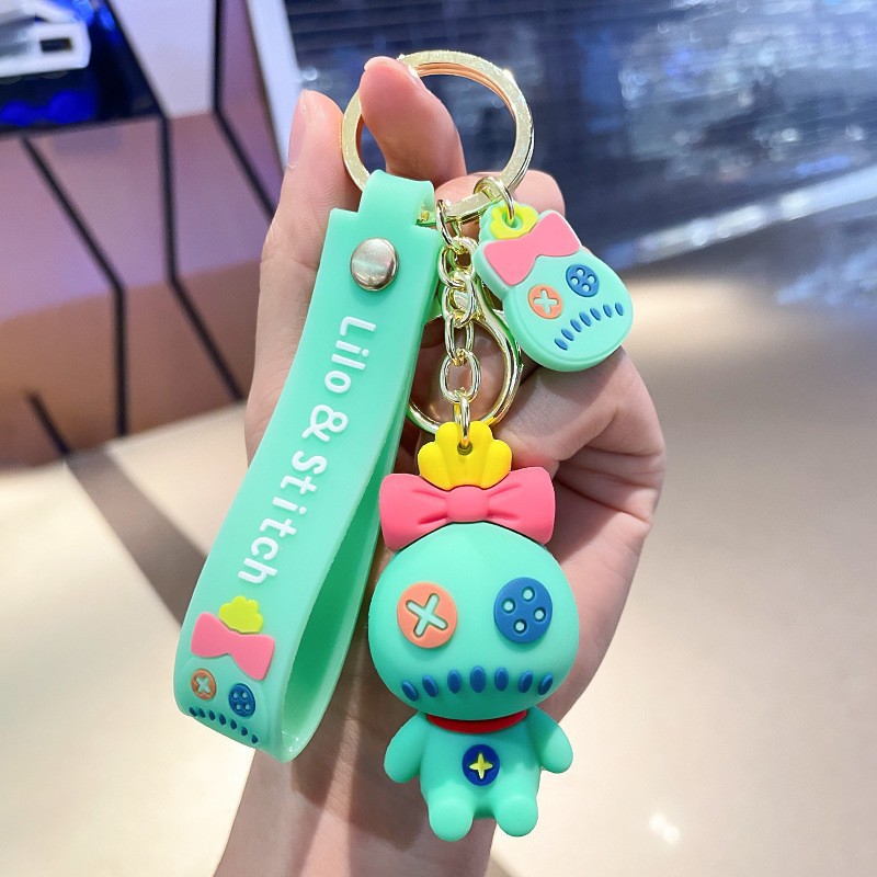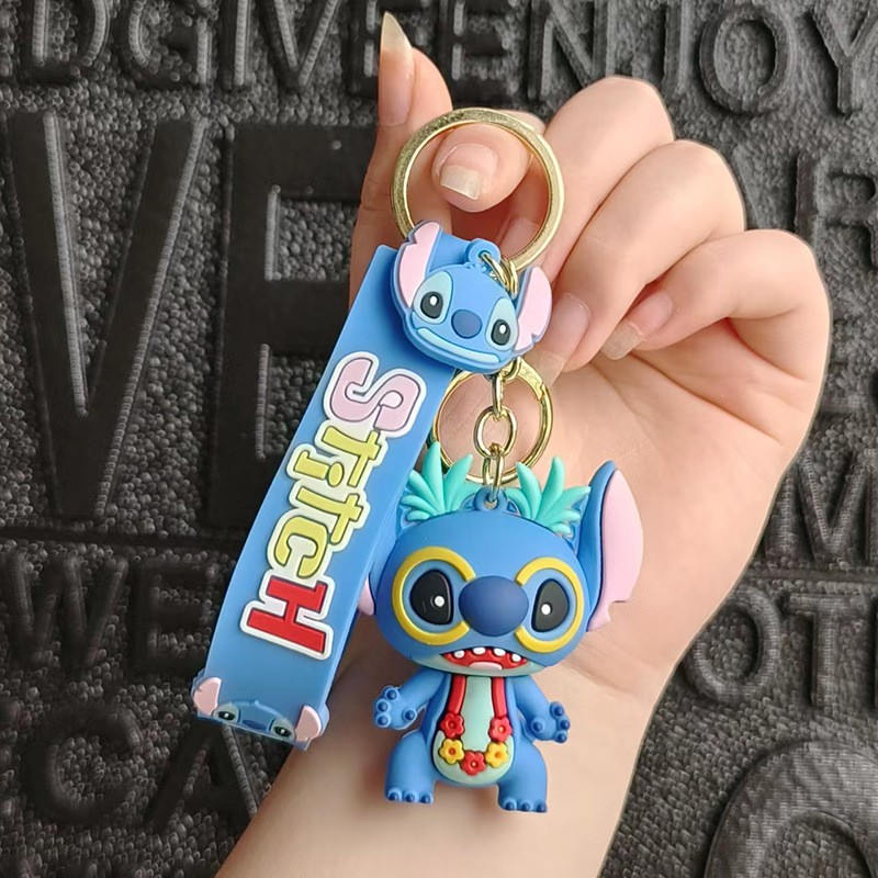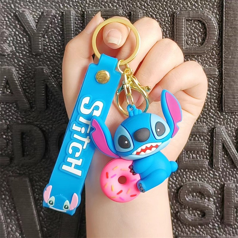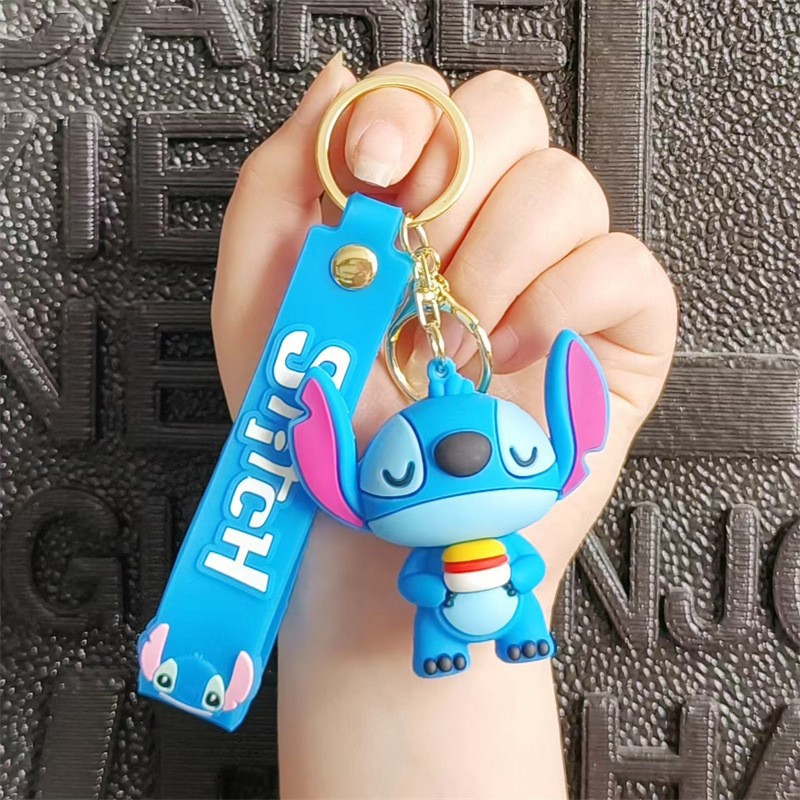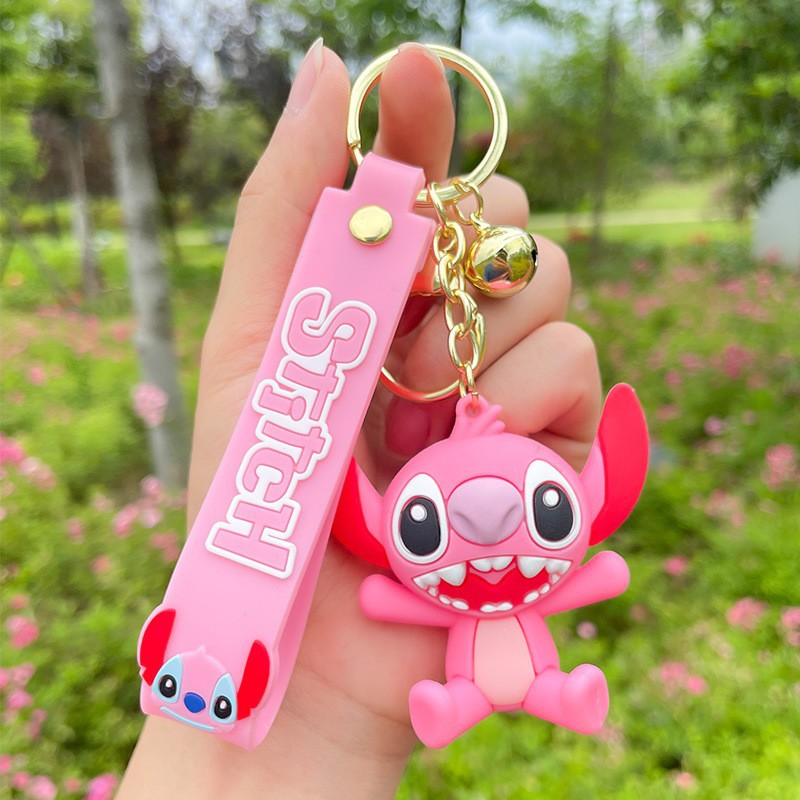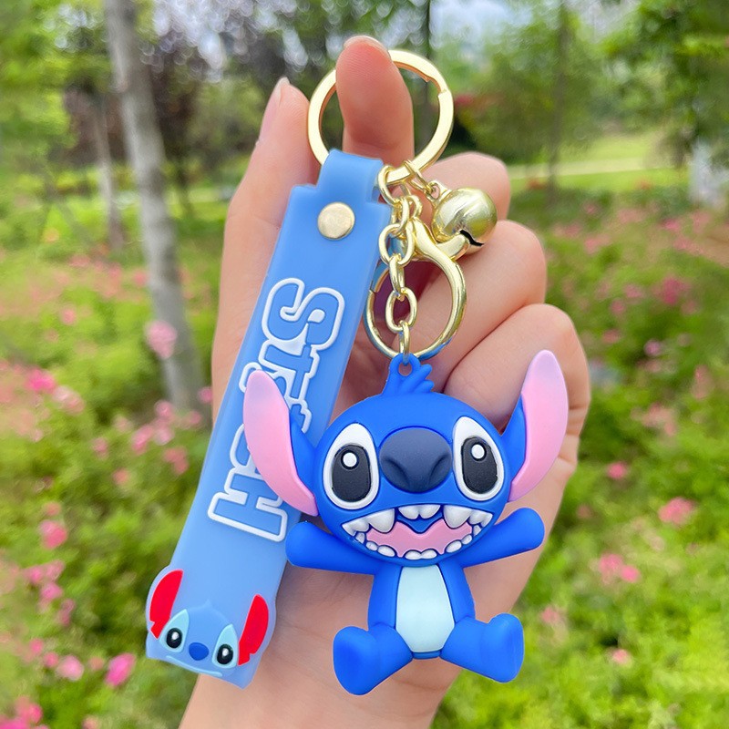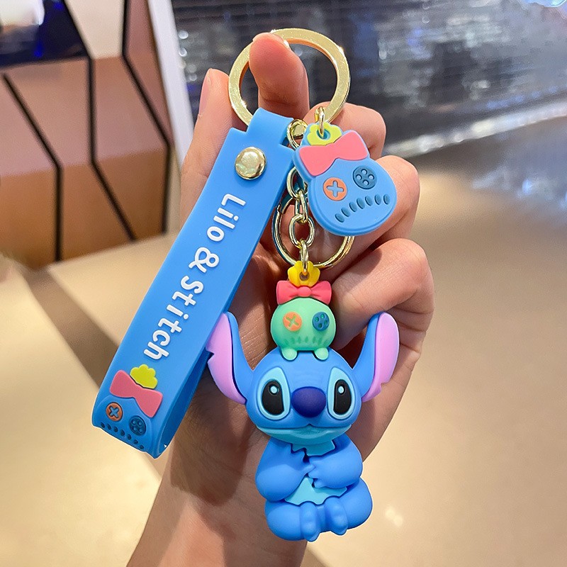 귀여운 만화 스티치 책가방 자동차 키 체인 작은 펜던트 학교 가방 키 체인 장식품 발톱 기계 인형 도매스토어 가기