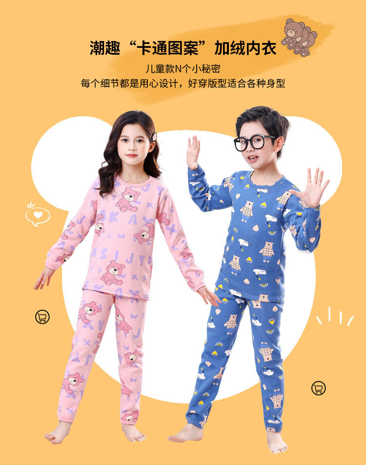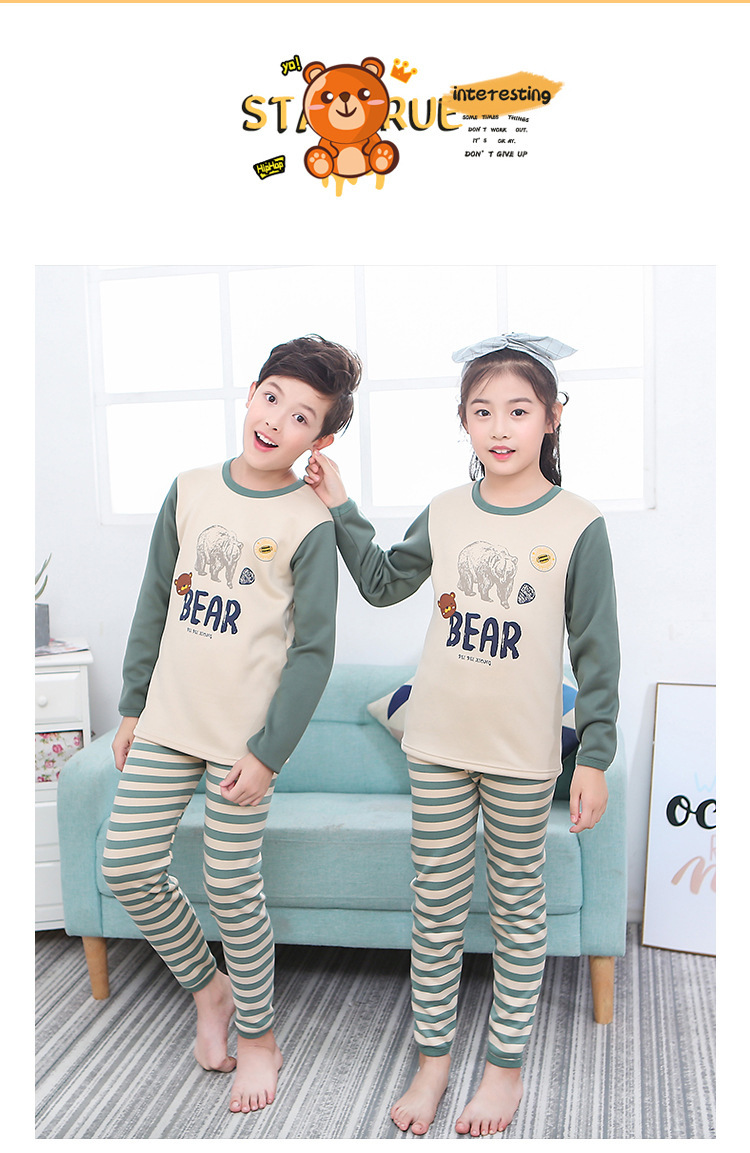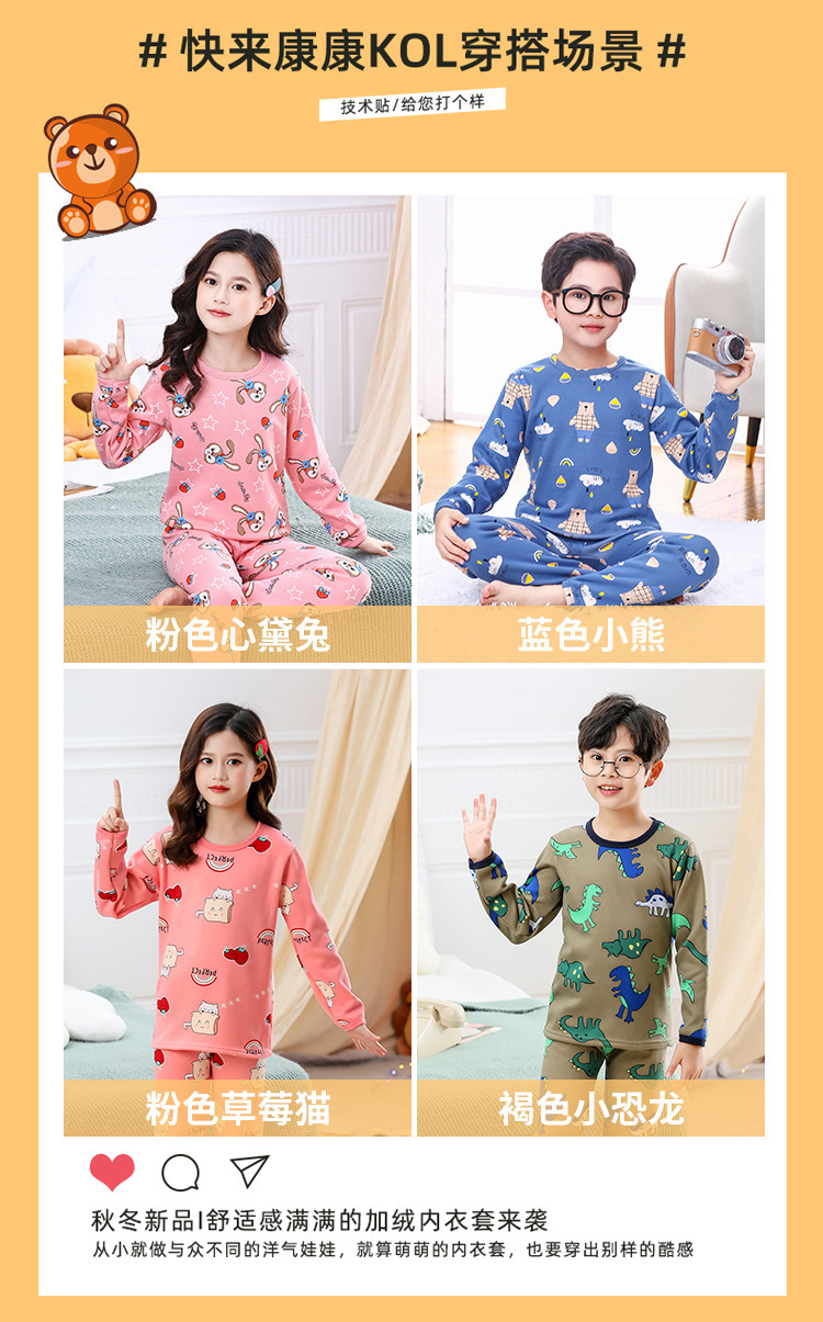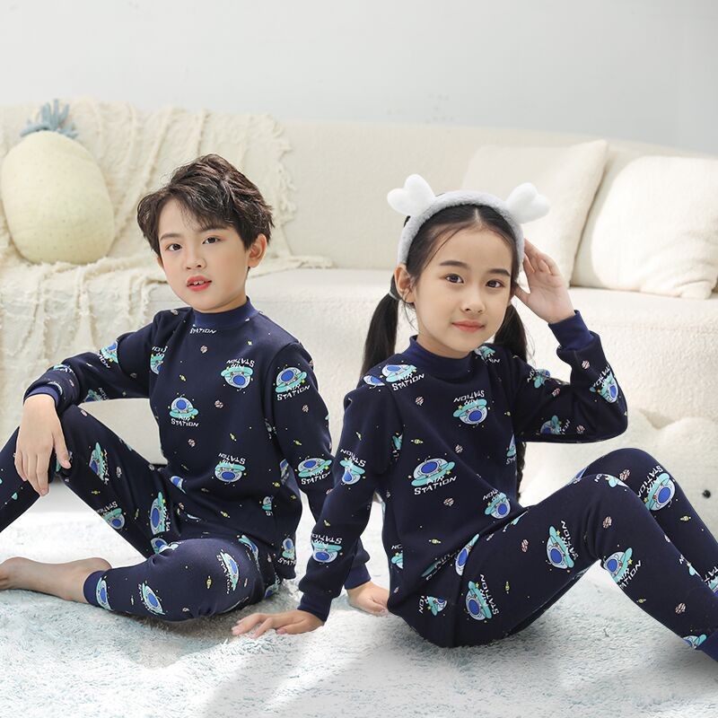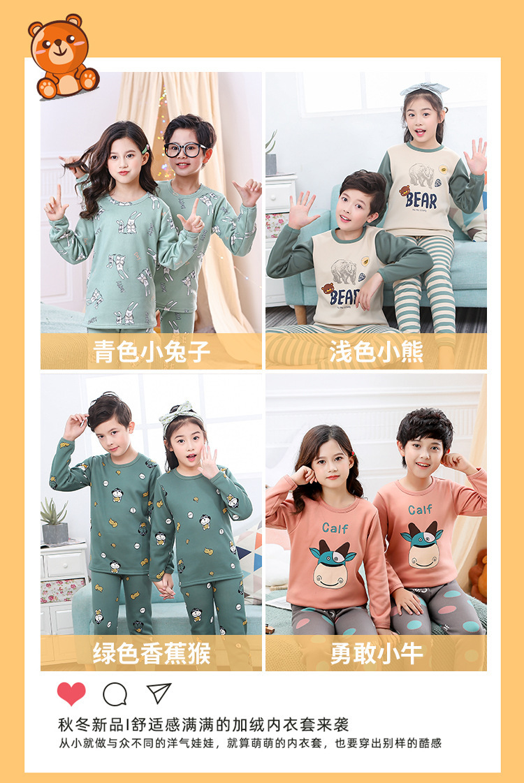 가을과 겨울 어린이 기모 두꺼운 열 속옷 세트 원피스 벨벳 소년 소녀 인쇄 잠옷 홈 웨어 도매스토어 가기