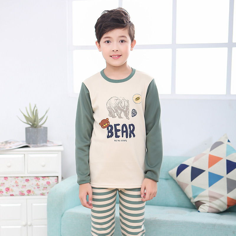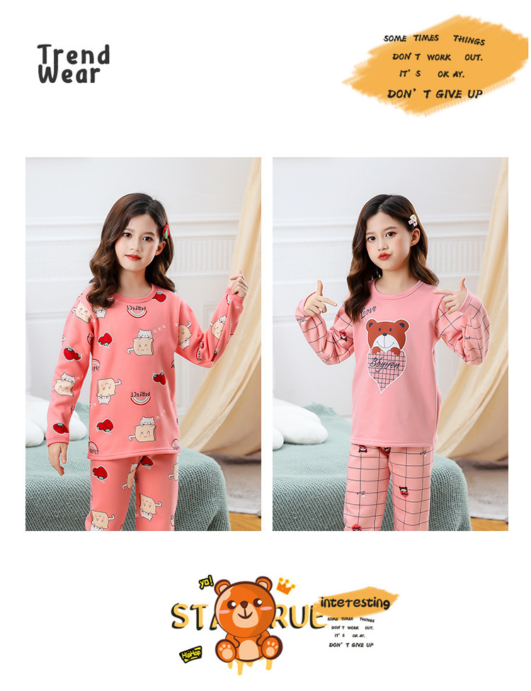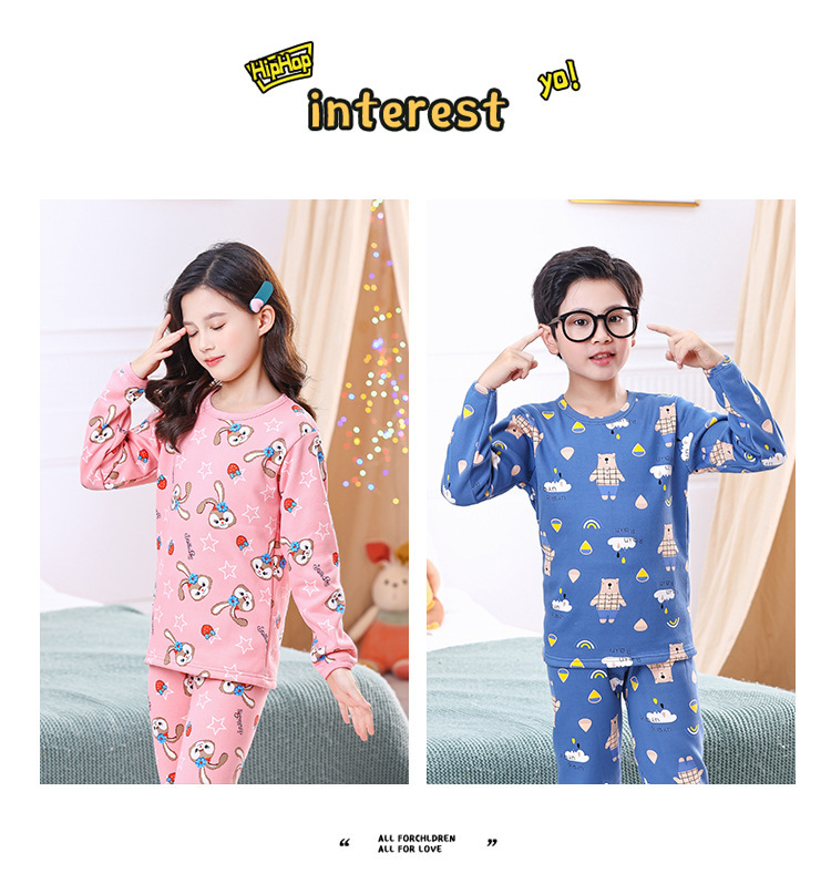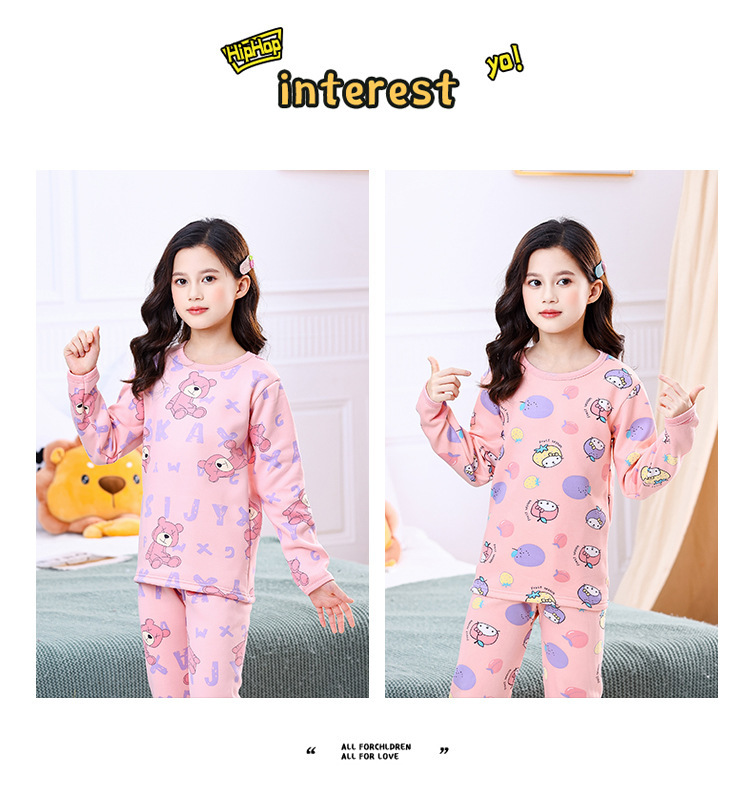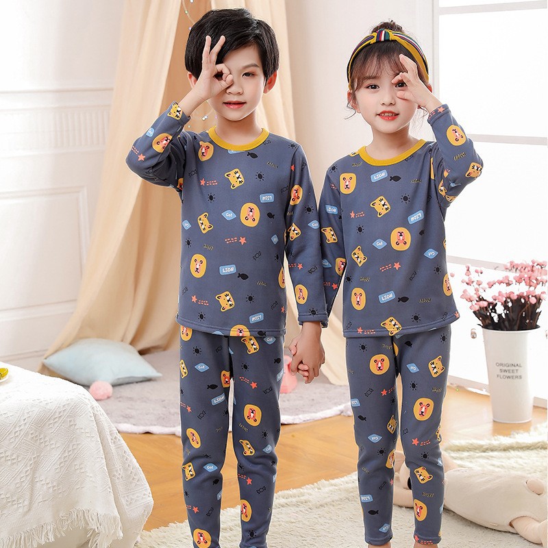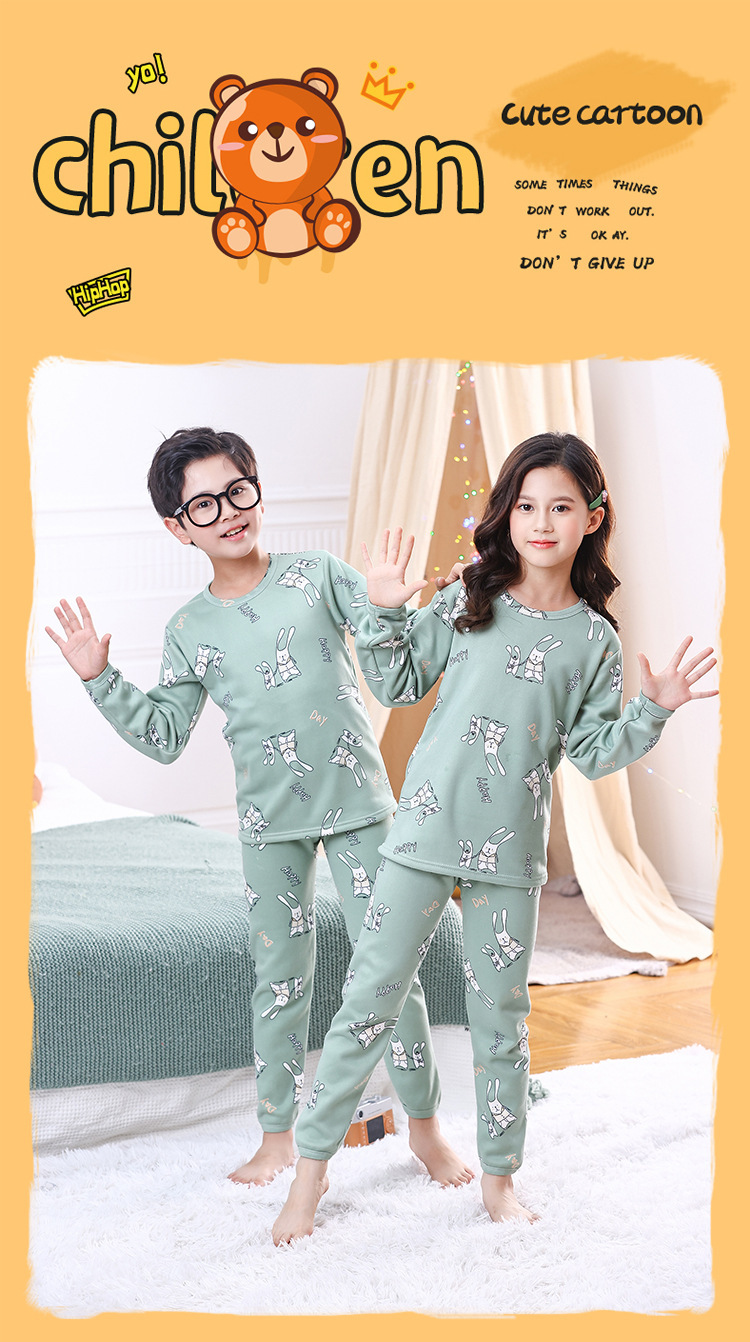 가을과 겨울 어린이 기모 두꺼운 열 속옷 세트 원피스 벨벳 소년 소녀 인쇄 잠옷 홈 웨어 도매스토어 가기
