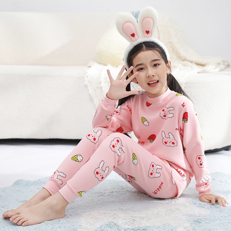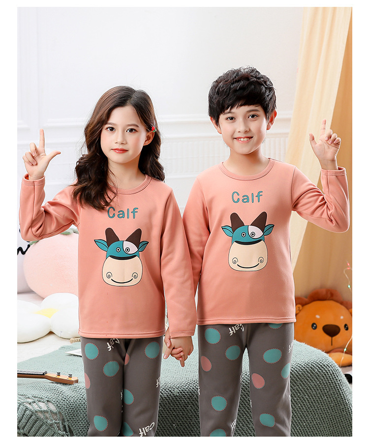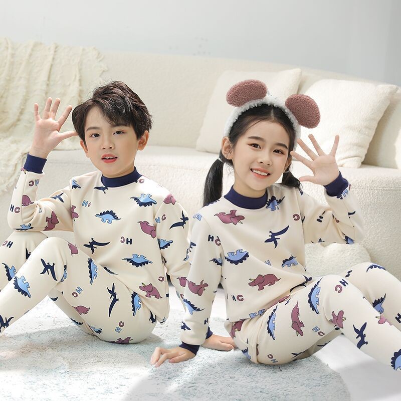 가을과 겨울 어린이 기모 두꺼운 열 속옷 세트 원피스 벨벳 소년 소녀 인쇄 잠옷 홈 웨어 도매