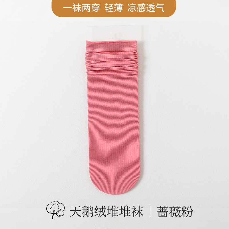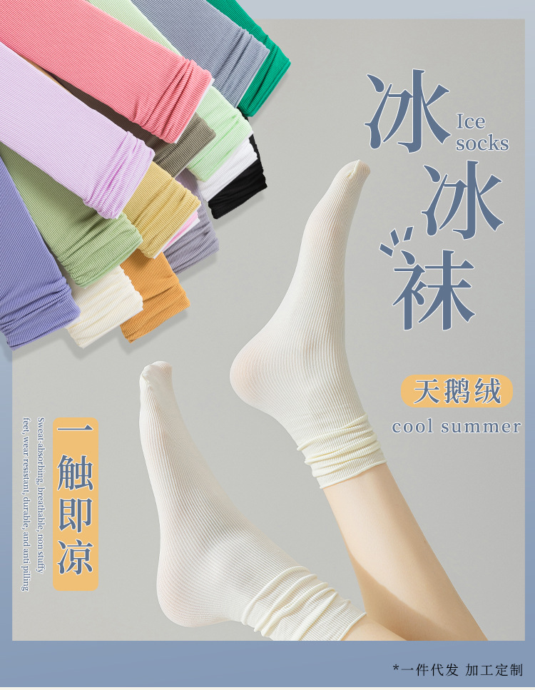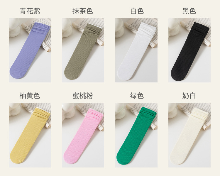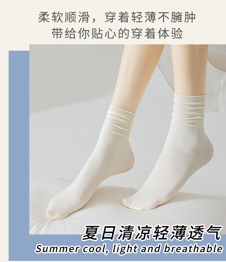 아이스 아이스 양말 여성 중간 길이 양말 여름 얇은 Ins 트렌디 한 인터넷 레드 화이트 벨벳 아이스 실크 여름 긴 스택 양말