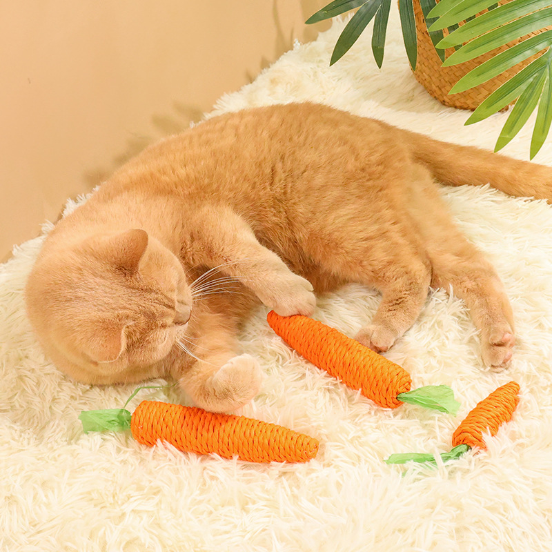 고양이 당근 장난감, 자기만의 즐거움을 위한 장난감, 물림 방지, 이갈이 및 발톱 갈이용, 고양이 놀잇대, 종이끈 당근 장난감