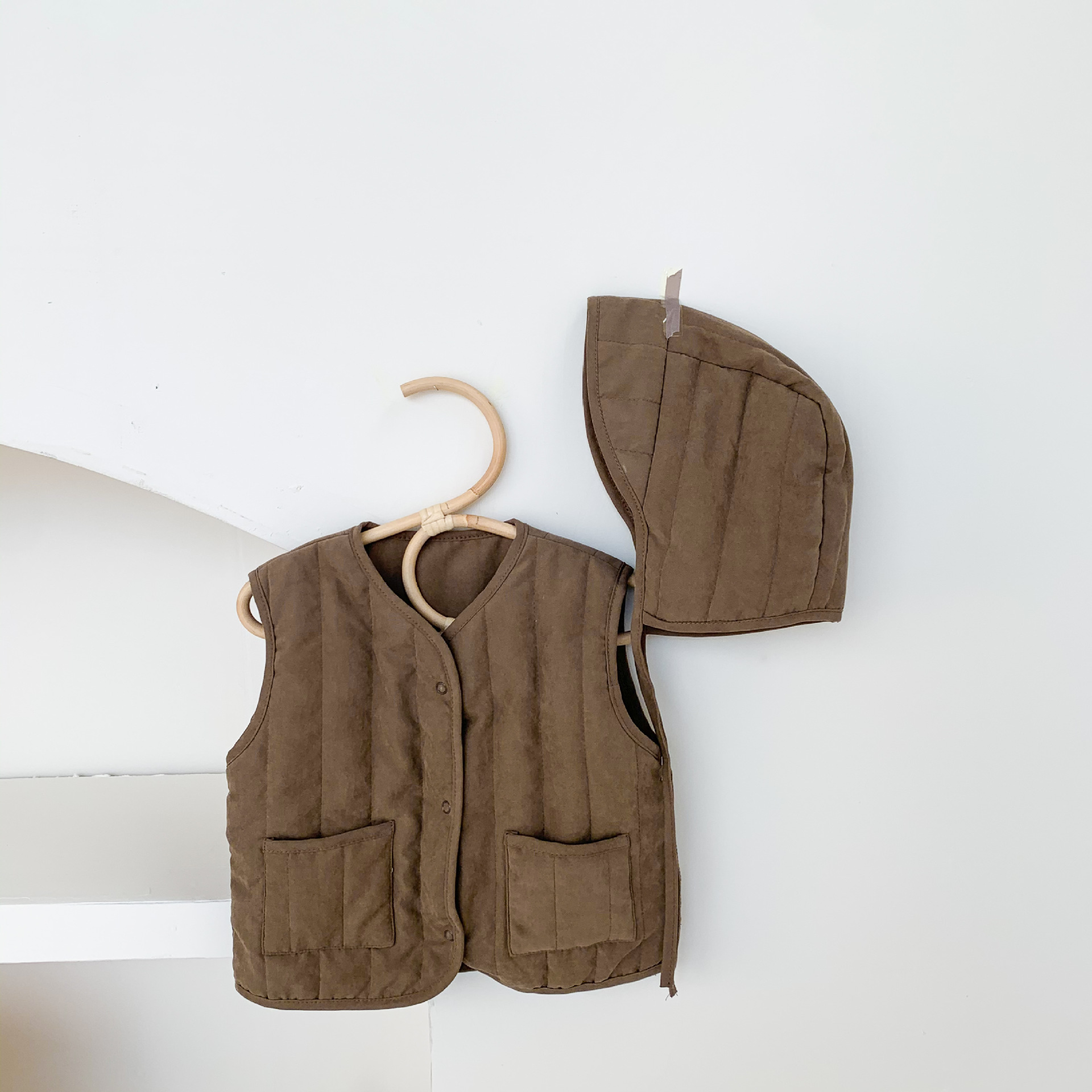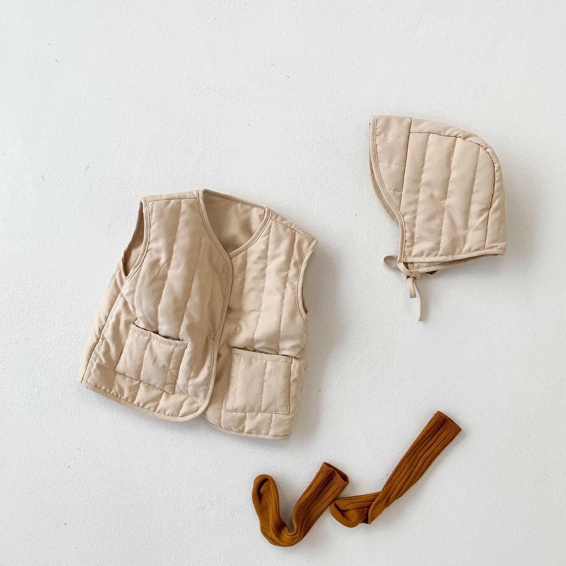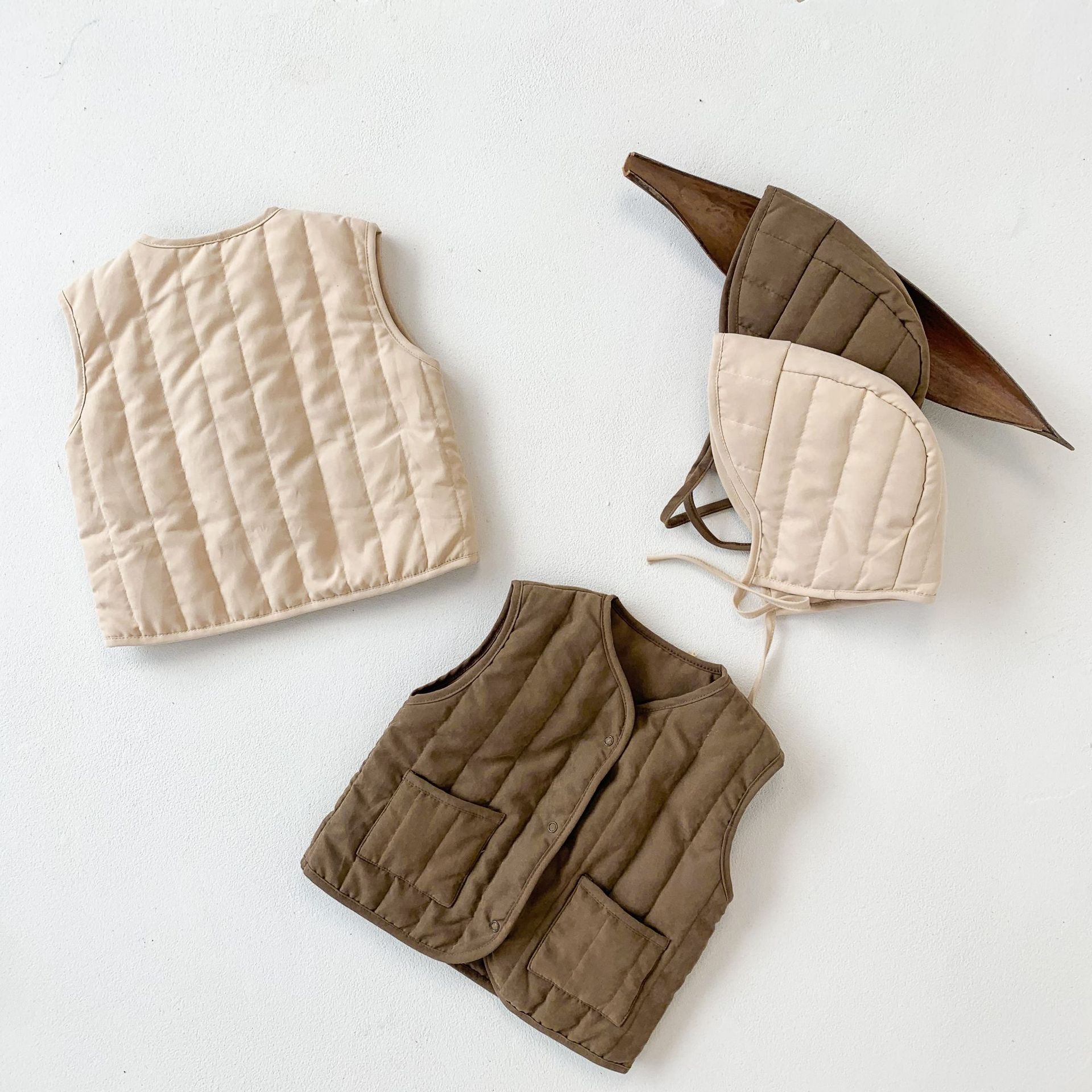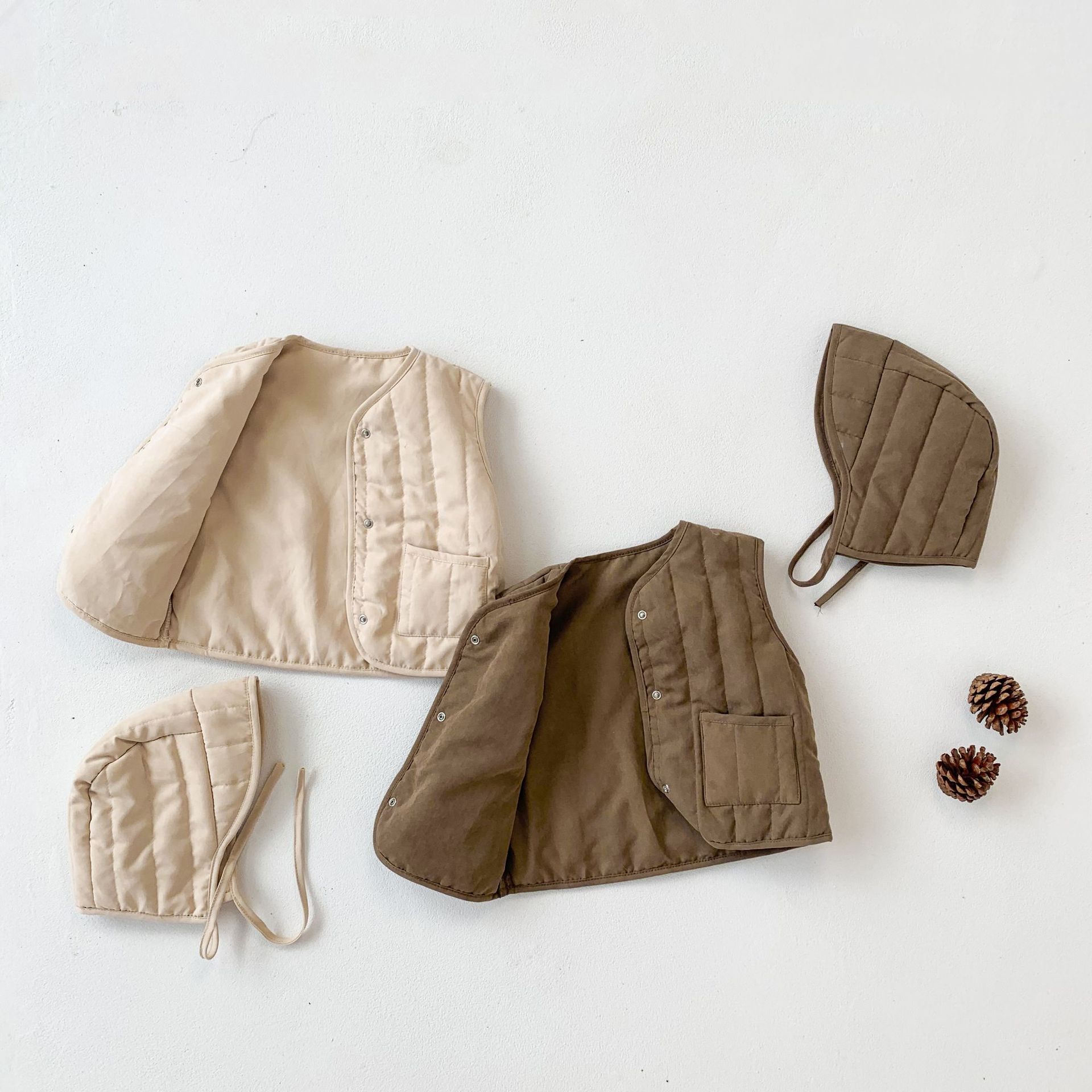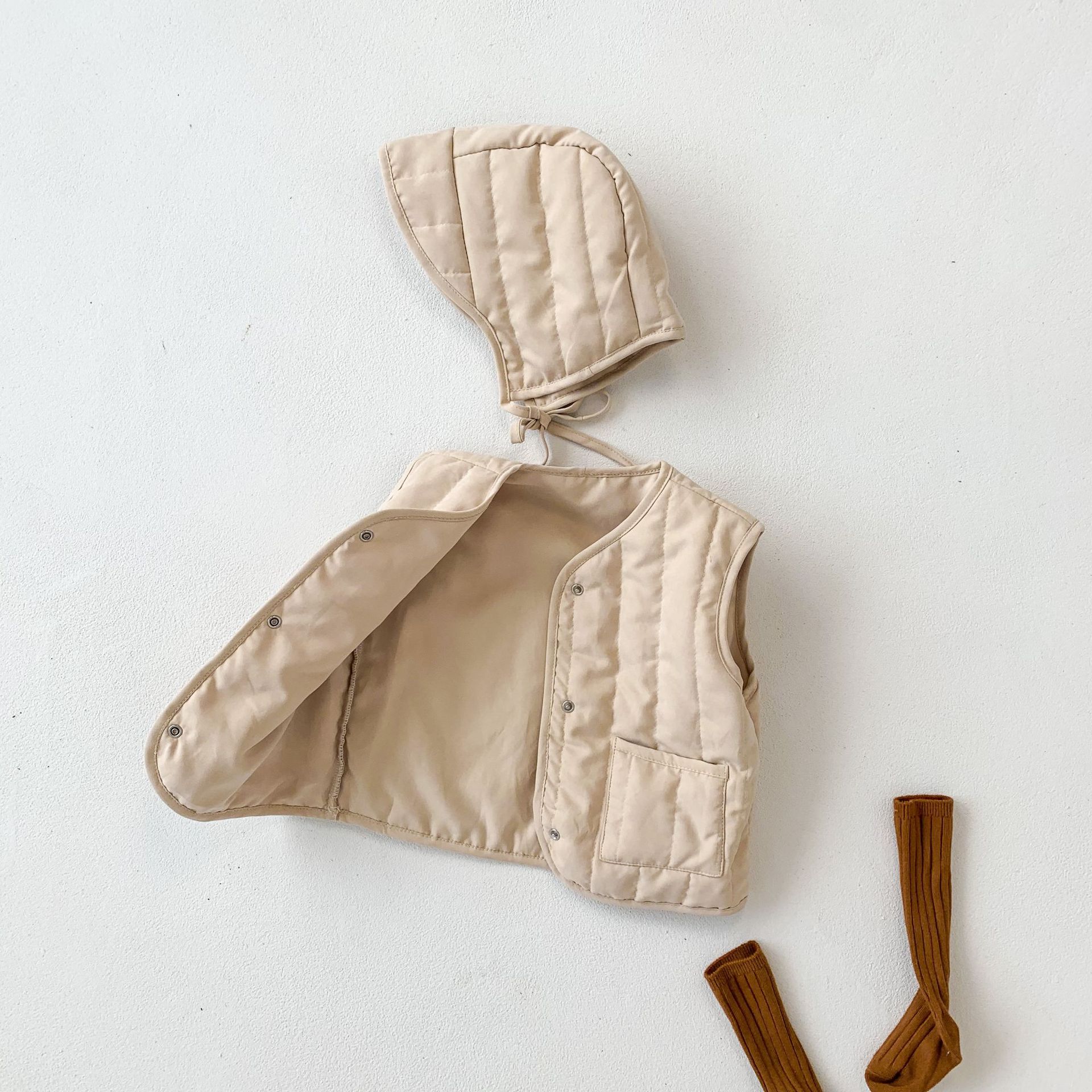 아기 가을 겨울 한국 스타일 아기 옷, 압축 면 단색 다용도 아동용 면 조끼, 후드가 달린 따뜻한 조끼 가디건