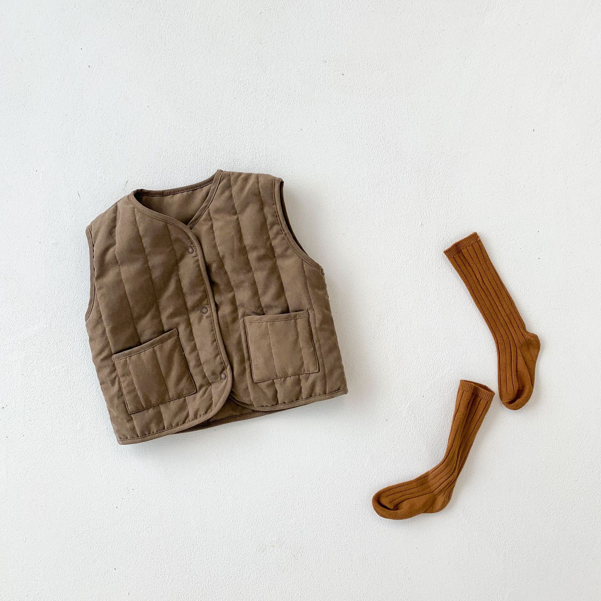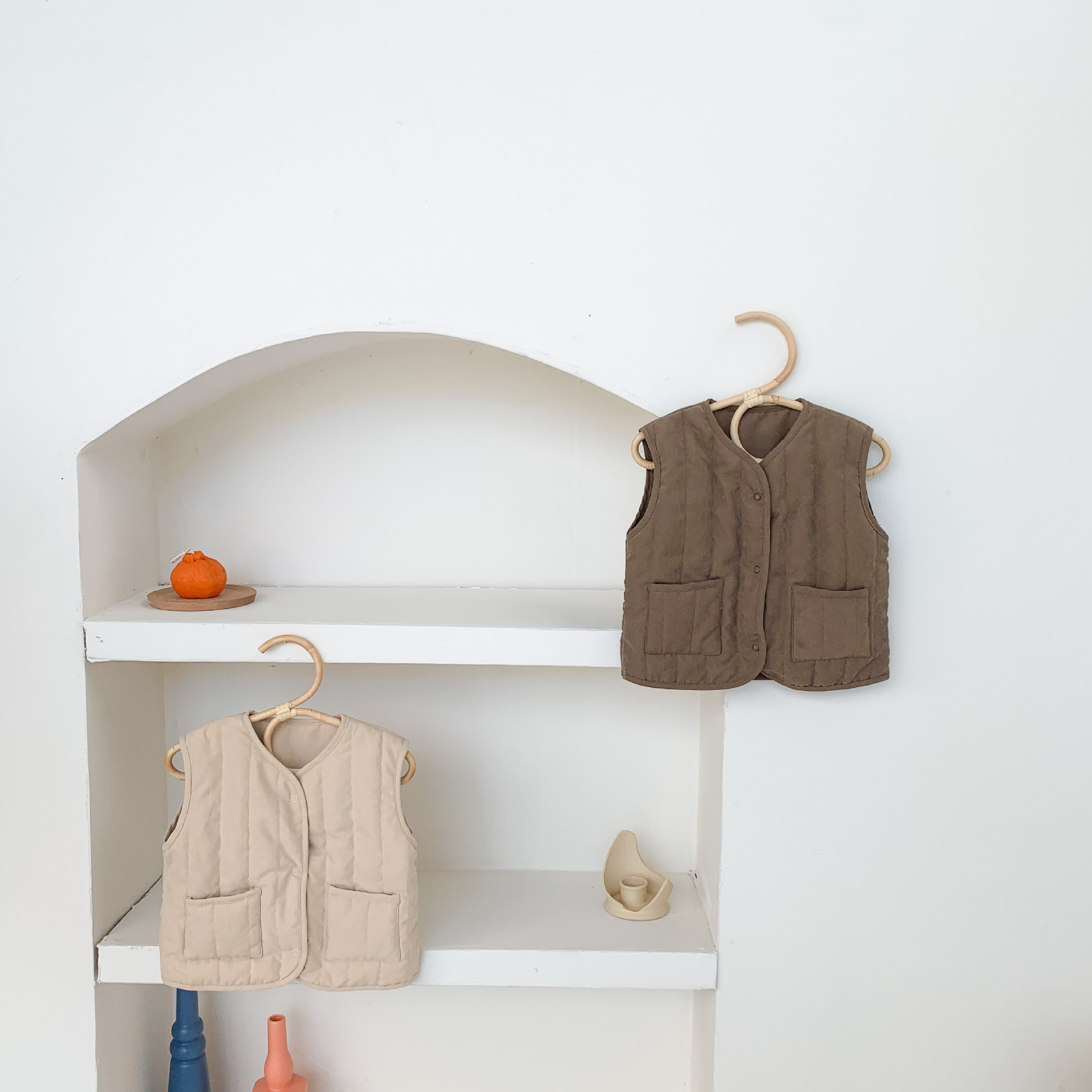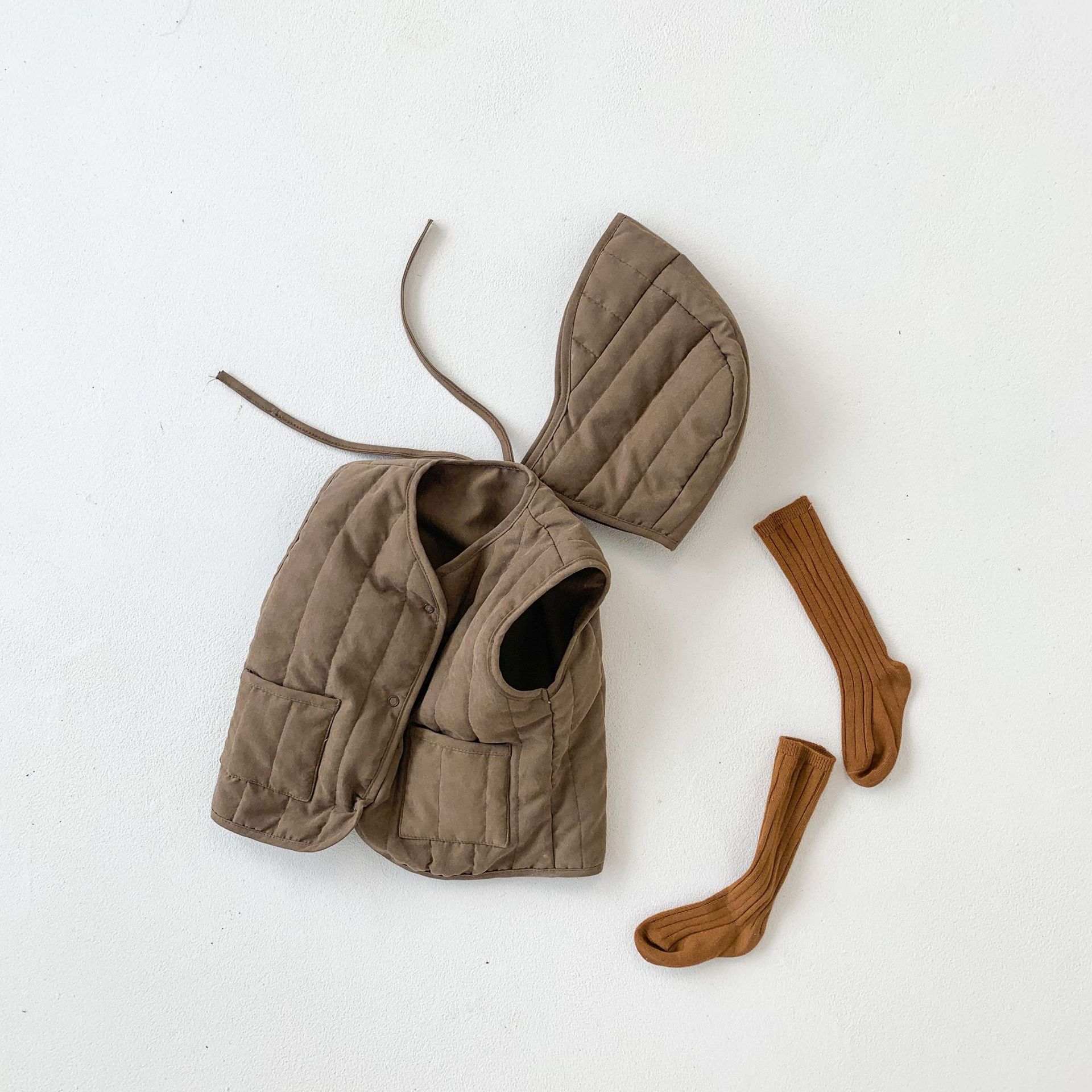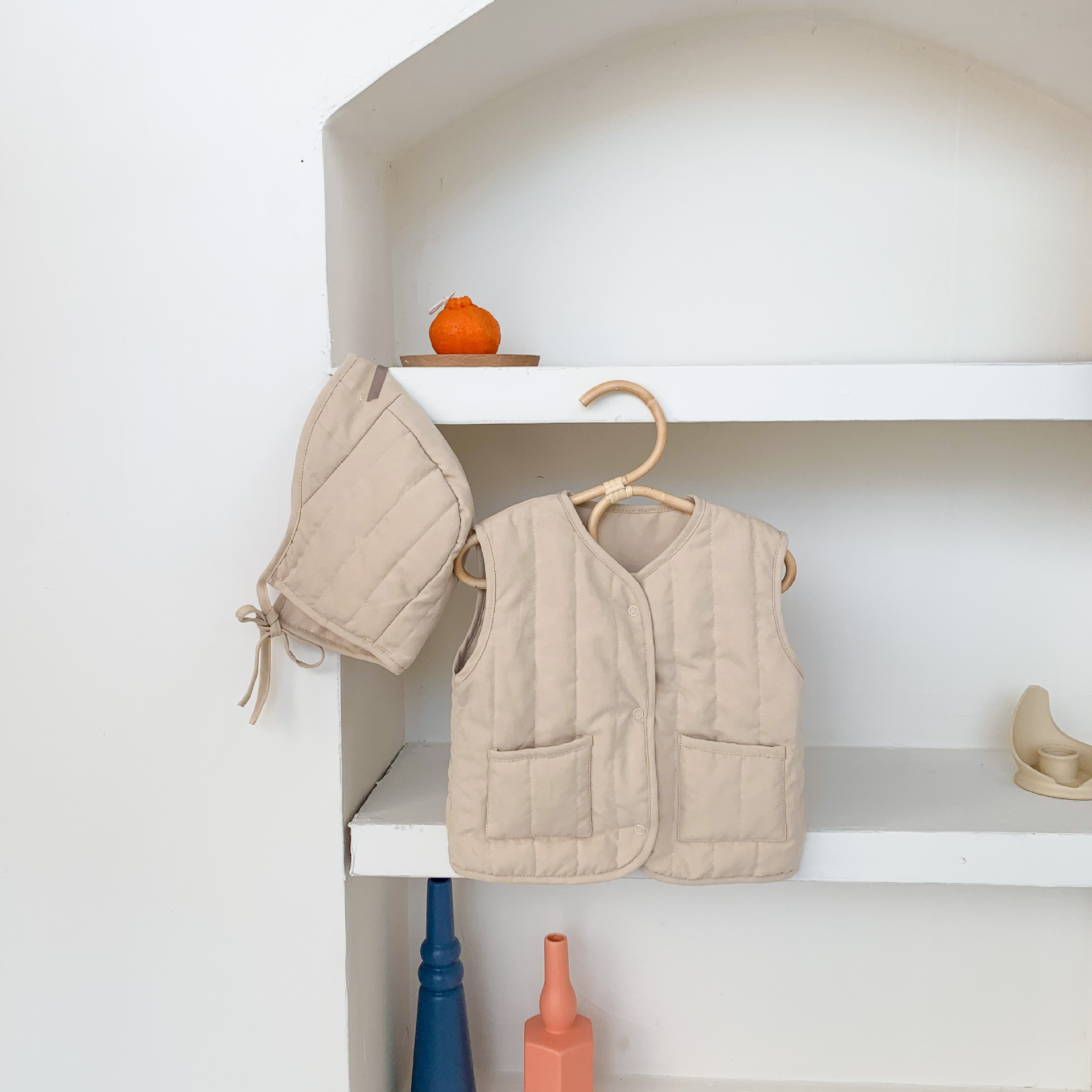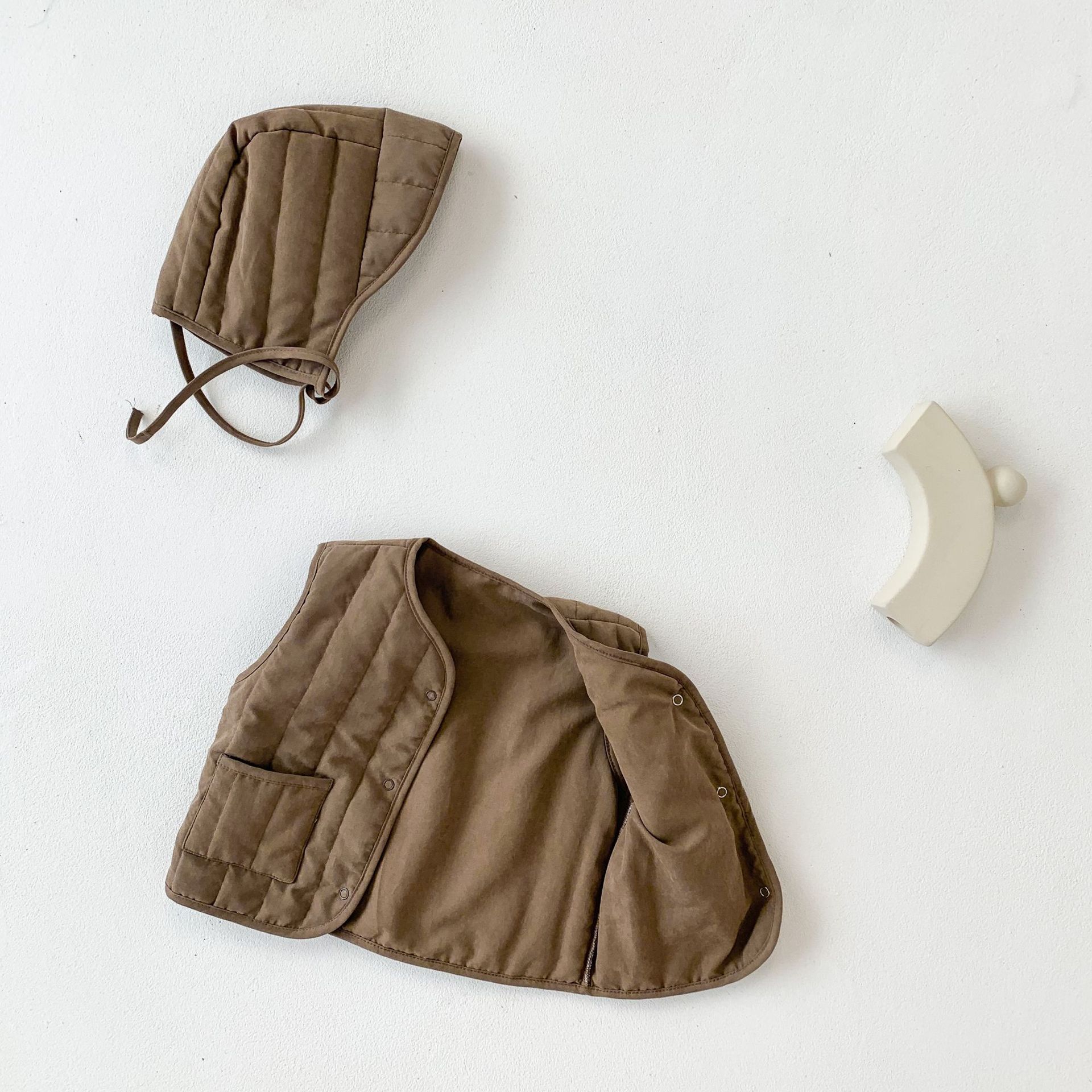 아기 가을 겨울 한국 스타일 아기 옷, 압축 면 단색 다용도 아동용 면 조끼, 후드가 달린 따뜻한 조끼 가디건