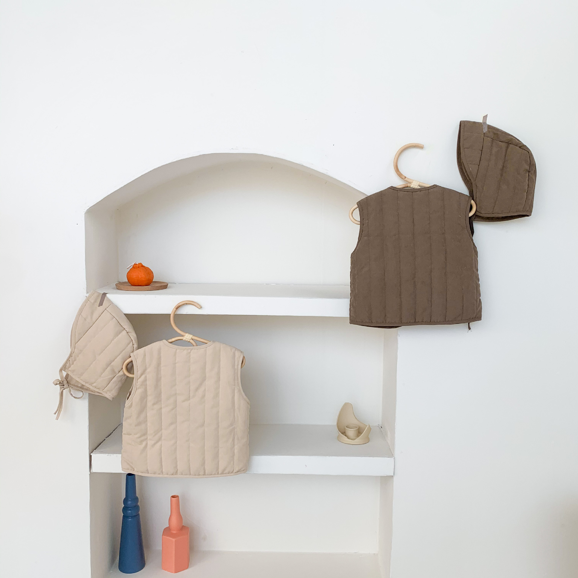 아기 가을 겨울 한국 스타일 아기 옷, 압축 면 단색 다용도 아동용 면 조끼, 후드가 달린 따뜻한 조끼 가디건스토어 가기