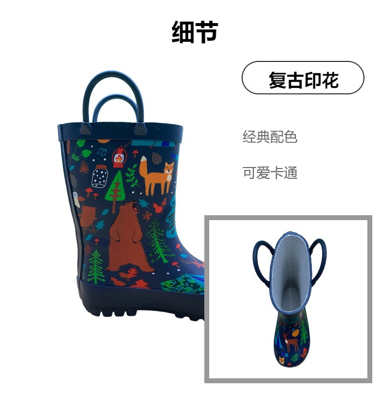 귀여운 어린이 장화, 아기 장화, 만화 어린이 학생 비옷, 남성과 여성을 위한 야외 방수 및 미끄럼 방지 손잡이 워터 슈즈스토어 가기