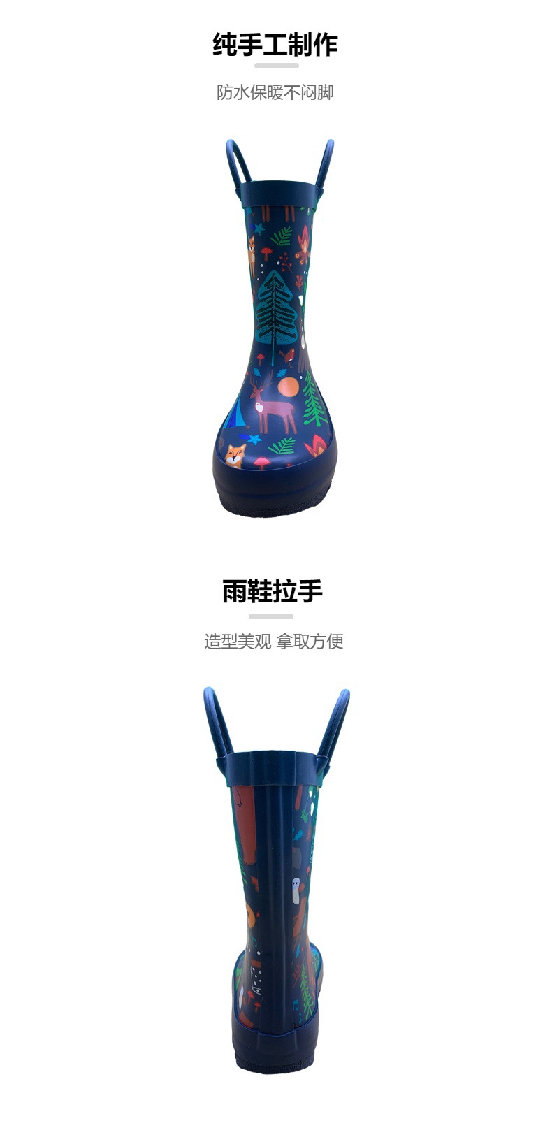 귀여운 어린이 장화, 아기 장화, 만화 어린이 학생 비옷, 남성과 여성을 위한 야외 방수 및 미끄럼 방지 손잡이 워터 슈즈