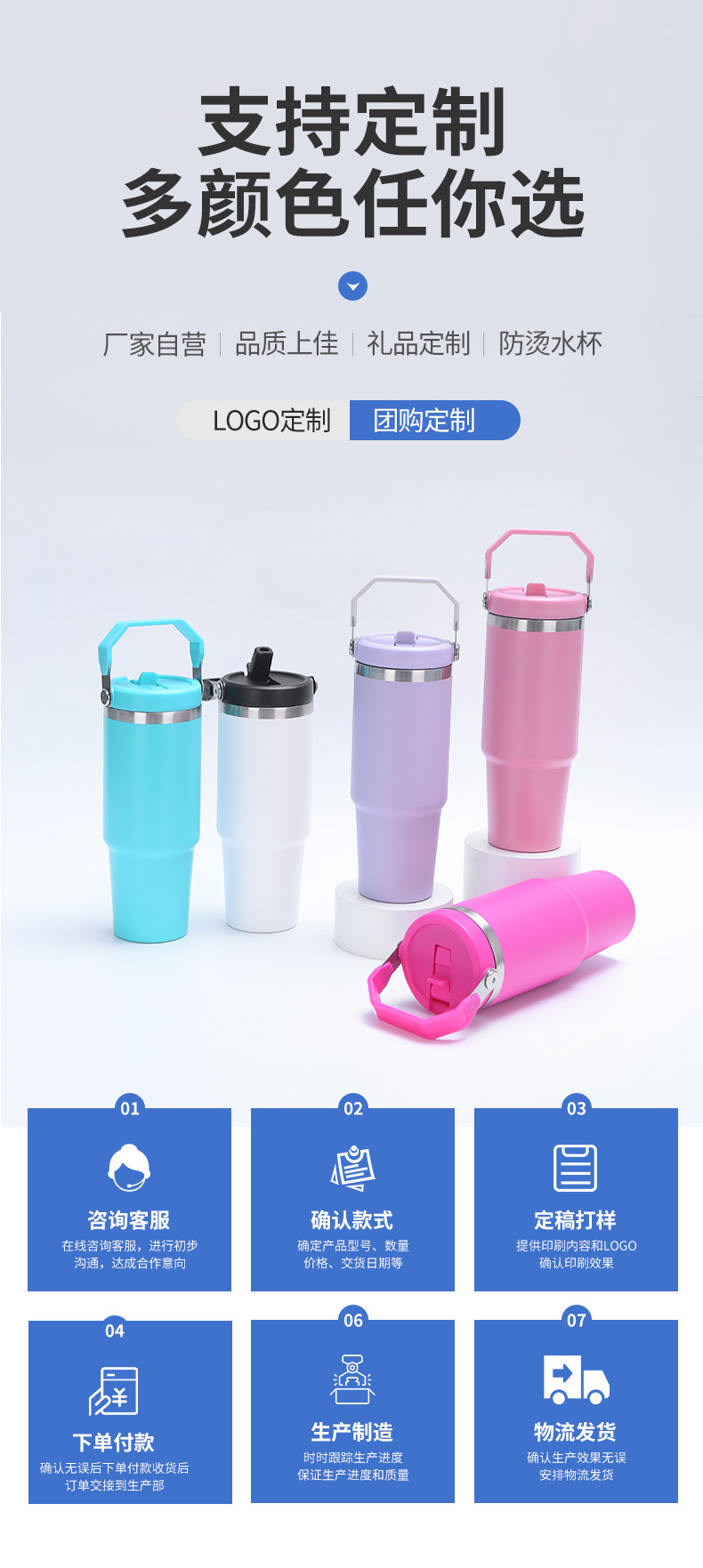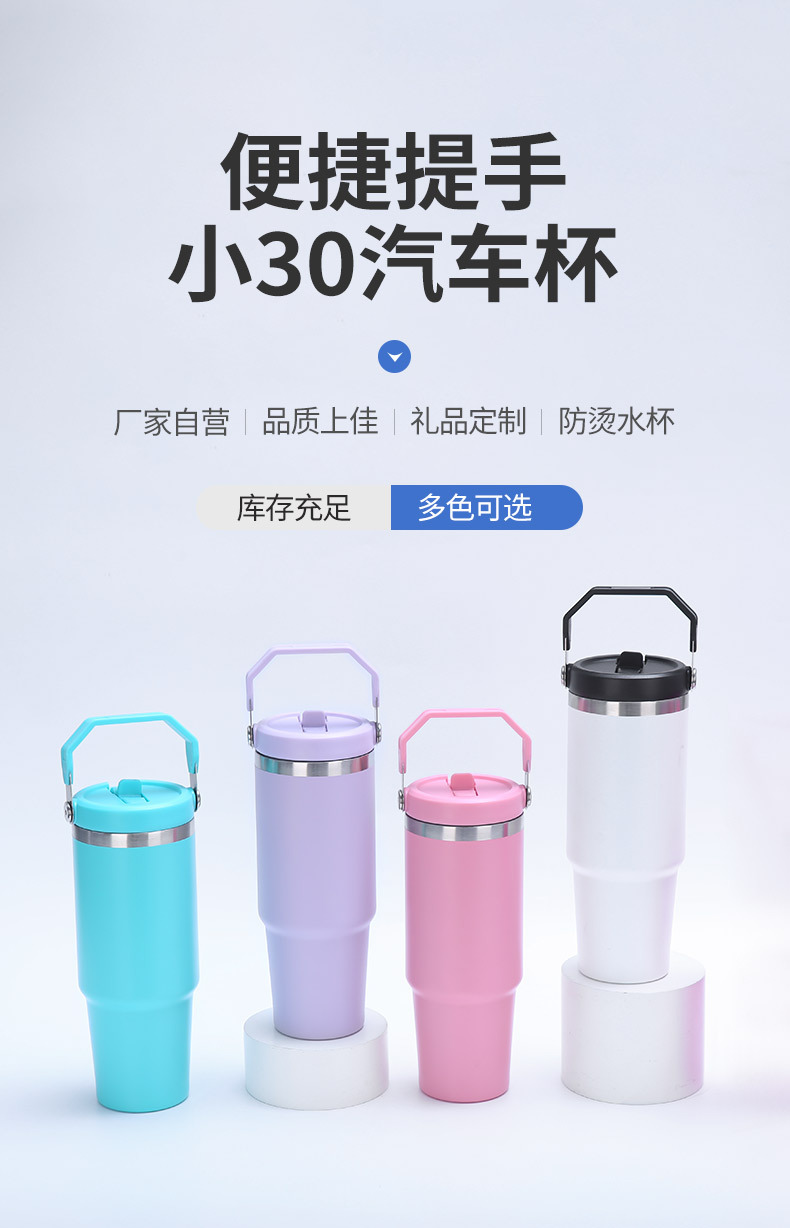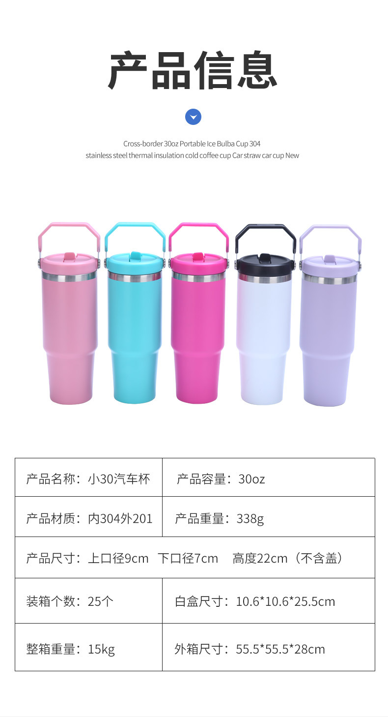 국경을 넘는 대용량 30oz 휴대용 승화 자동차 컵 이중층 진공 밀짚 컵 코팅 스테인레스 스틸 보온병 컵