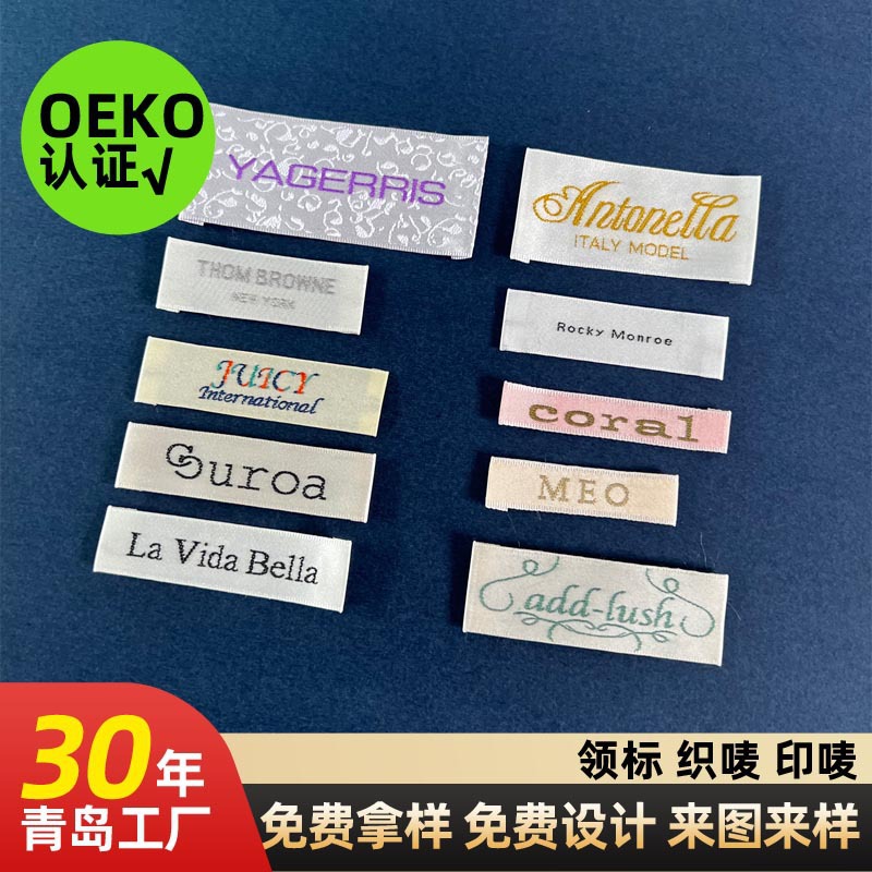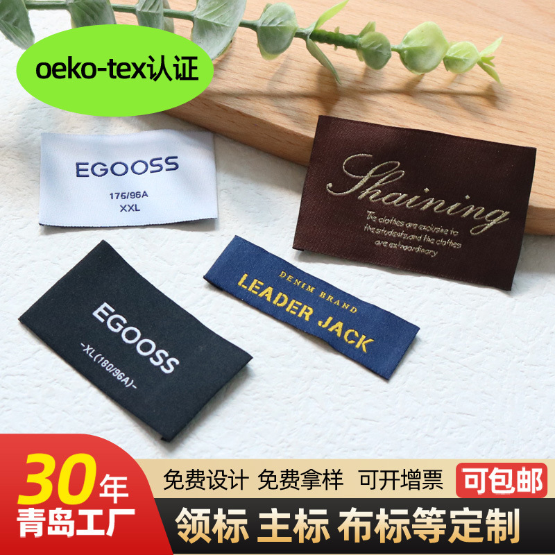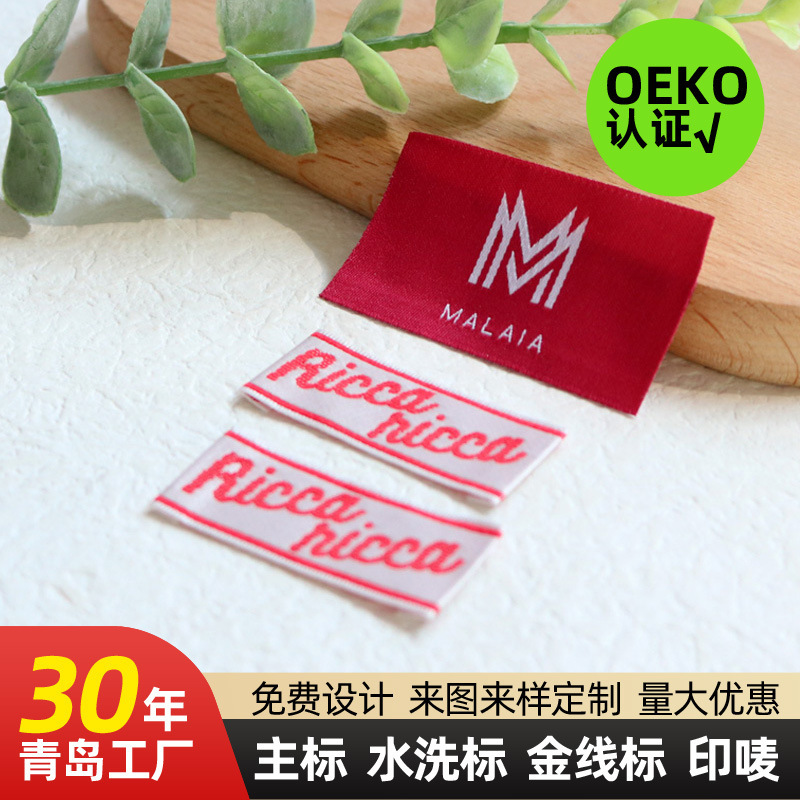 OEKO-TEX 베이비 그레이드 목재 직조 라벨 맞춤 제작, 레트로 티셔츠 데님 메인 라벨, 고밀도, 부드러움, 색상 견뢰도스토어 가기