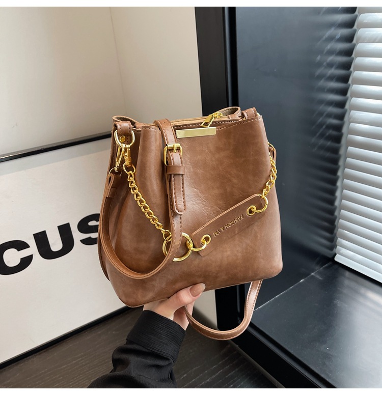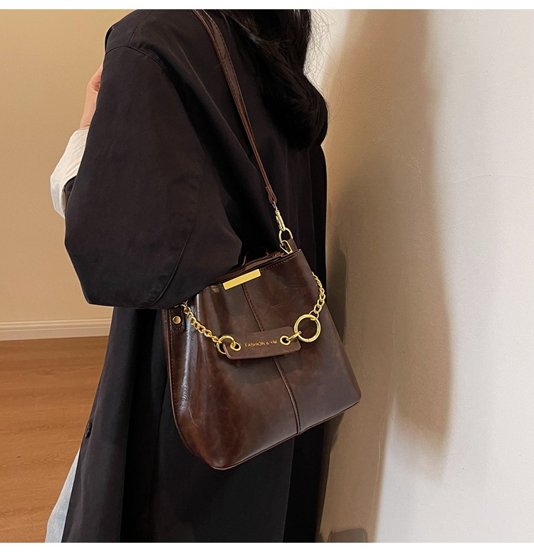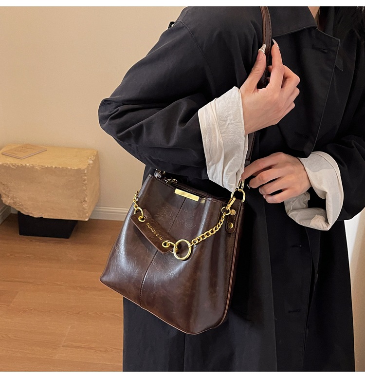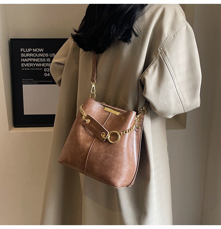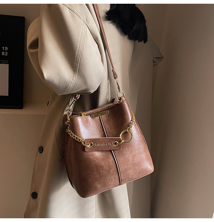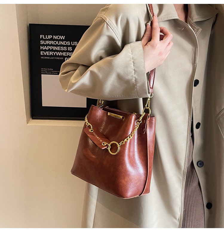 여성 가방 2023 새로운 스타일의 메신저 가방 가을과 겨울 버킷 가방 높은 감각 여성 올 매치 틈새 디자인 복고풍 숄더백스토어 가기