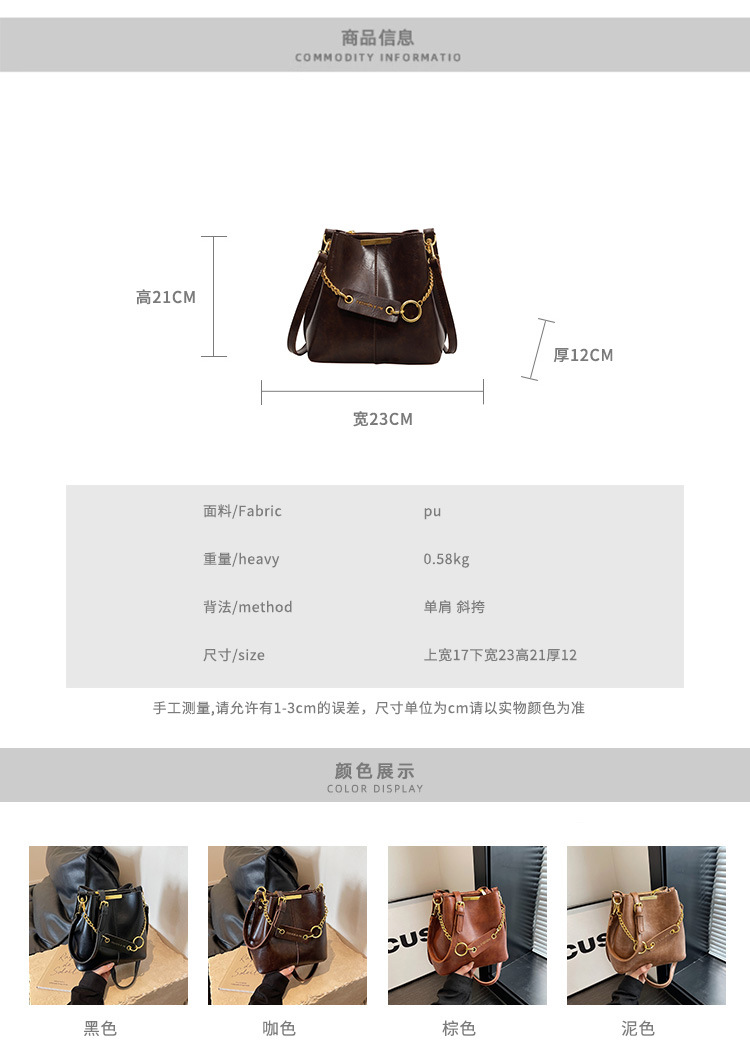 여성 가방 2023 새로운 스타일의 메신저 가방 가을과 겨울 버킷 가방 높은 감각 여성 올 매치 틈새 디자인 복고풍 숄더백