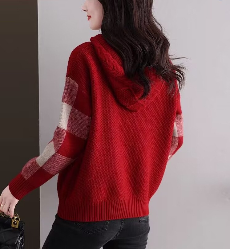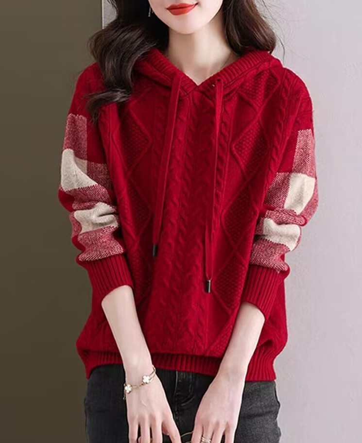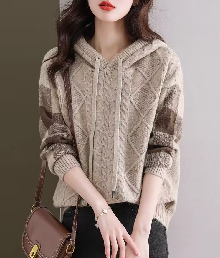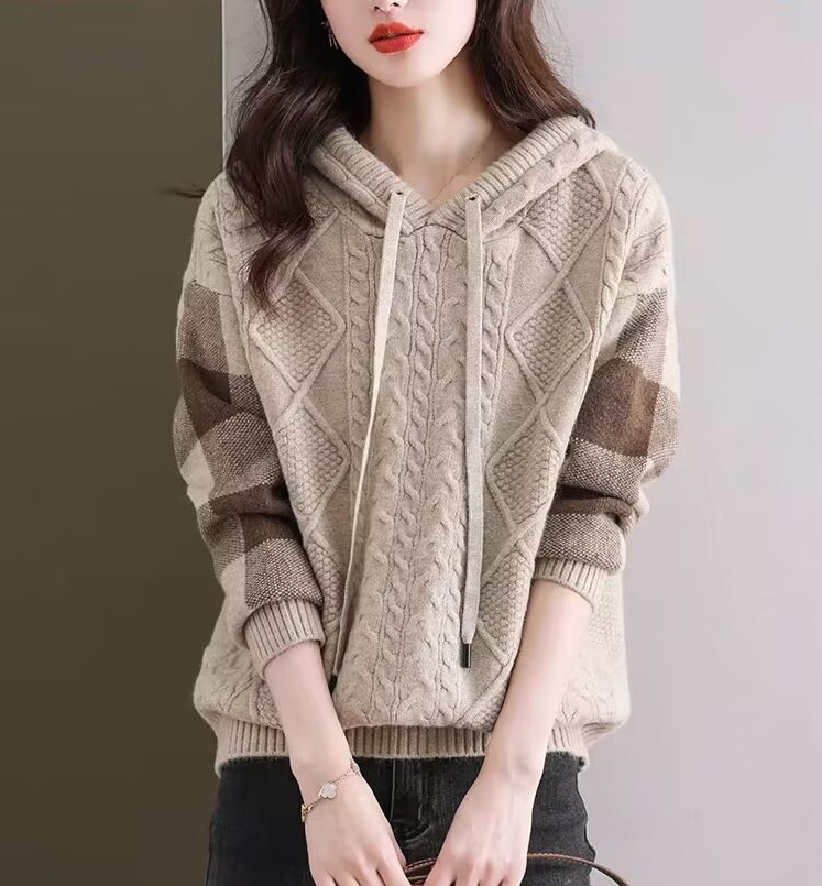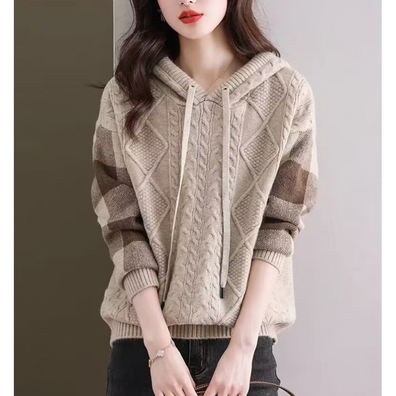여성용 스웨터 2026년 가을 겨울 신상품, 레이지 스타일 캐주얼 후드 루즈핏 니트 긴팔 상의 이너웨어스토어 가기