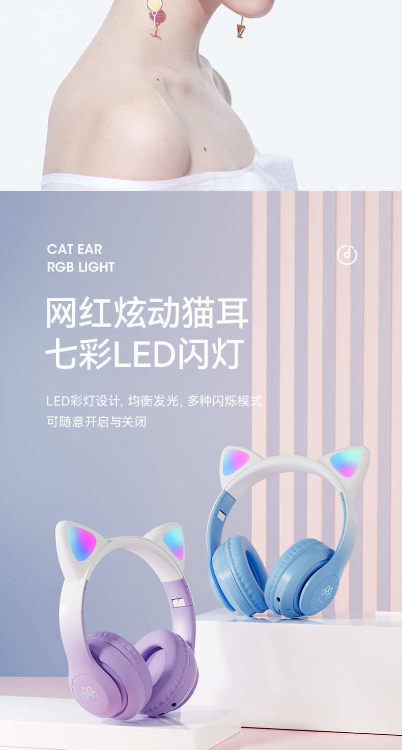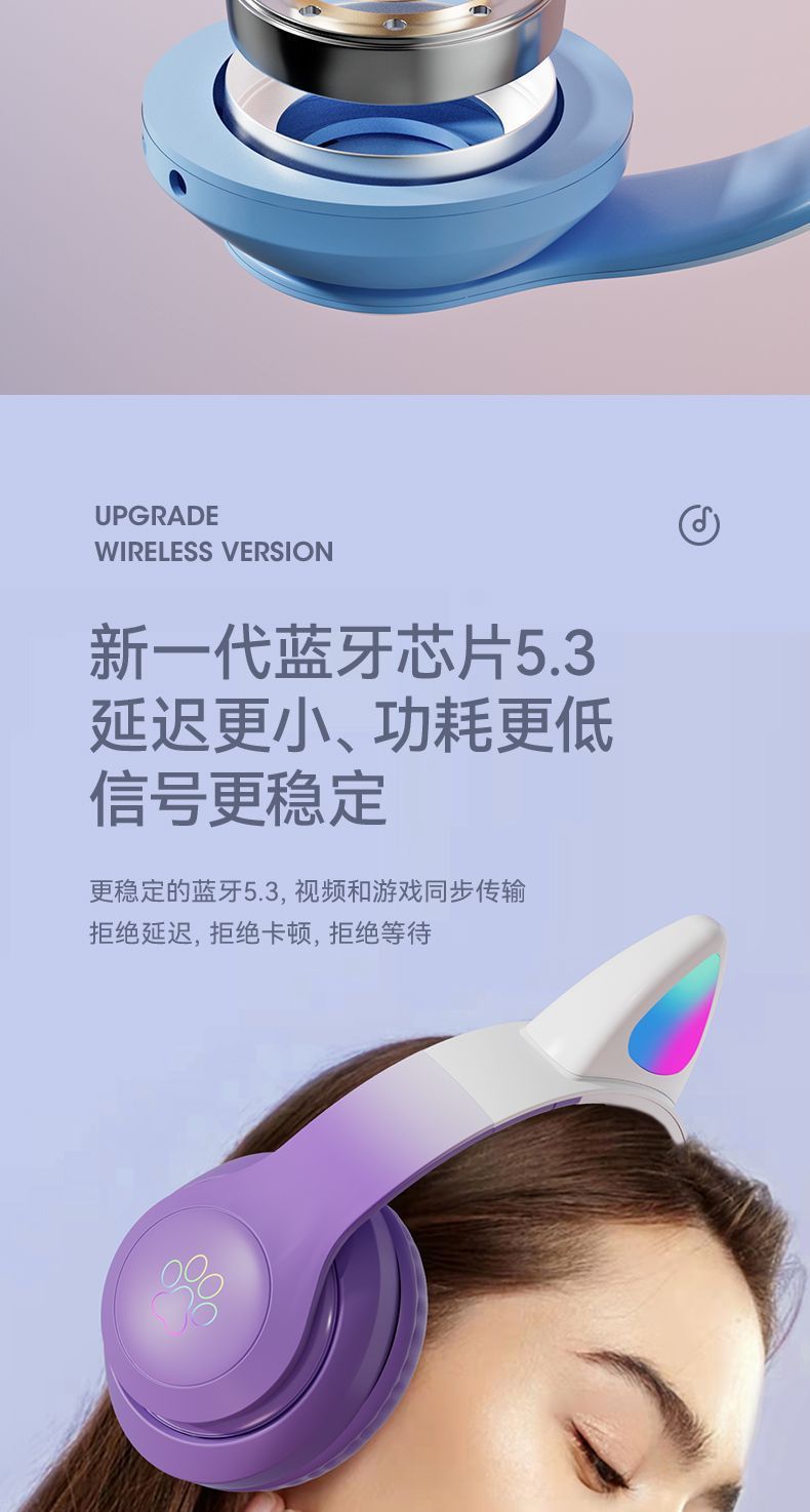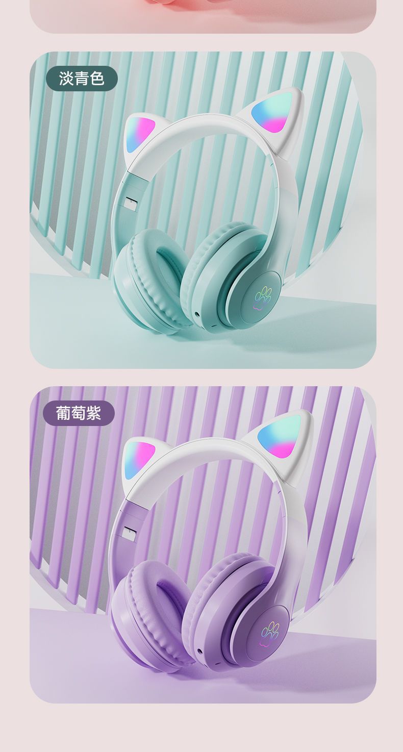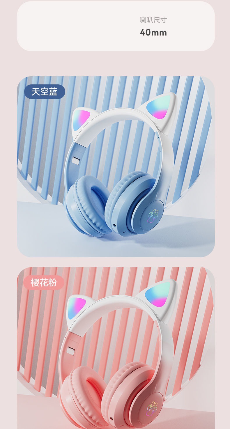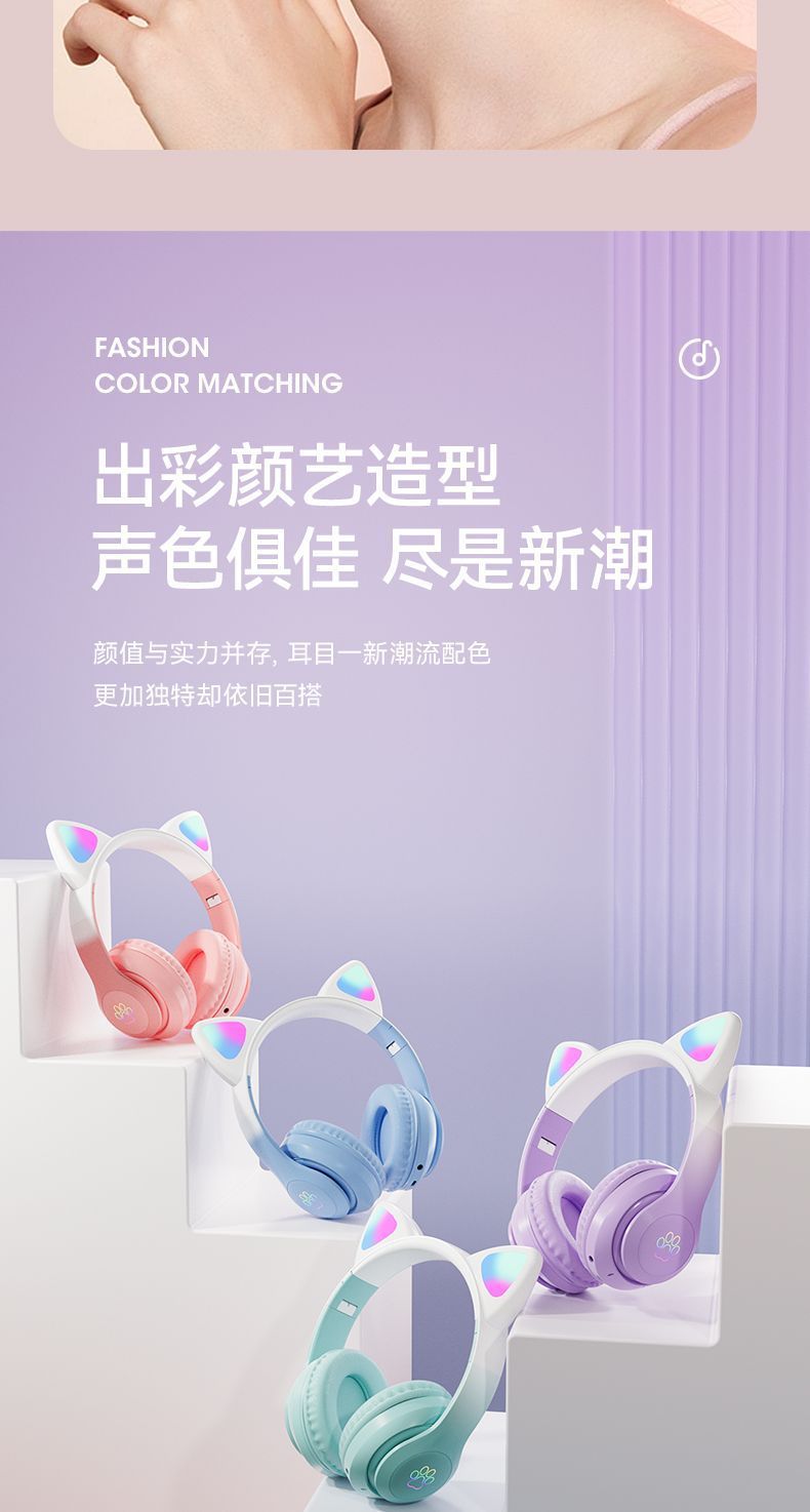 새로운 인기있는 발광 헤드셋 블루투스 헤드셋 더블 피스 그라디언트 컬러 고양이 귀 대외 무역 제조업체 하이 엔드 무선 헤드셋스토어 가기