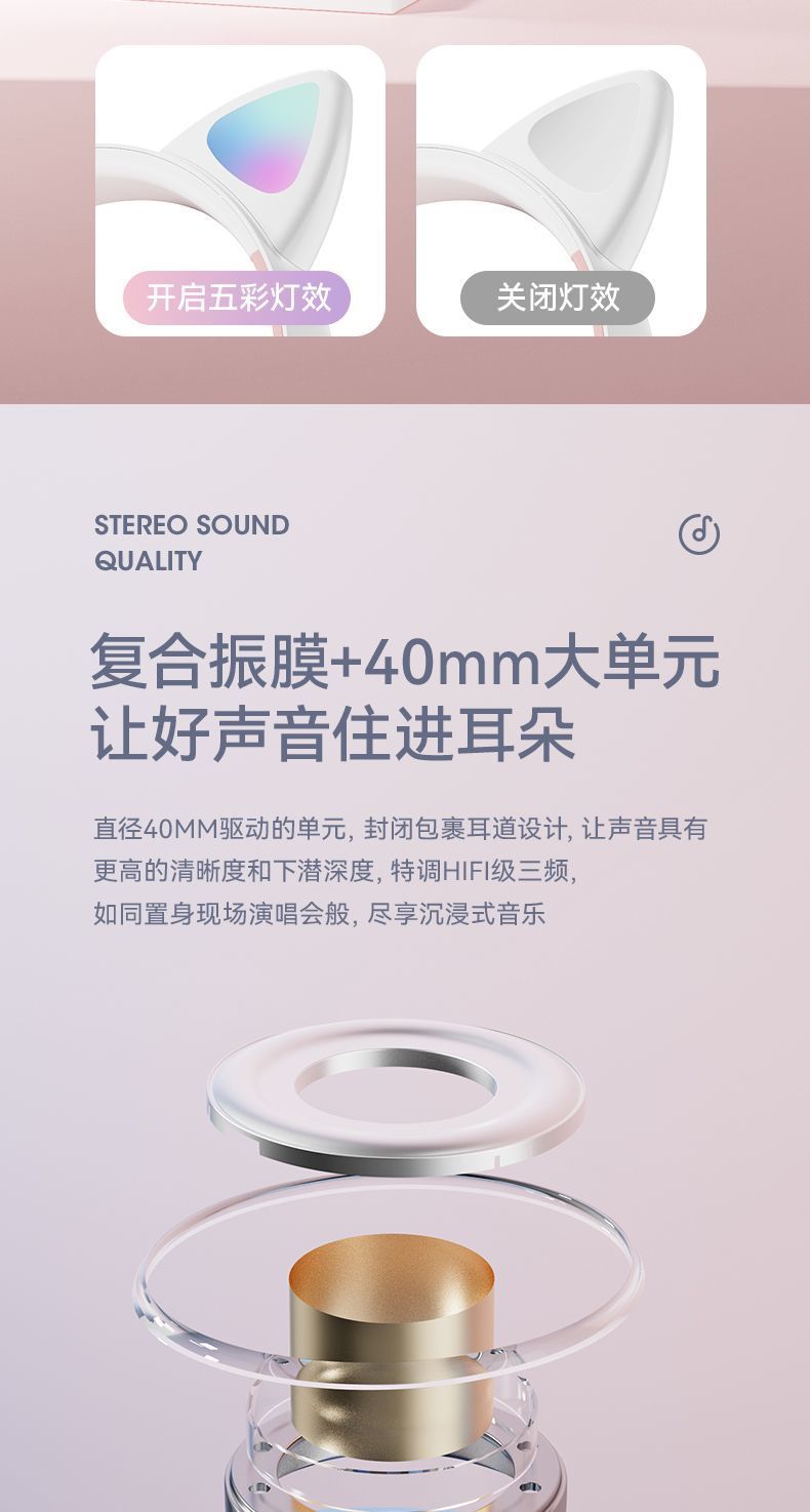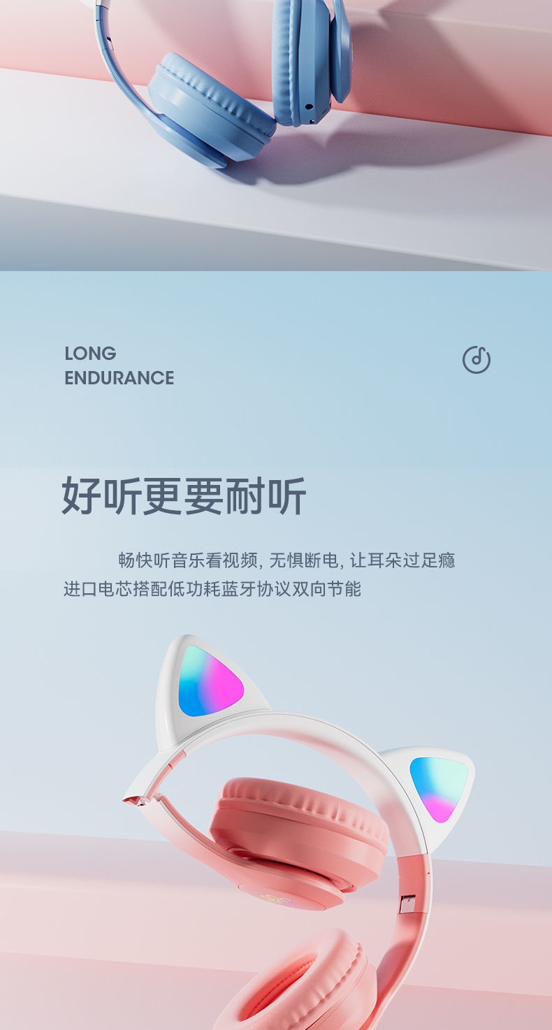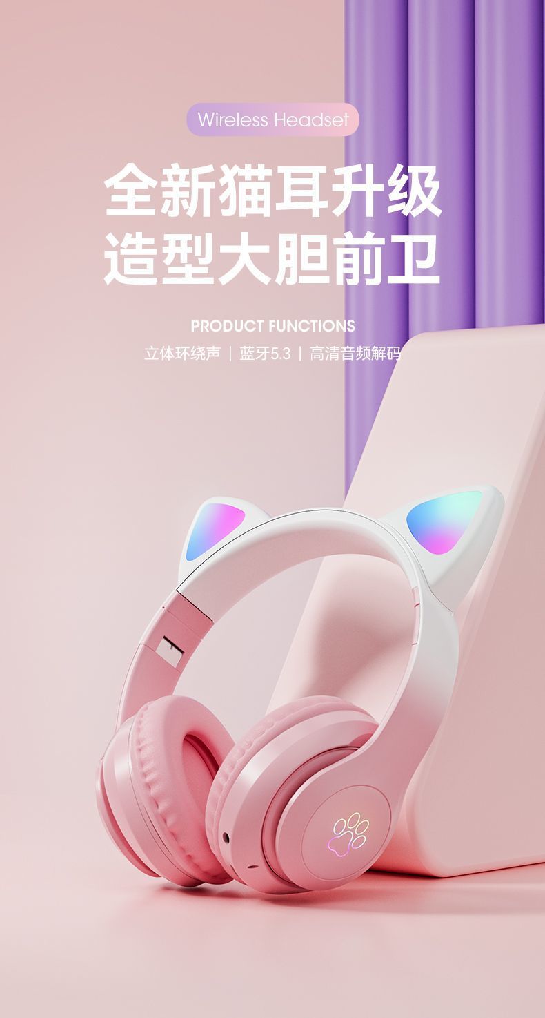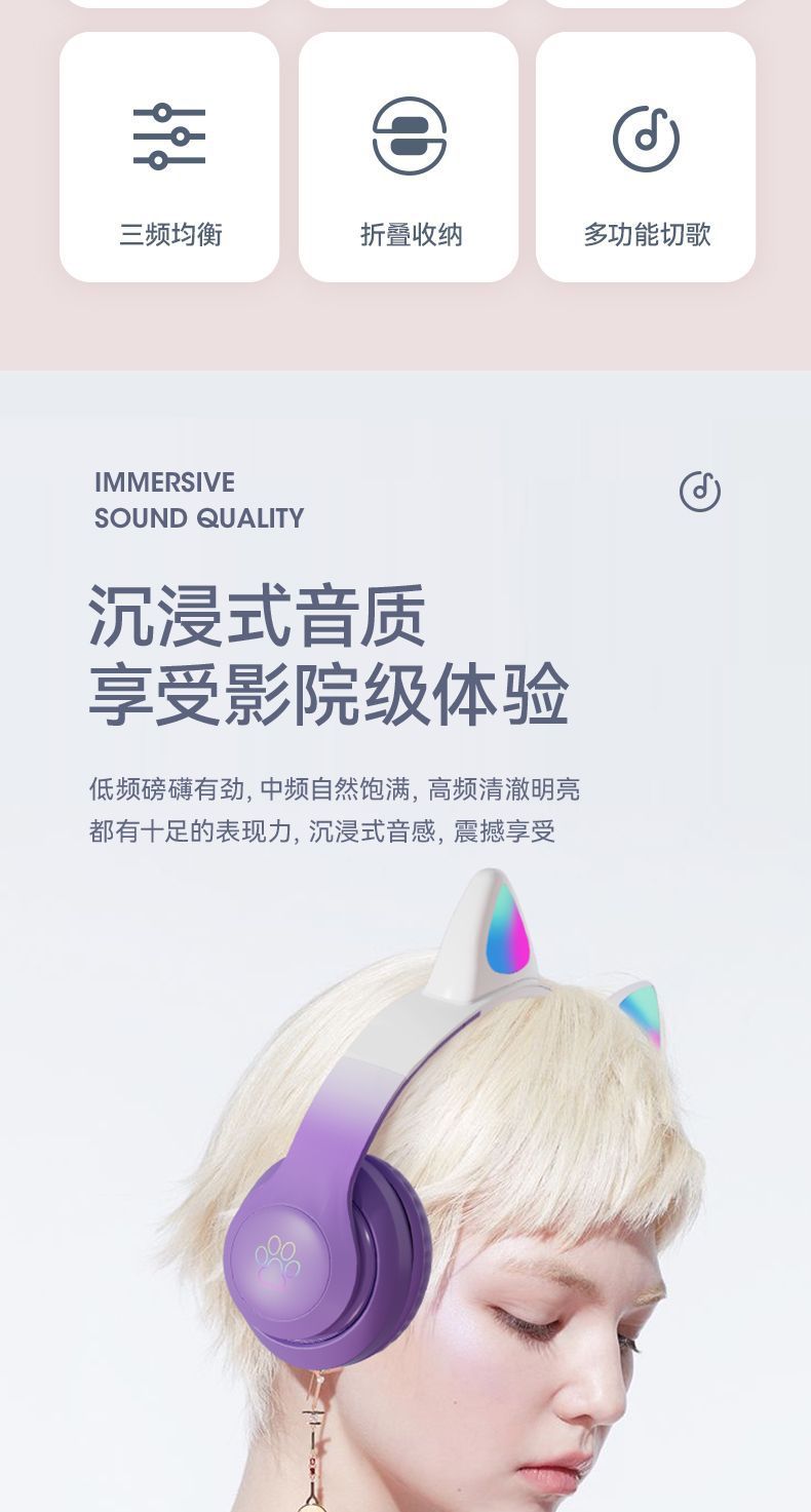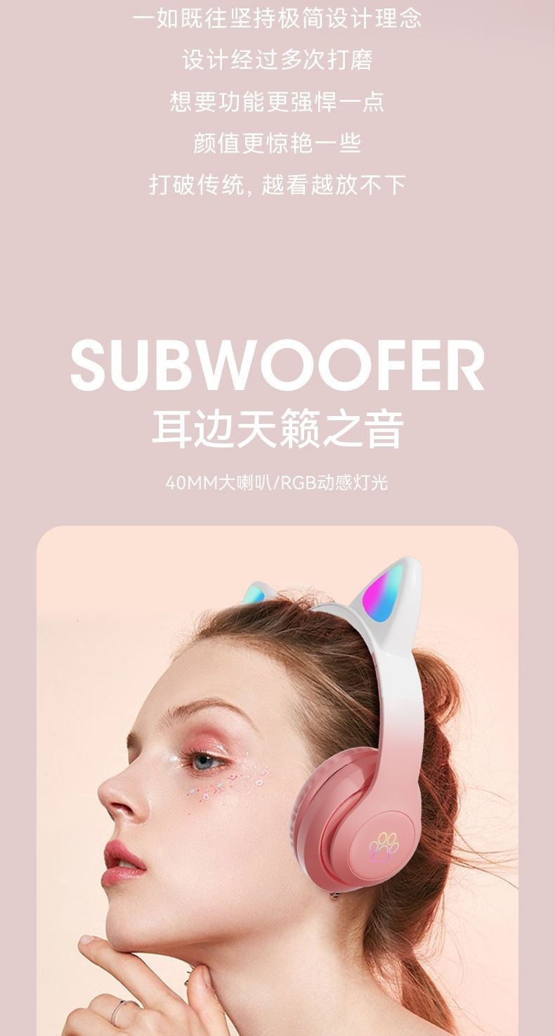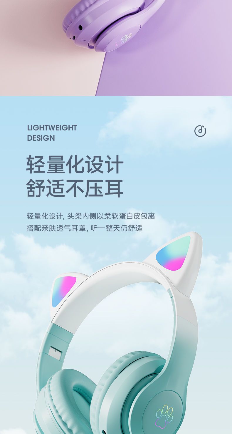 새로운 인기있는 발광 헤드셋 블루투스 헤드셋 더블 피스 그라디언트 컬러 고양이 귀 대외 무역 제조업체 하이 엔드 무선 헤드셋스토어 가기