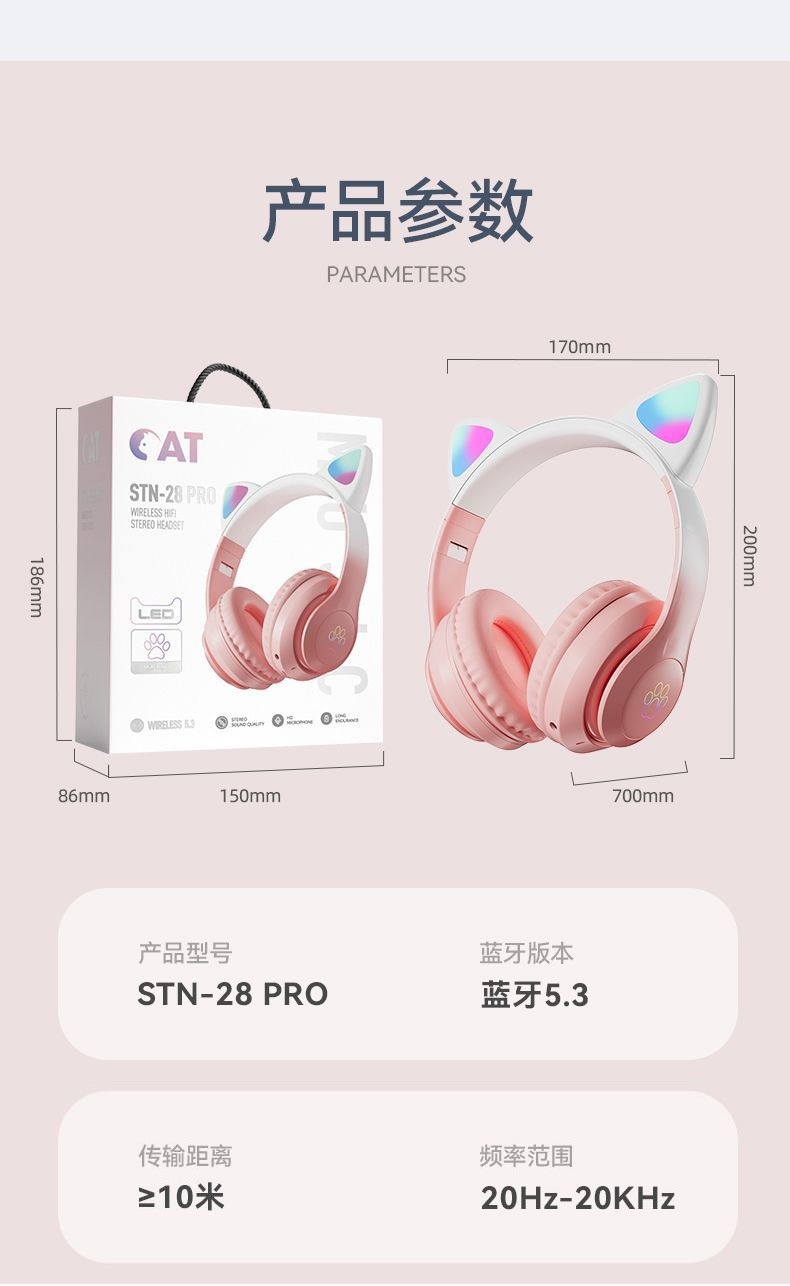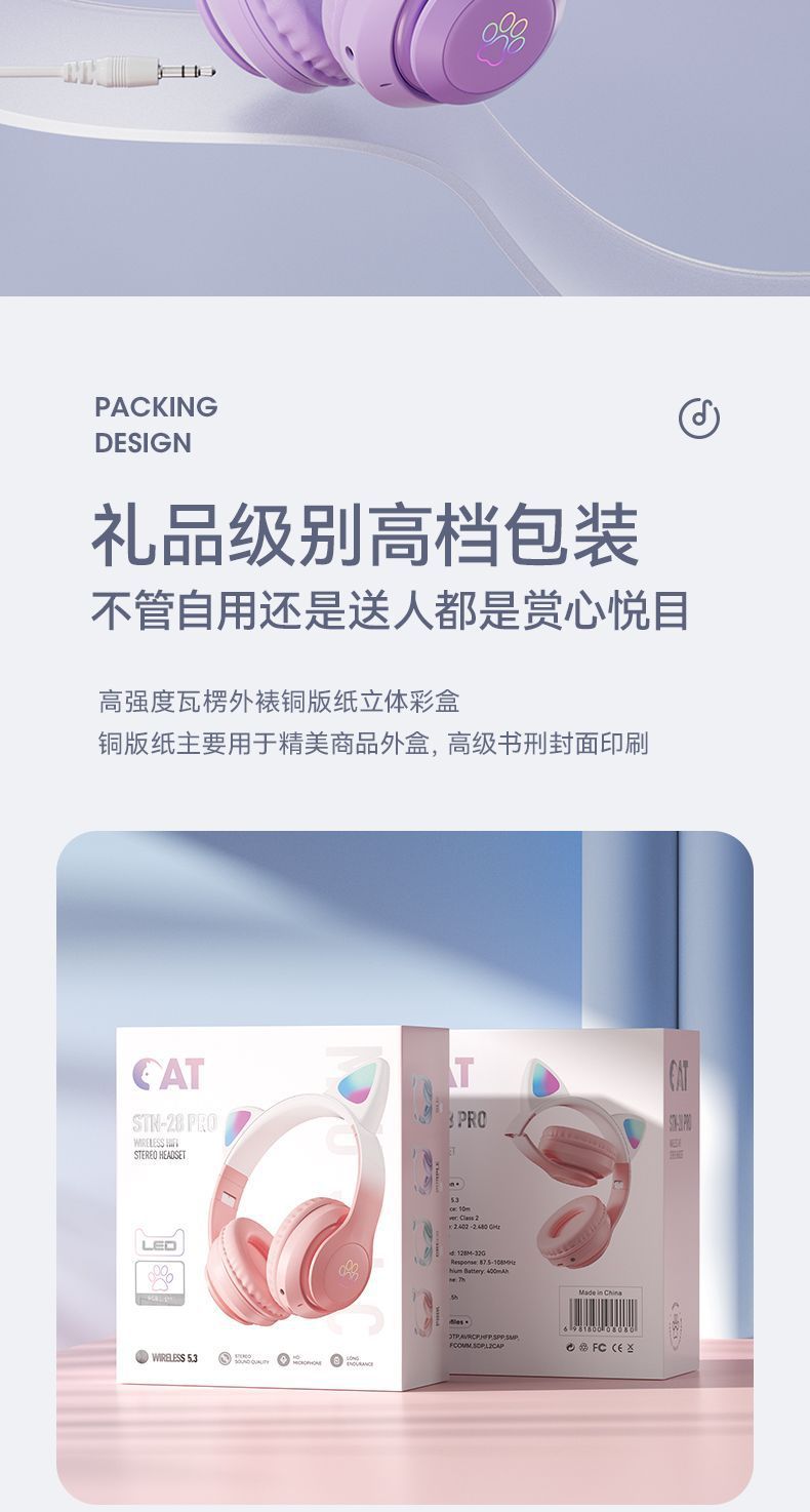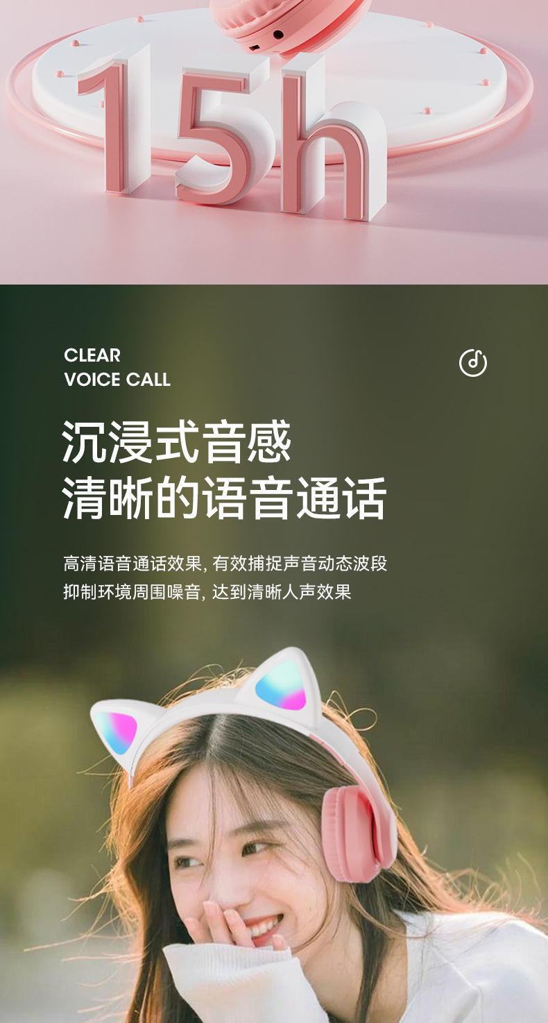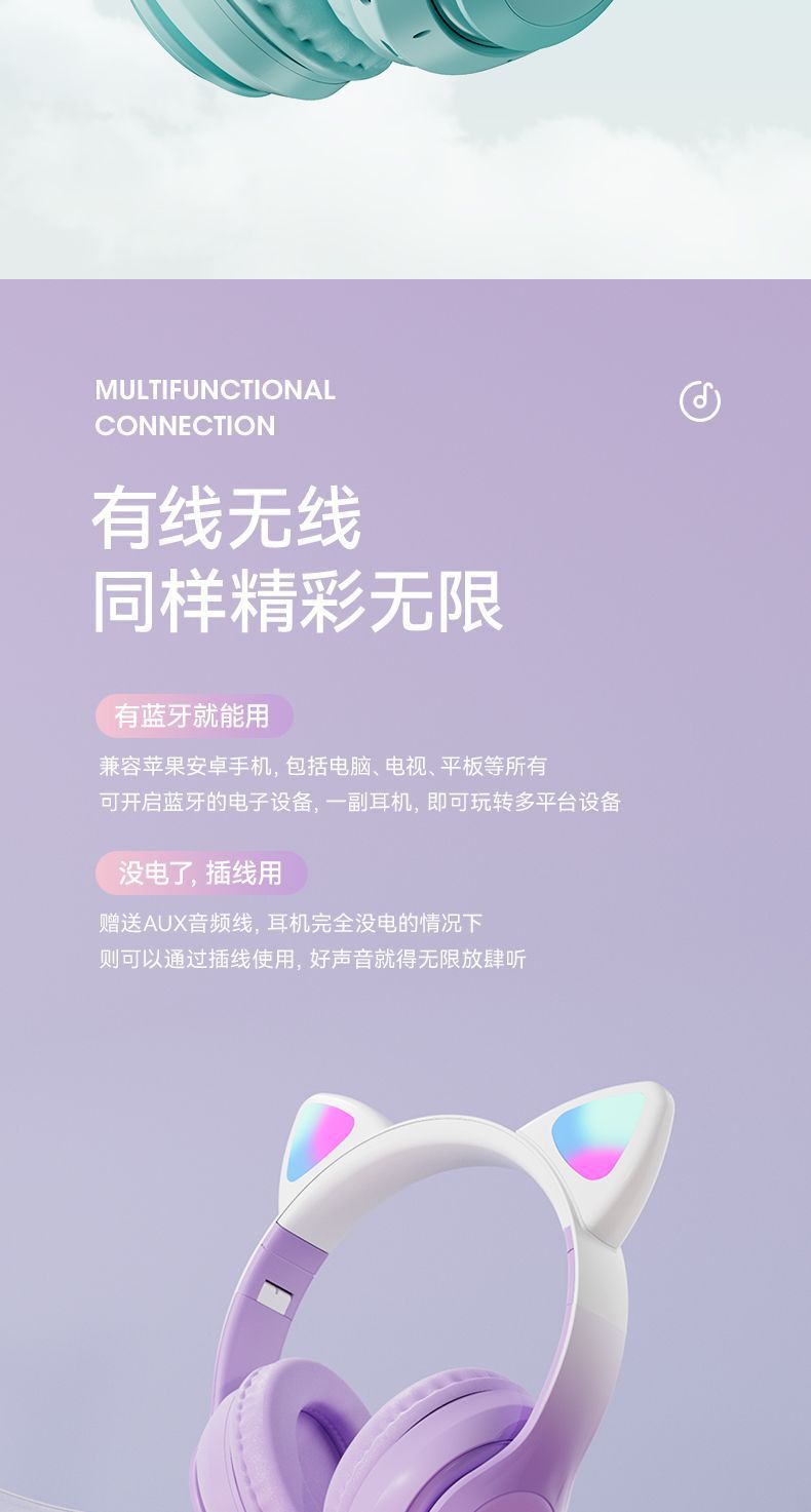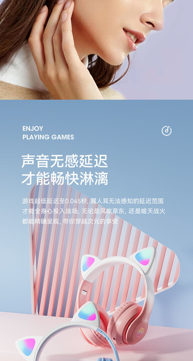 새로운 인기있는 발광 헤드셋 블루투스 헤드셋 더블 피스 그라디언트 컬러 고양이 귀 대외 무역 제조업체 하이 엔드 무선 헤드셋스토어 가기