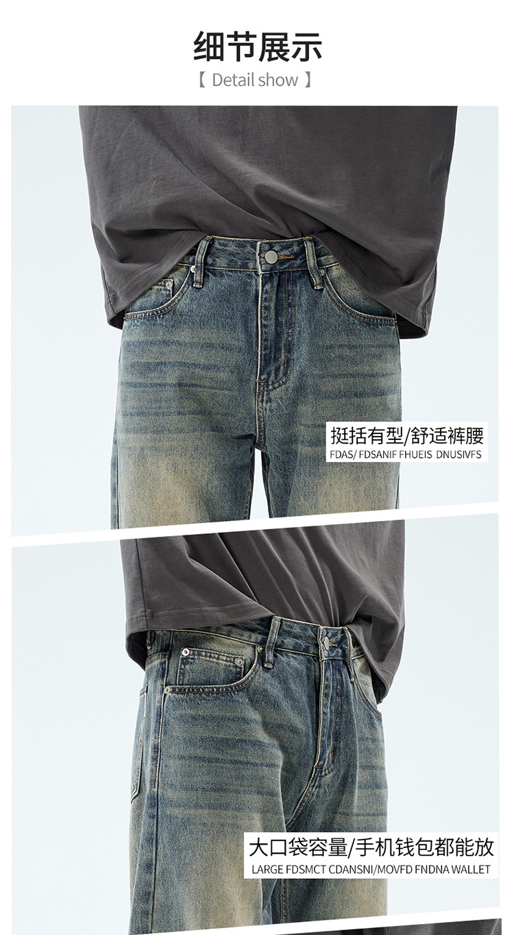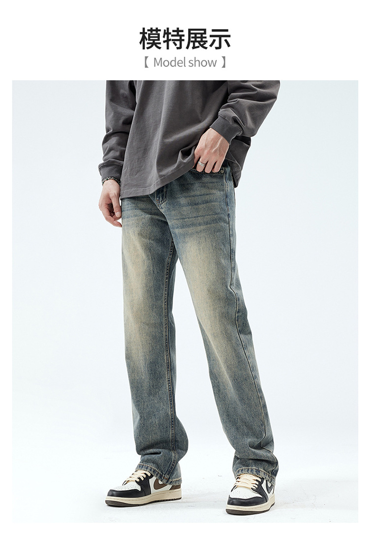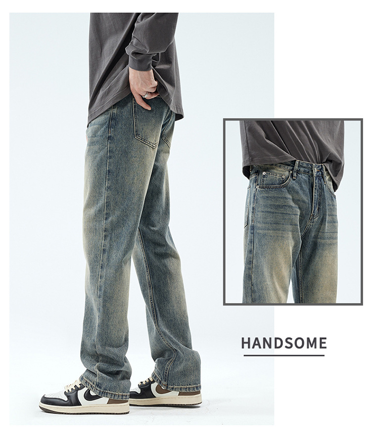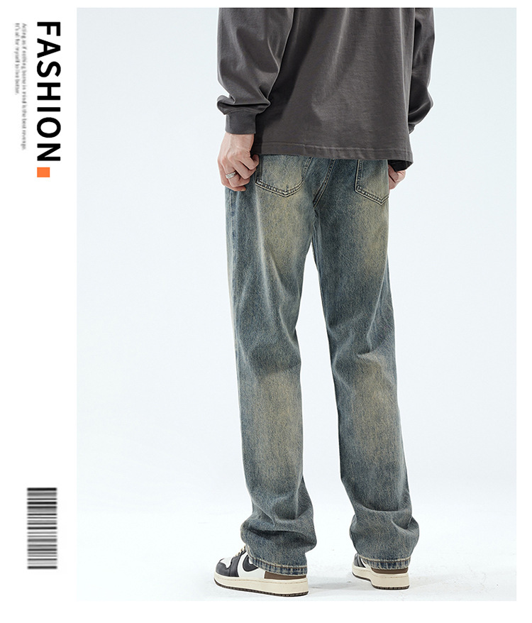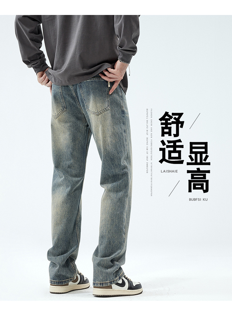 패션 청소년 아메리칸 스타일 하이 스트리트 청바지 남성 # 슬림 핏 슬리밍 디자인 센스 스트레이트 팬츠 하이 센스 남성복스토어 가기