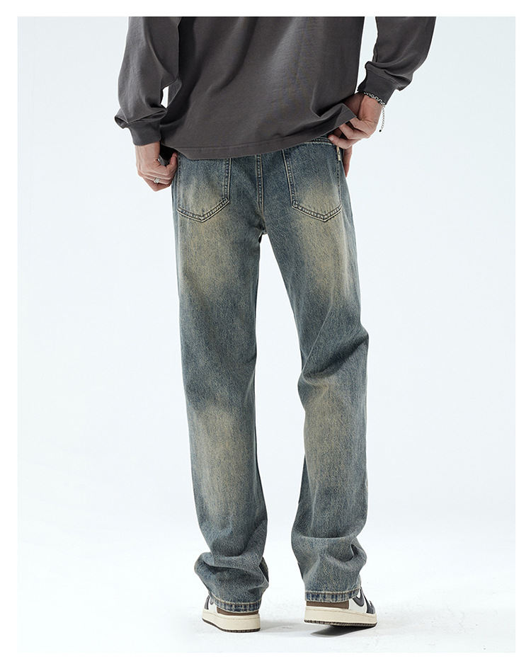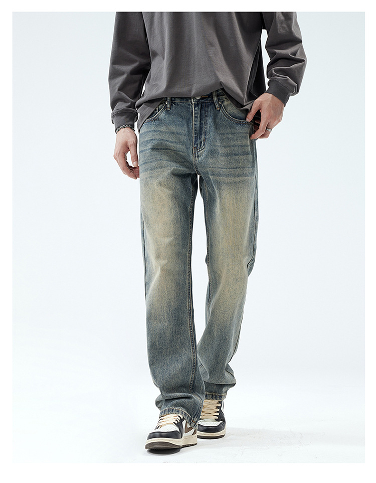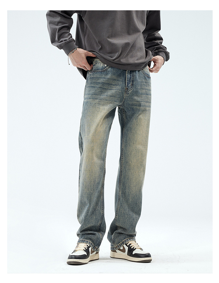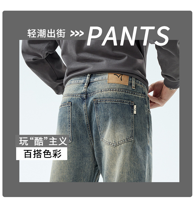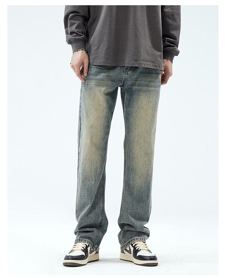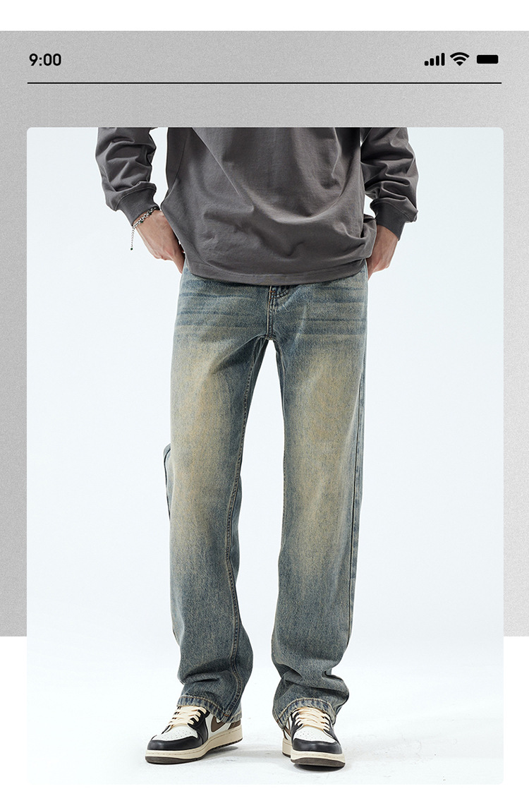 패션 청소년 아메리칸 스타일 하이 스트리트 청바지 남성 # 슬림 핏 슬리밍 디자인 센스 스트레이트 팬츠 하이 센스 남성복스토어 가기