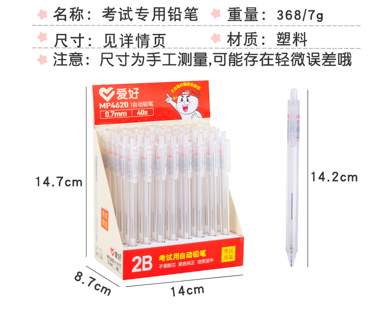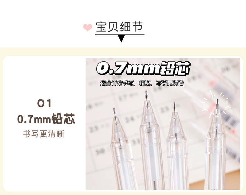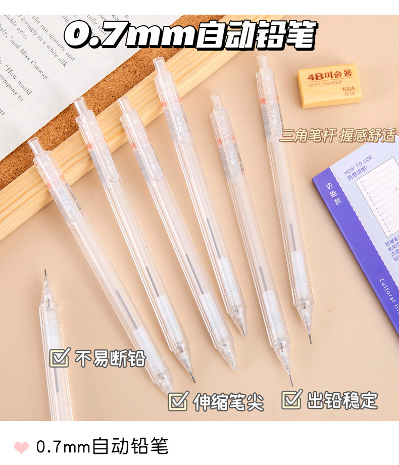 취미 2B 자동 연필 투명 막대 0.5/0.7 이동식 연필 초등학교 학생 문구 시험 특별 연필스토어 가기