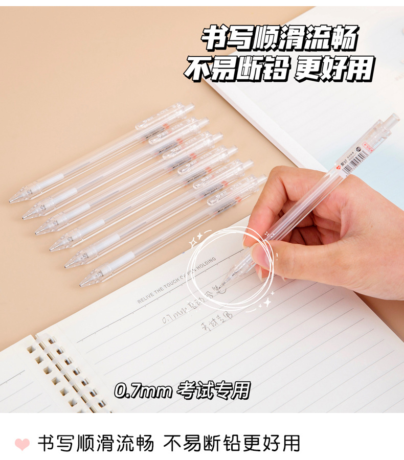 취미 2B 자동 연필 투명 막대 0.5/0.7 이동식 연필 초등학교 학생 문구 시험 특별 연필