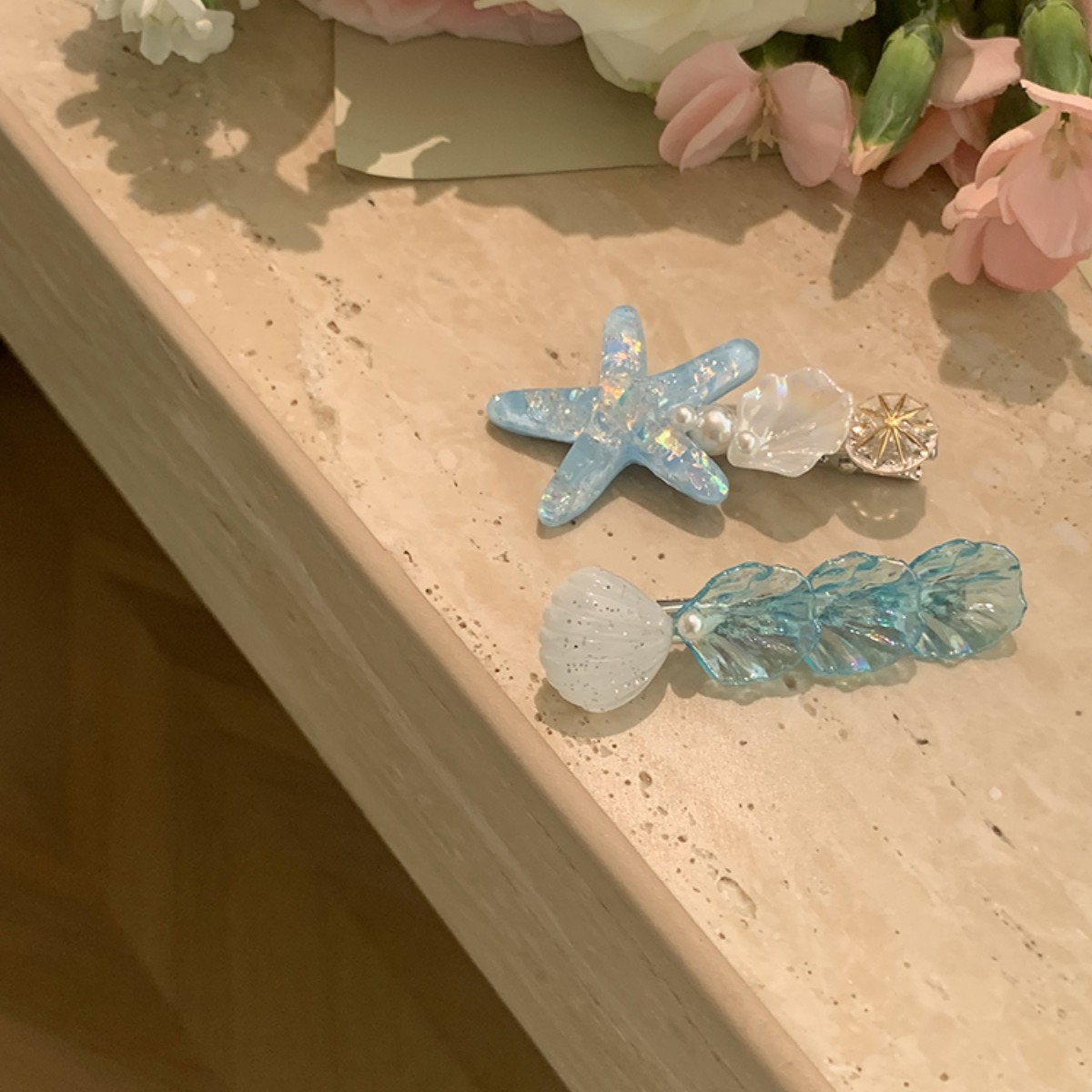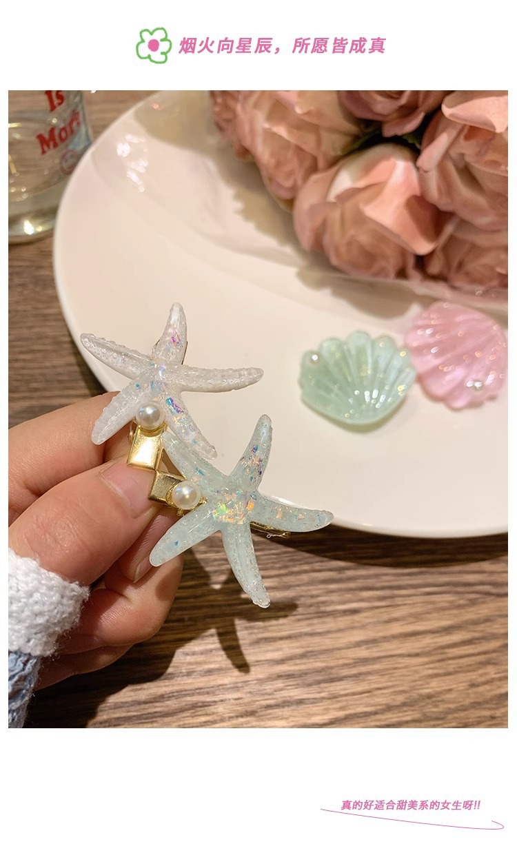 민트 그린 불가사리 머리핀, 다용도 조개 머리핀, 귀여운 머리핀, 헤어 액세서리, 여름 고급 여성용 사이드 클립스토어 가기