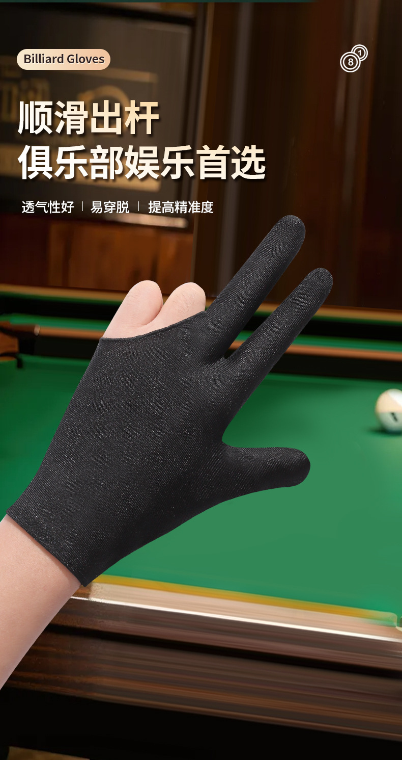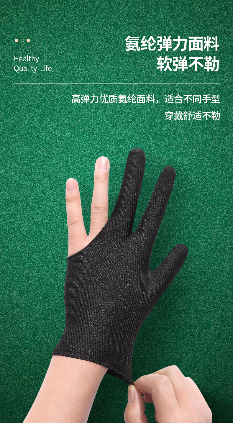 볼룸과 볼홀을위한 당구 장갑 높은 탄성 얇은 편안한 통기성 3 손가락 장갑