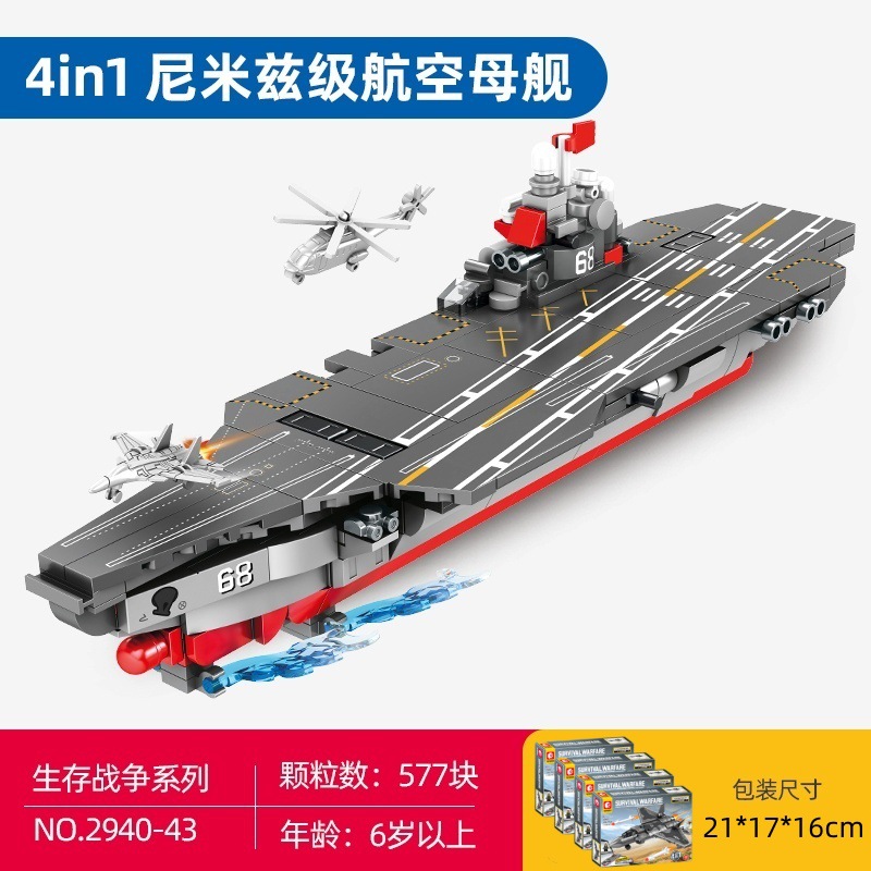 센바오 군 4-in-1 니미츠급 항공 모함 조립 모델 소년 조립 빌딩 블록 조립 장난감 선물