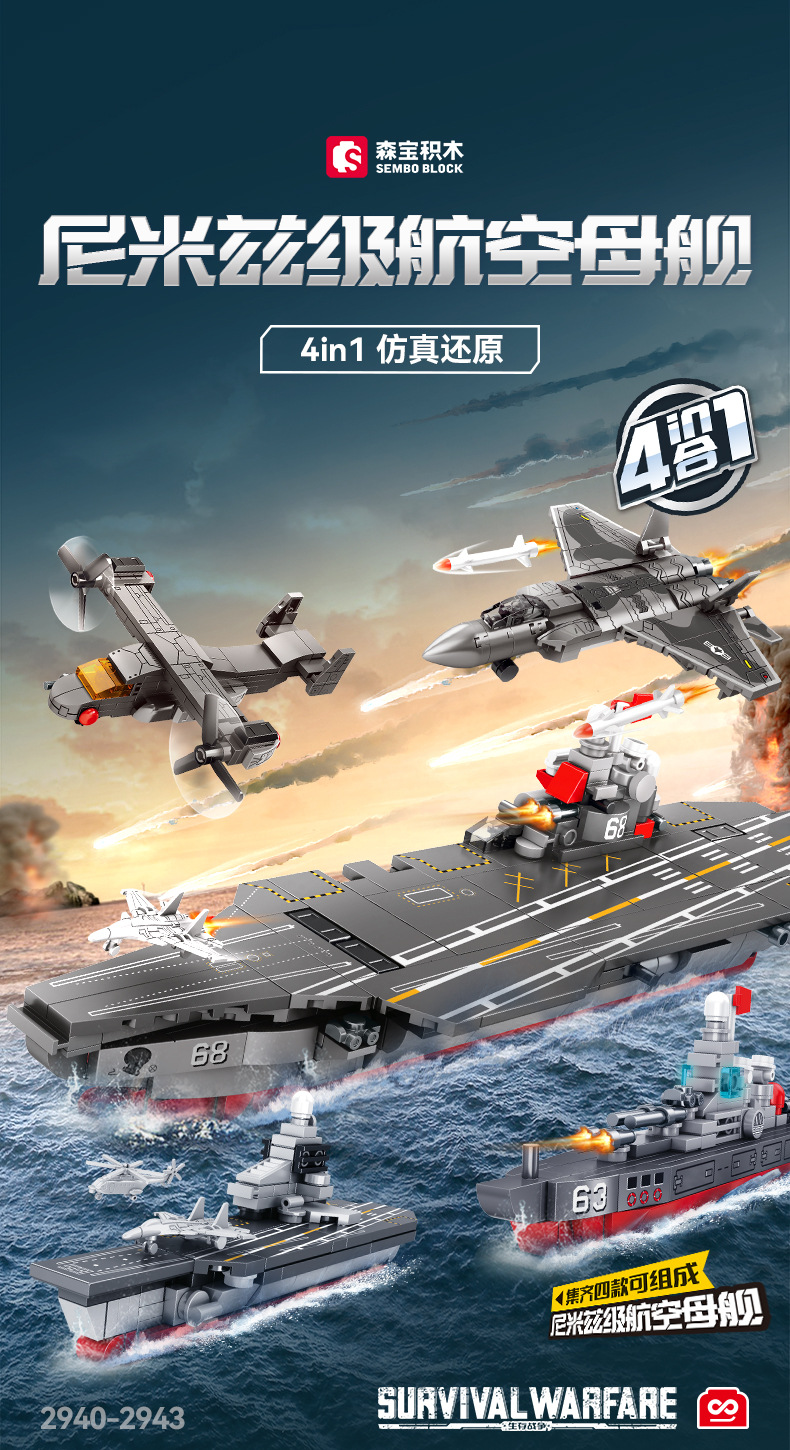 센바오 군 4-in-1 니미츠급 항공 모함 조립 모델 소년 조립 빌딩 블록 조립 장난감 선물스토어 가기