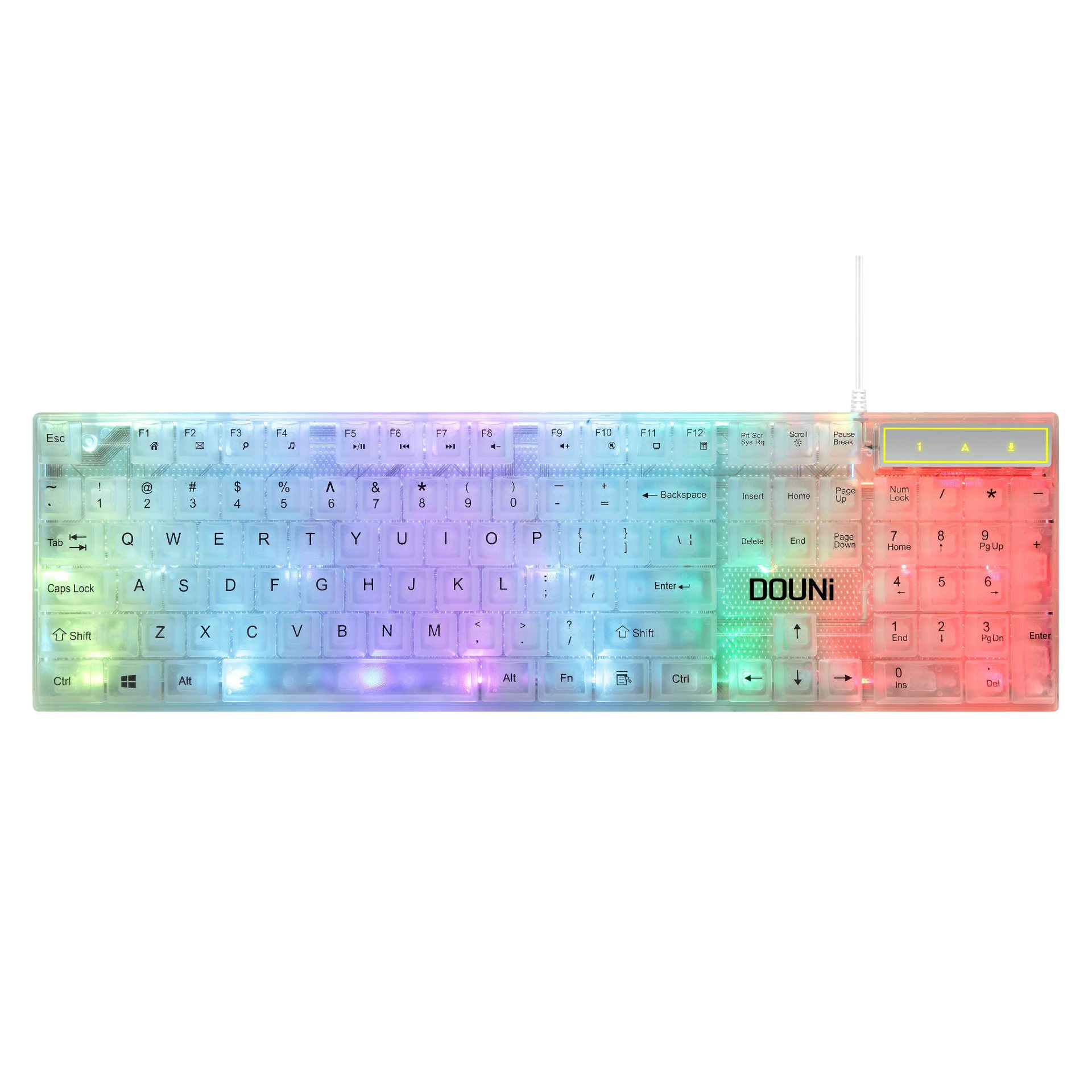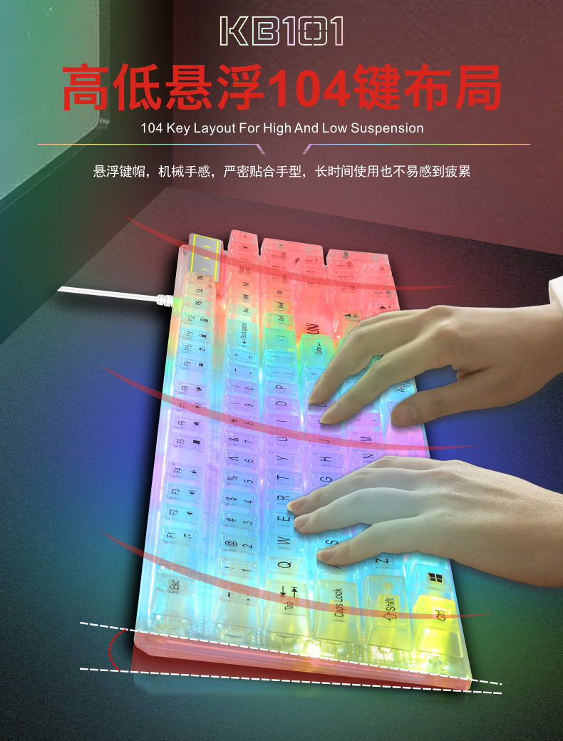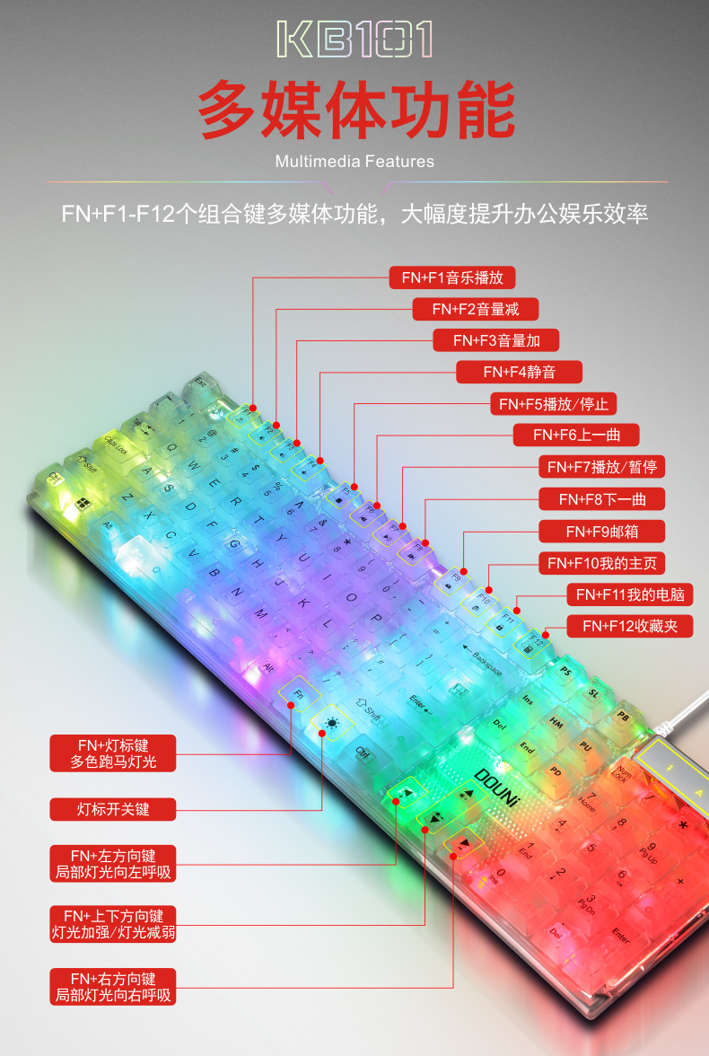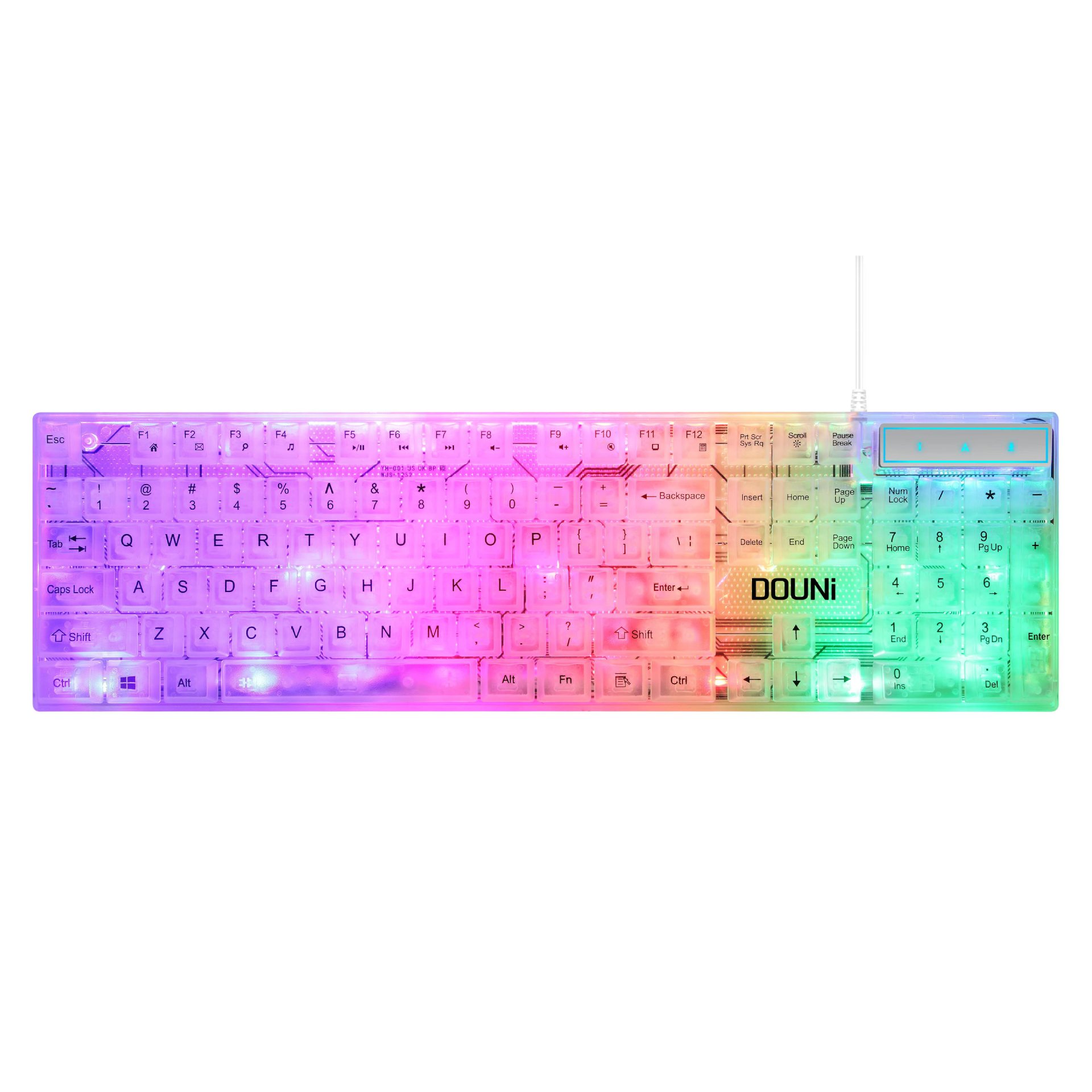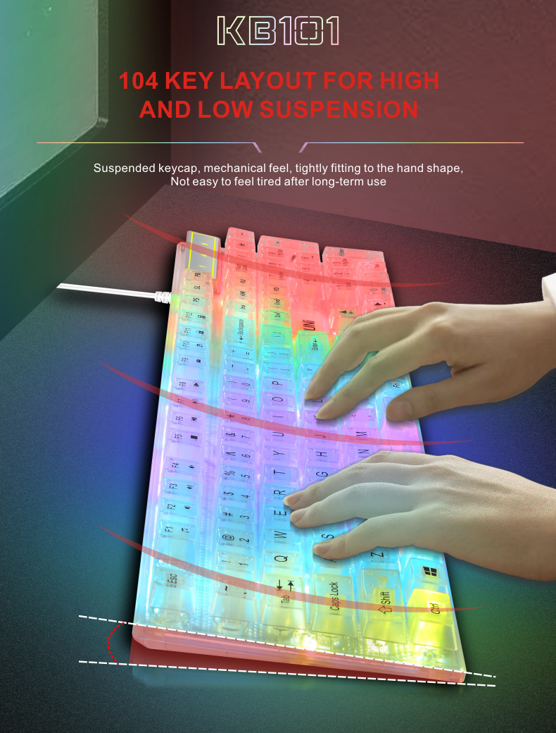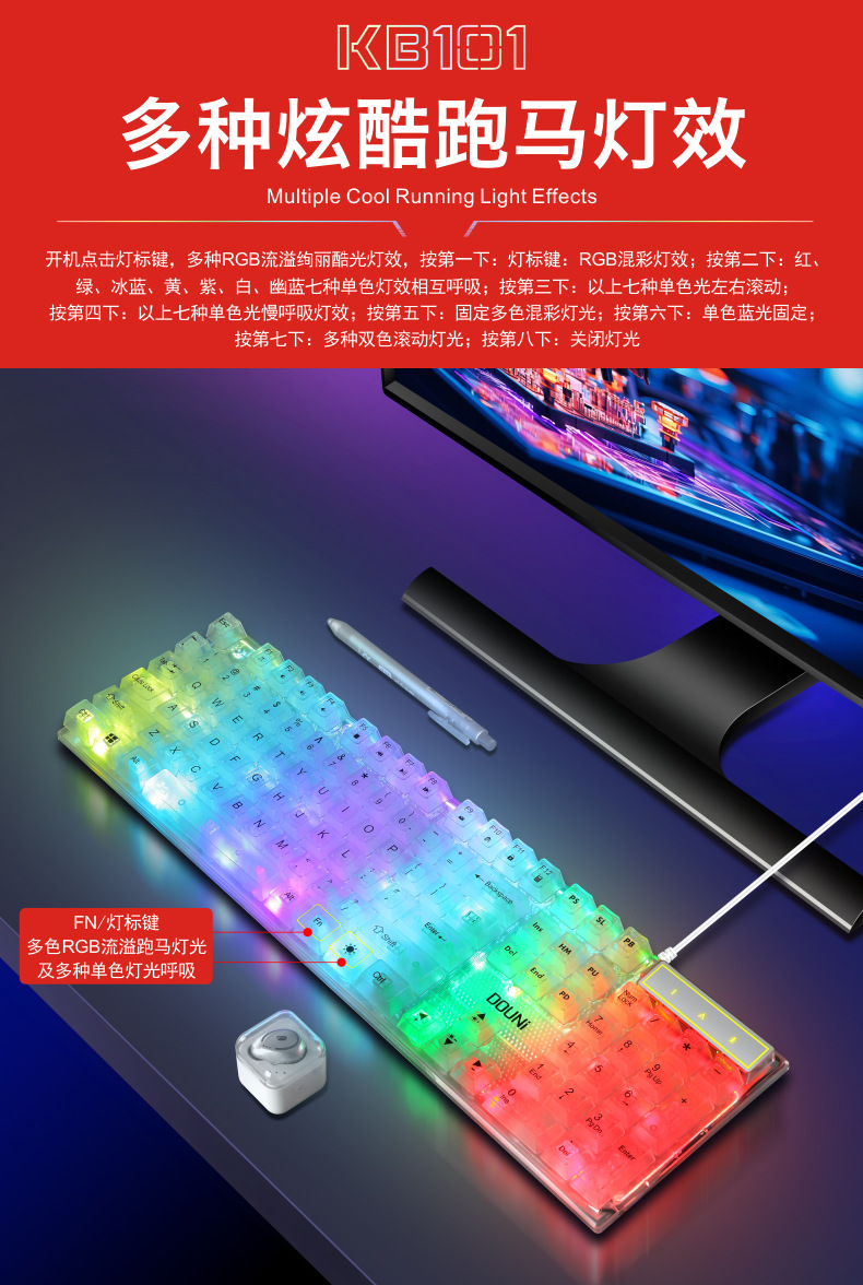 두니 KB101 7색 발광 RGB 유선 투명 키보드, 기계식 느낌의 컴퓨터 게임용, 해외 도매