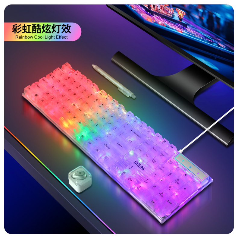 두니 KB101 7색 발광 RGB 유선 투명 키보드, 기계식 느낌의 컴퓨터 게임용, 해외 도매스토어 가기