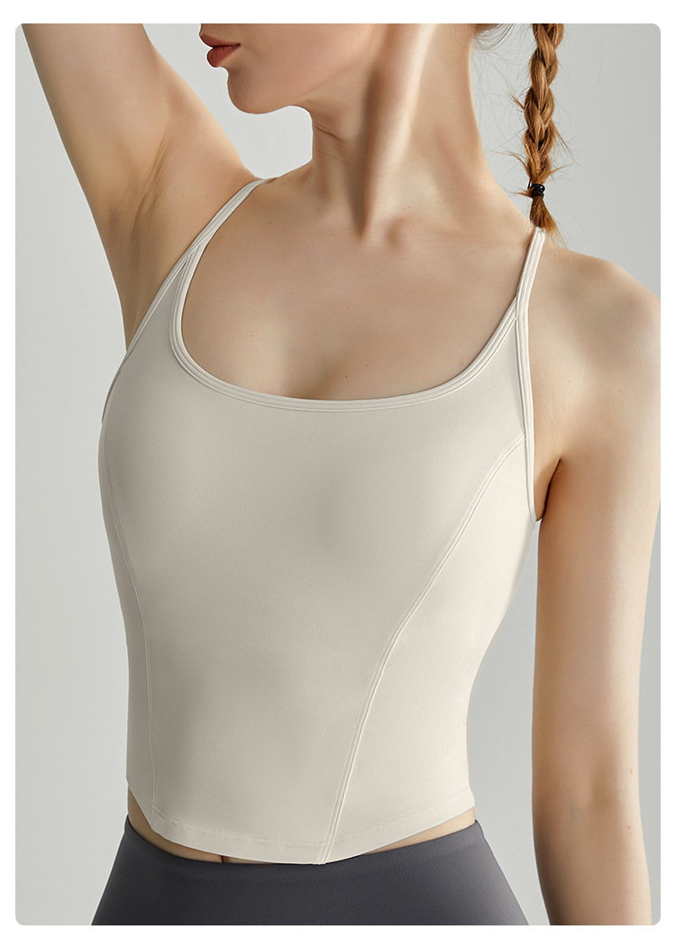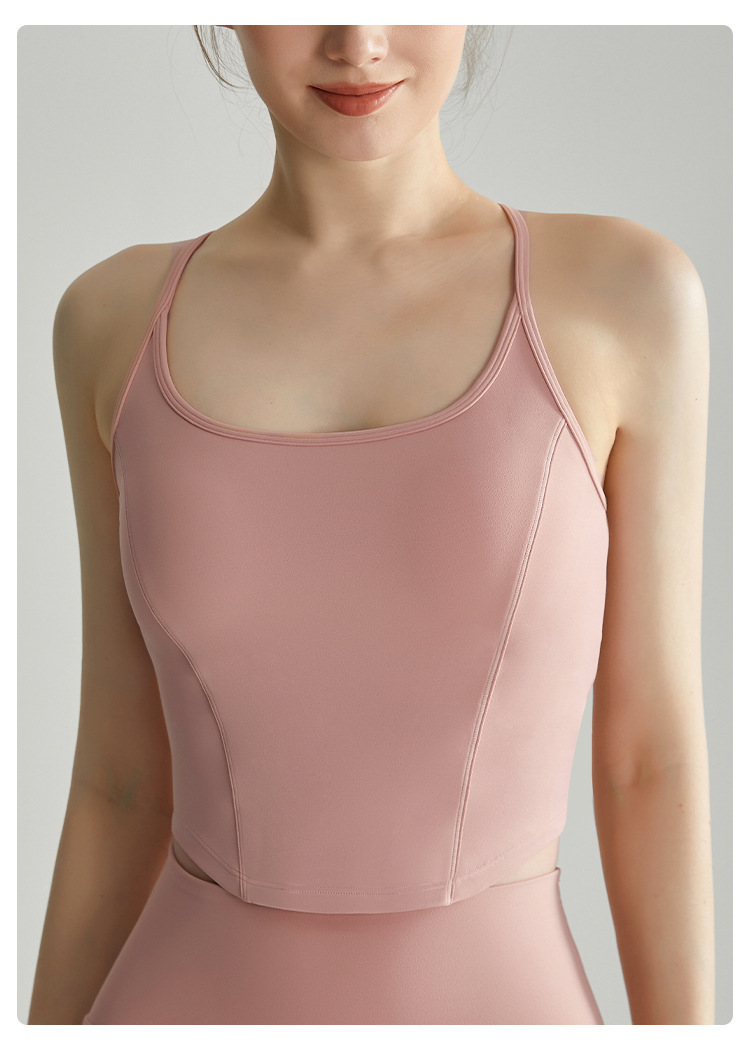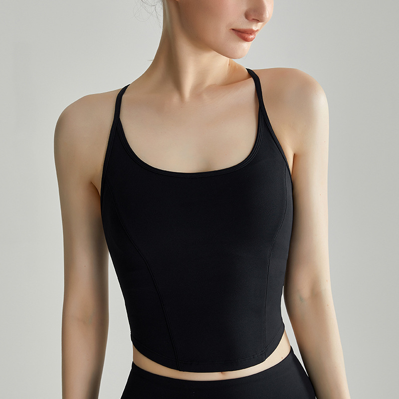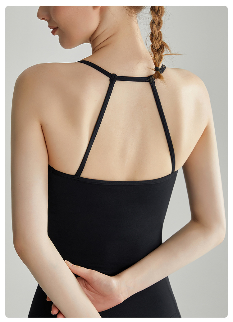 Chuandun 스파게티 스트랩 스포츠 브라 여성 여름 웨어러블 올인원 고정 컵 충격 방지 푸시 업 요가 캐미솔