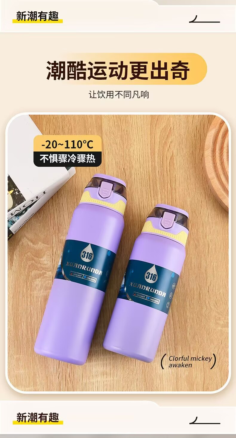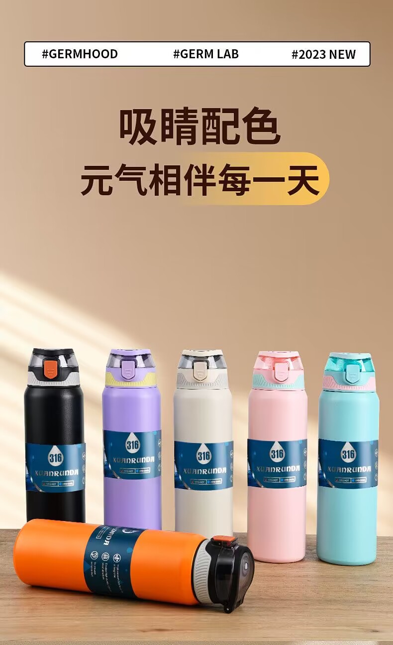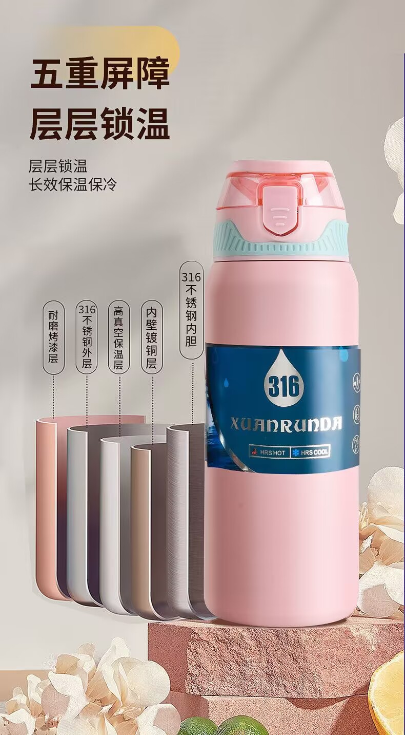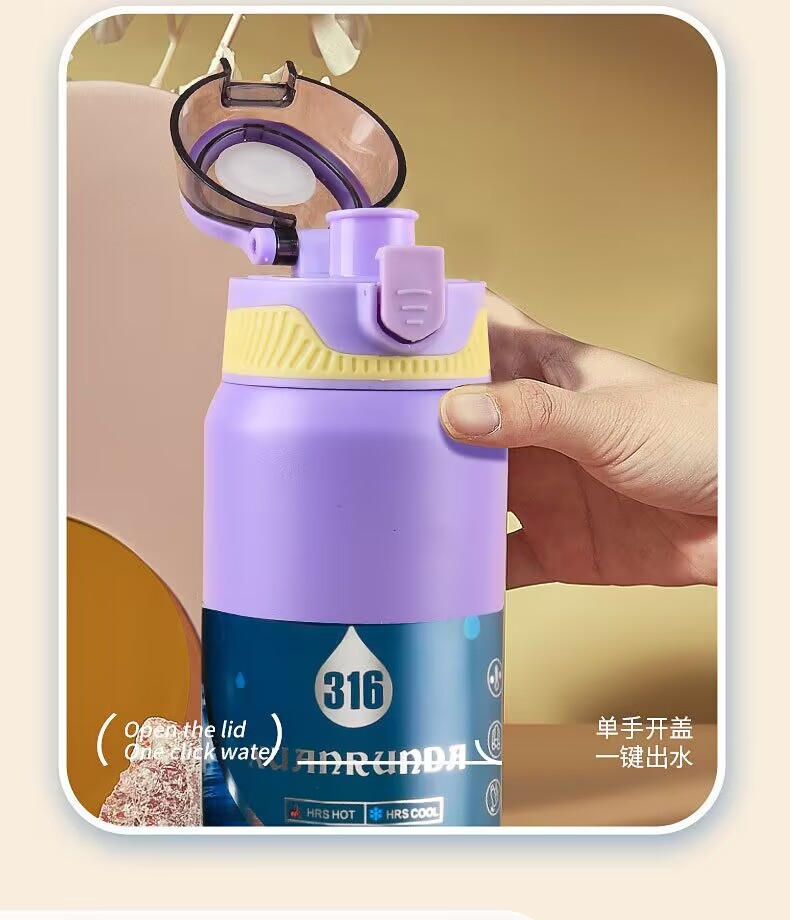 국경 이중 음료 바운스 컵 316 스테인레스 스틸 진공 보온병 컵 대용량 야외 등산 스포츠 주전자 도매