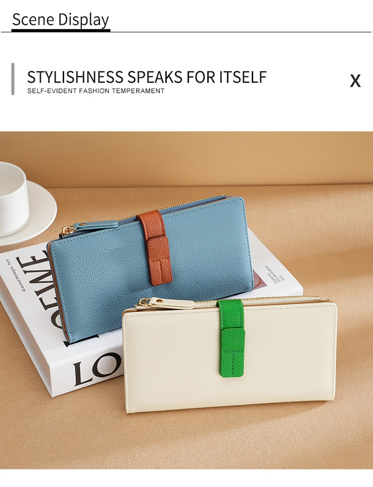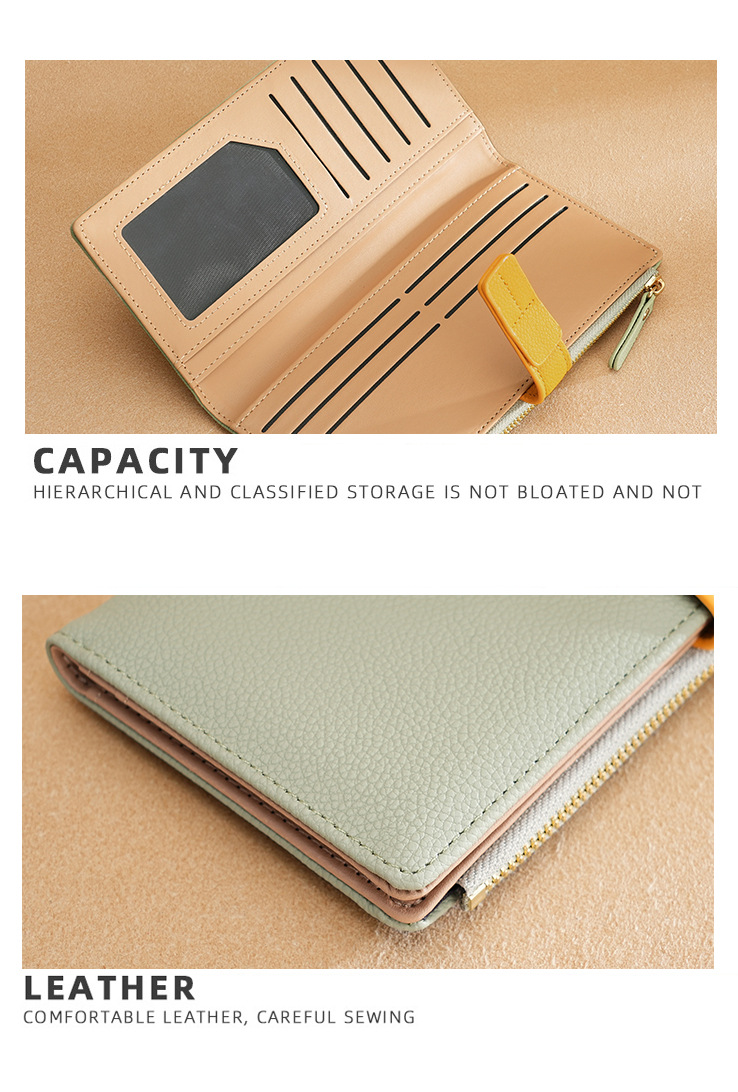 지갑 긴 여성 유럽과 미국의 drawstring 지갑 클러치 대비 컬러 패션 지퍼 지갑 카드 가방 다기능 가방스토어 가기