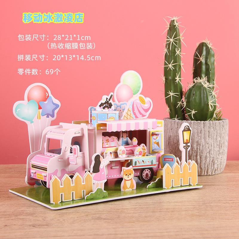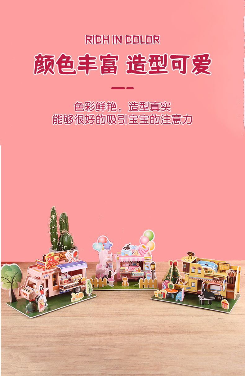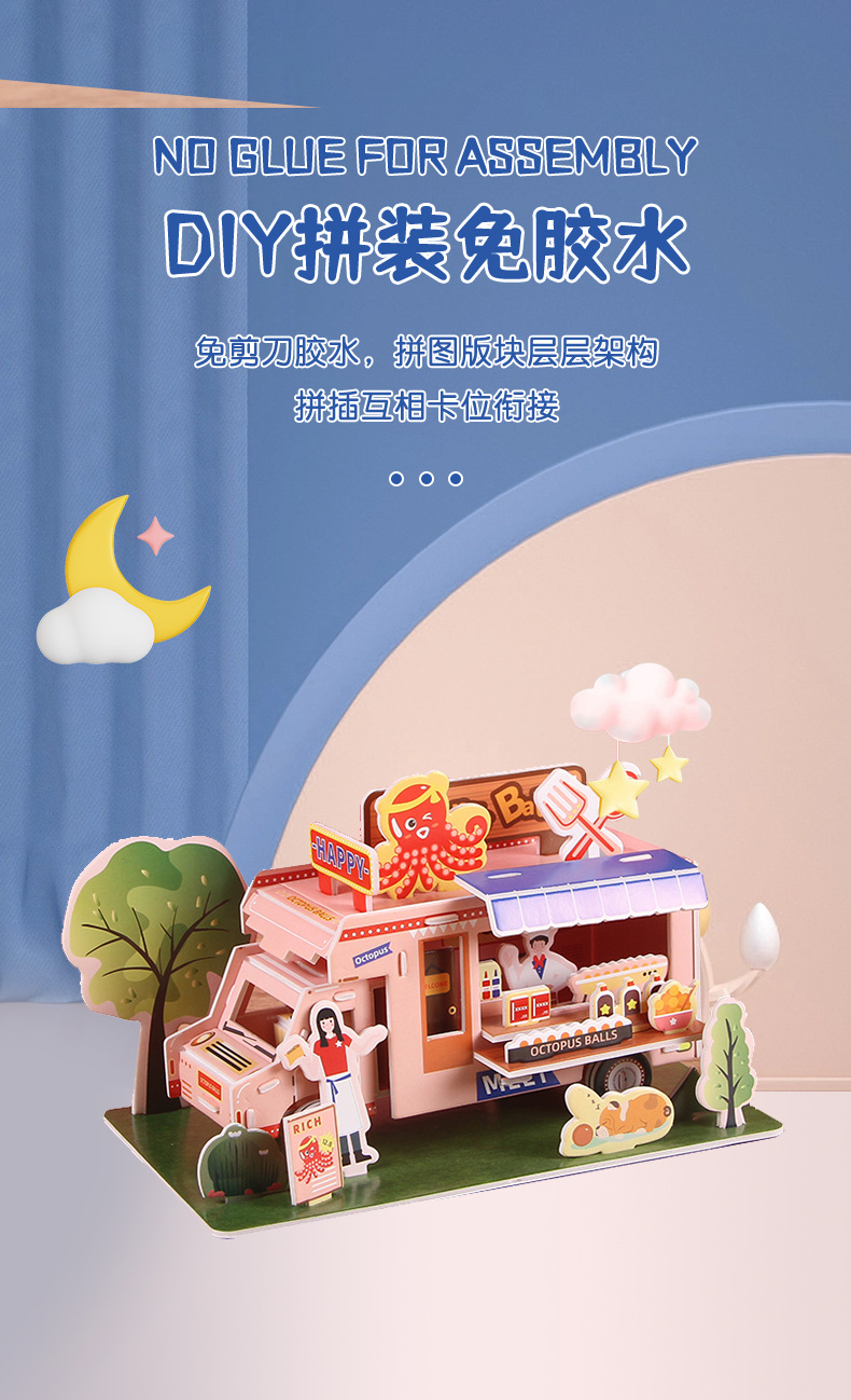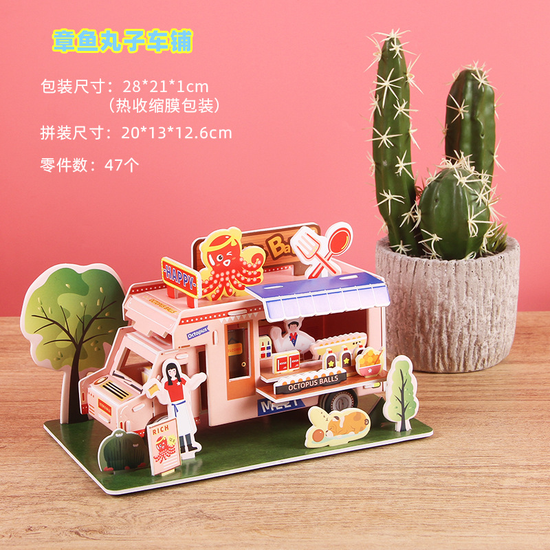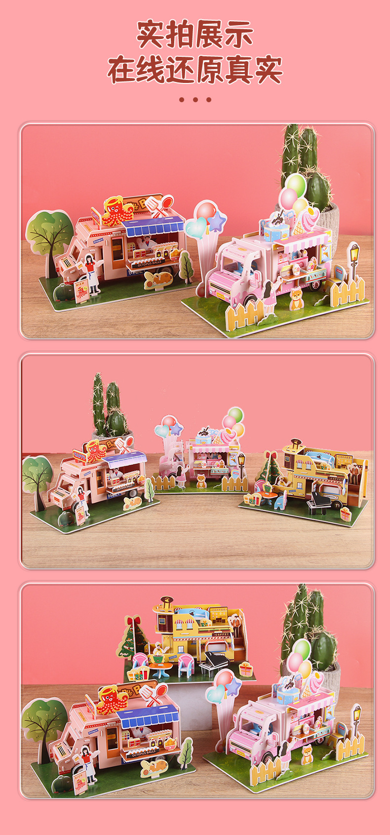 어린이 2025년 신제품 3D 입체 종이 퍼즐 수제 교육 DIY 장난감 교육용 장난감 푸드트럭 퍼즐 보드스토어 가기