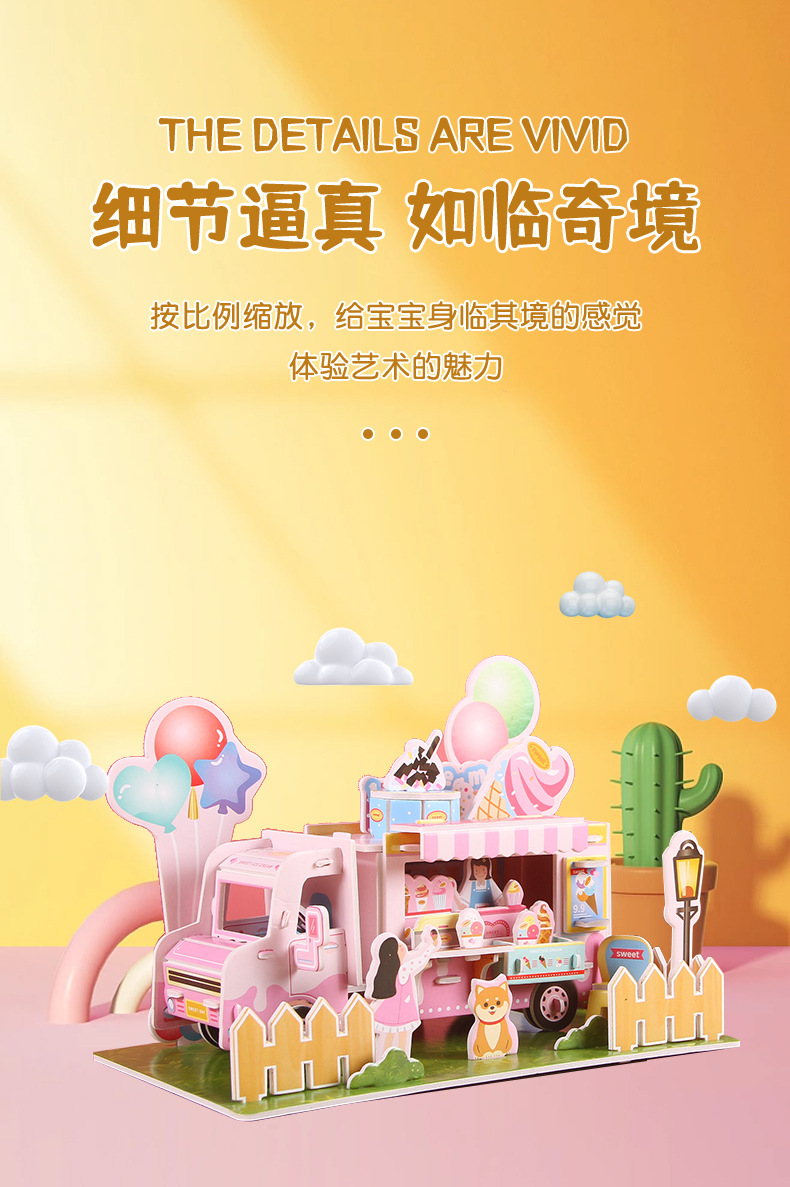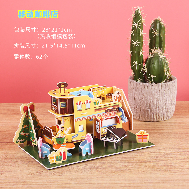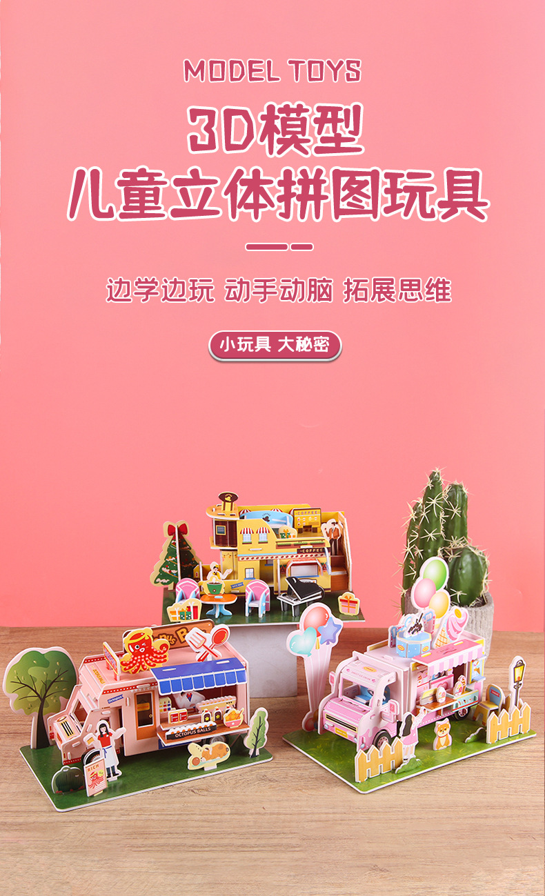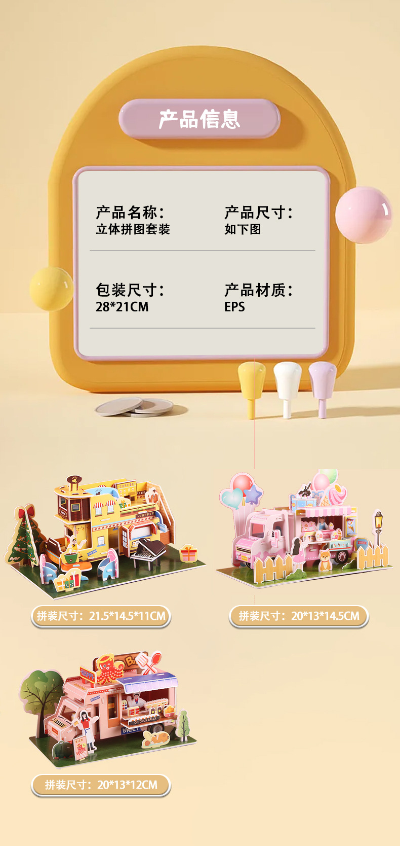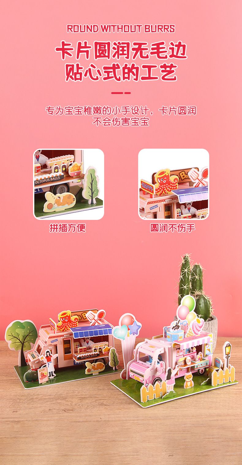어린이 2025년 신제품 3D 입체 종이 퍼즐 수제 교육 DIY 장난감 교육용 장난감 푸드트럭 퍼즐 보드스토어 가기