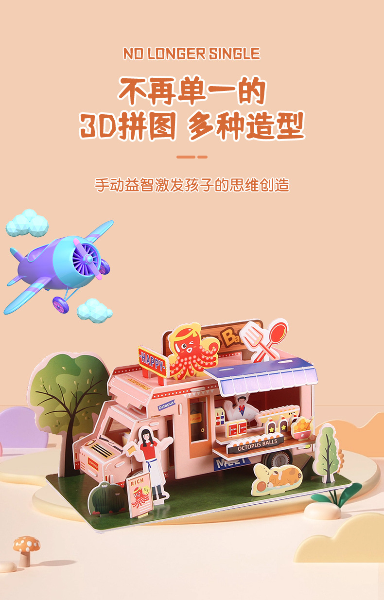 어린이 2025년 신제품 3D 입체 종이 퍼즐 수제 교육 DIY 장난감 교육용 장난감 푸드트럭 퍼즐 보드
