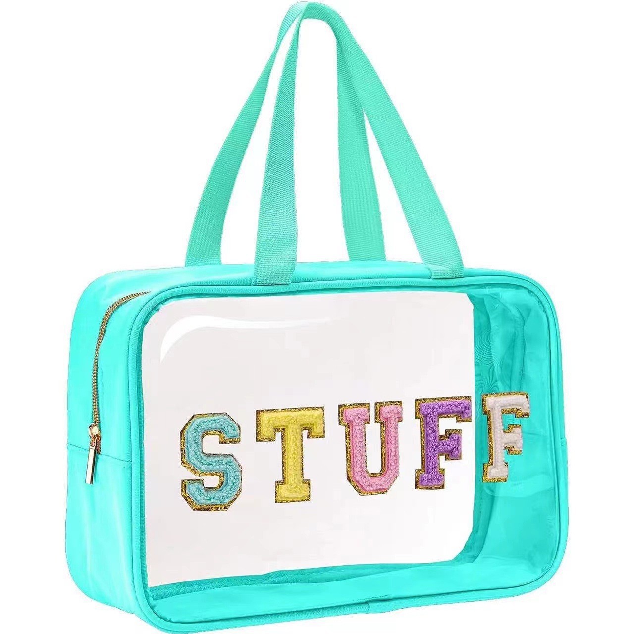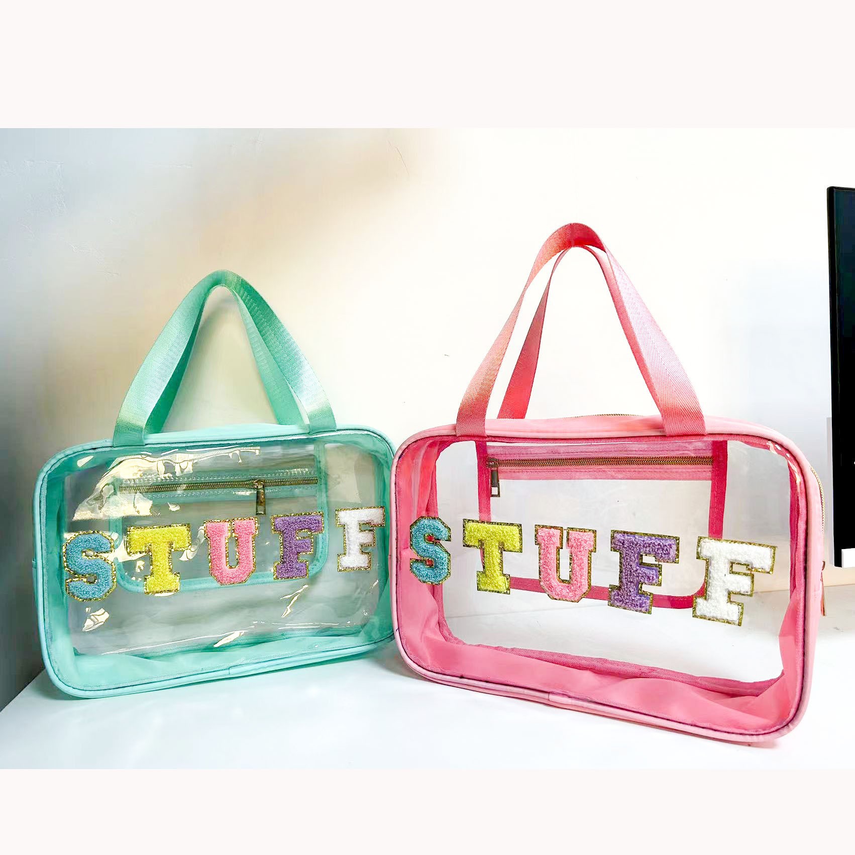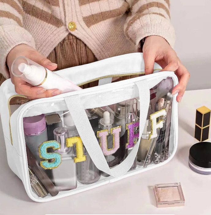대용량 투명 화장품 가방, 자수 글자, 휴대용, 다기능, 세면용품, 여행용, 방수