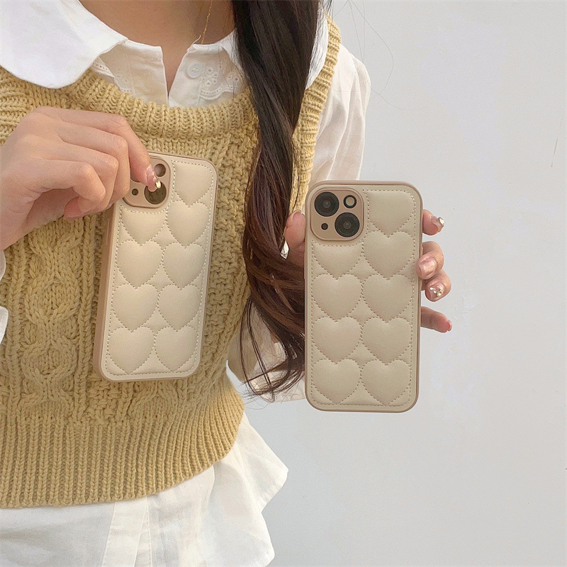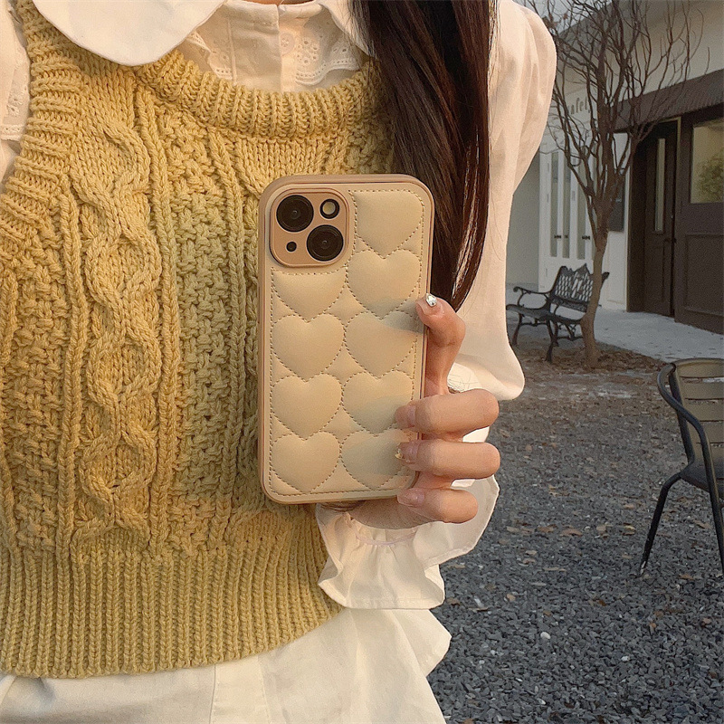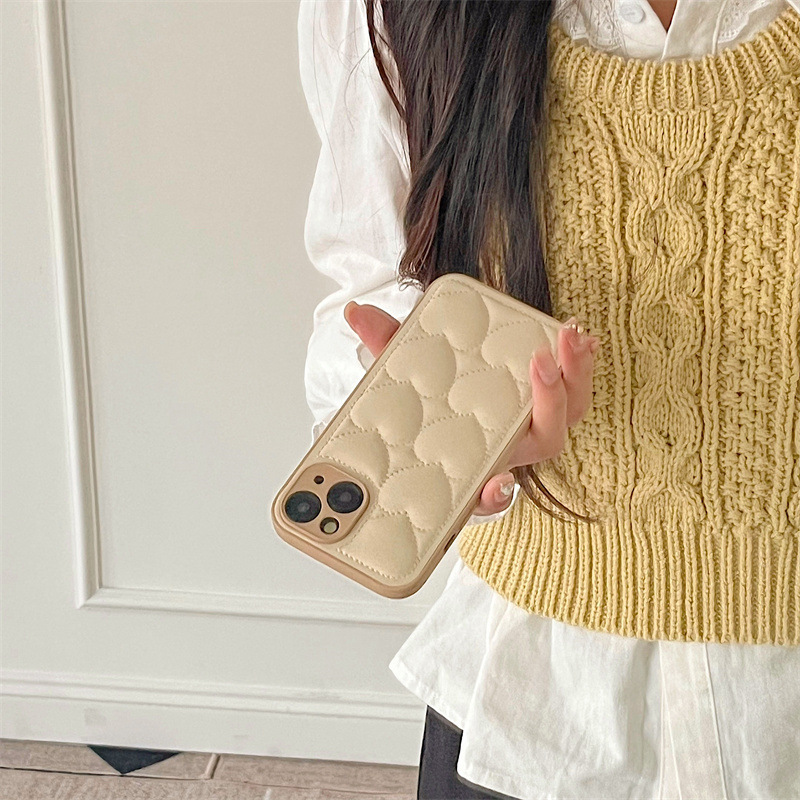 Apple 15promax 다운 재킷 휴대폰 케이스 iphone17 러브 브라운 엠보싱 14 16 일본 및 한국 보호 커버에 적합스토어 가기