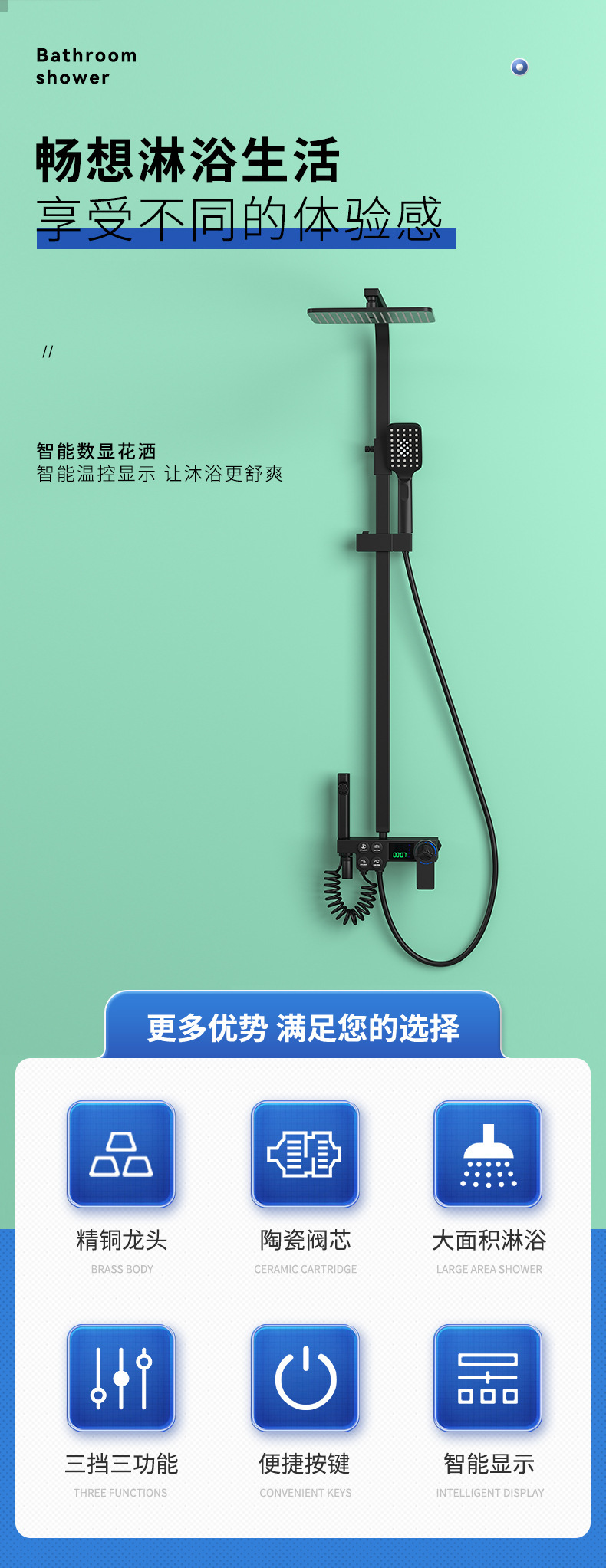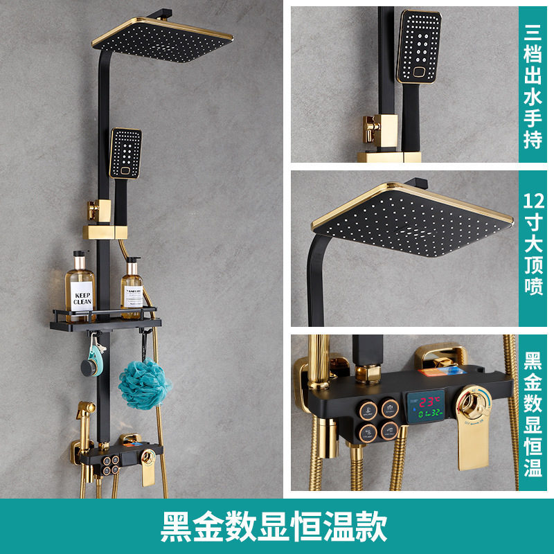 • 판타지 블랙 골드 버튼 디지털 디스플레이 범용 샤워 세트