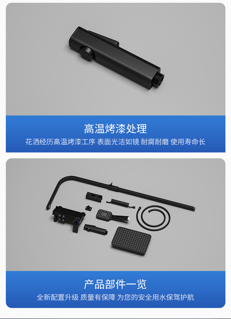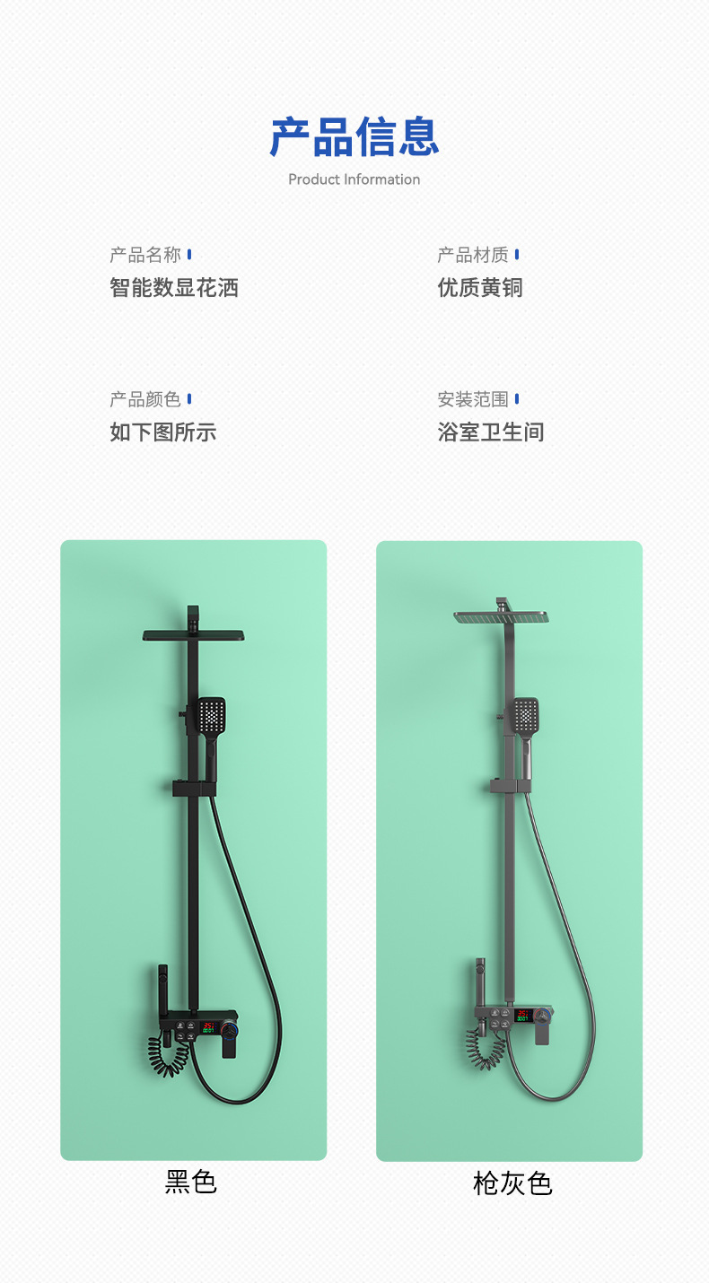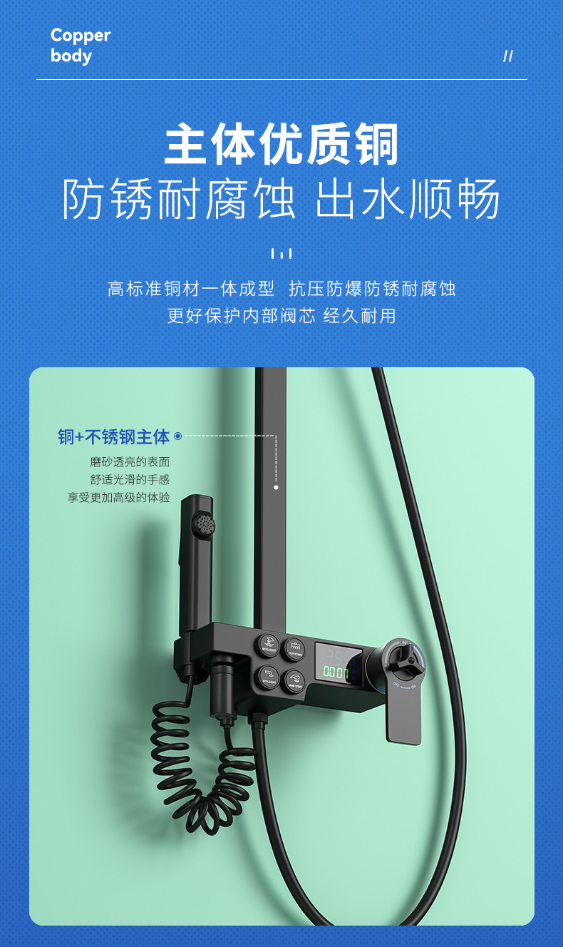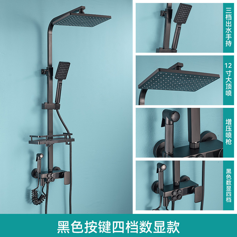 Kaituo 욕실 전체 구리 비 블랙 샤워 호텔 전용 샤워 풀 세트 더블 행 디지털 디스플레이 일정한 온도 샤워